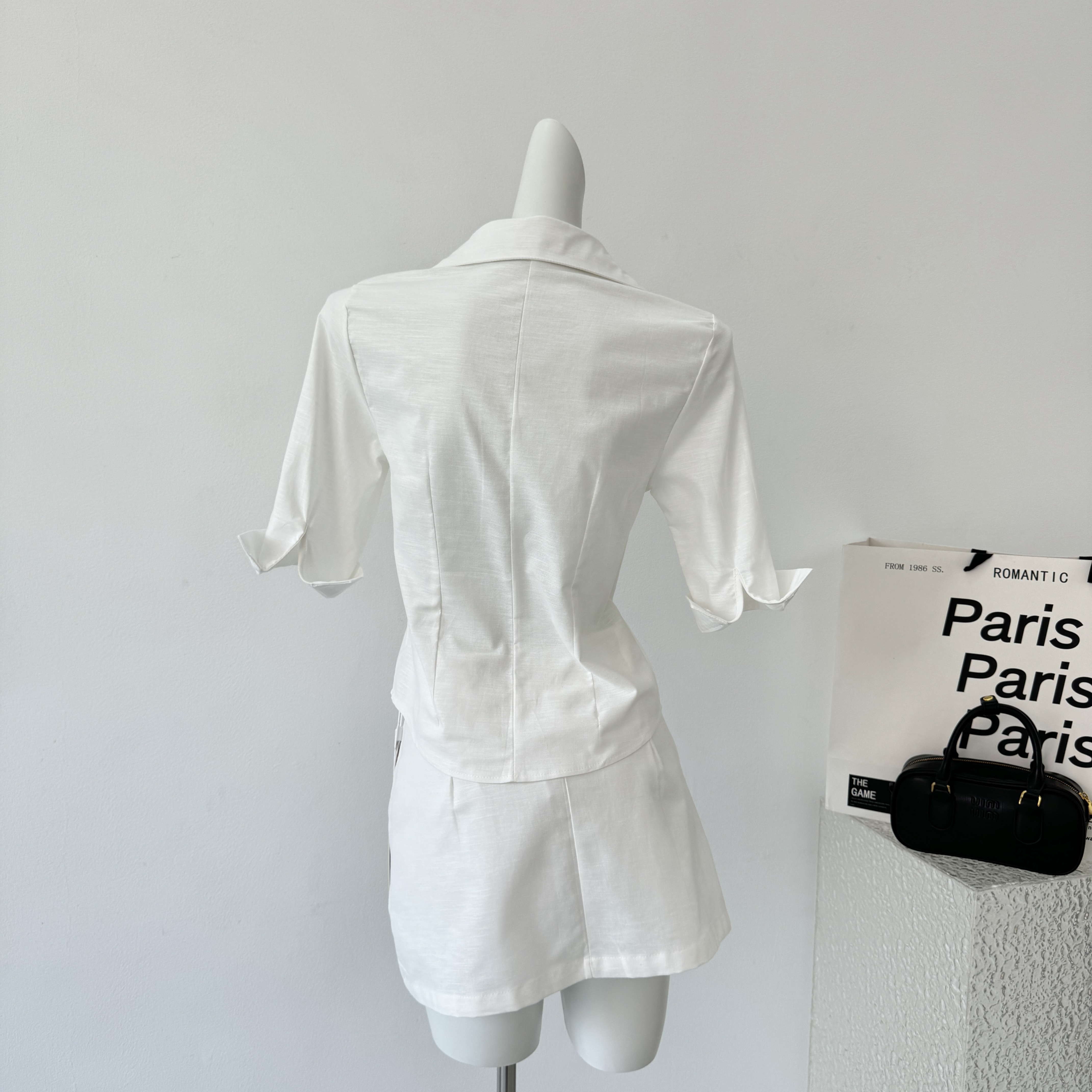 1개 다곤 1z1zgun chill 센스 종이 사람들 행침 목 슬립 짧은 오픈 가디건 몸매 가꾸기 슬림해 보이는 반신 치마 세트