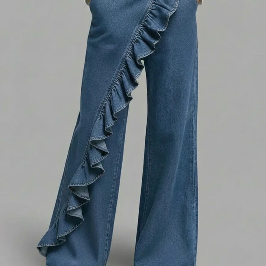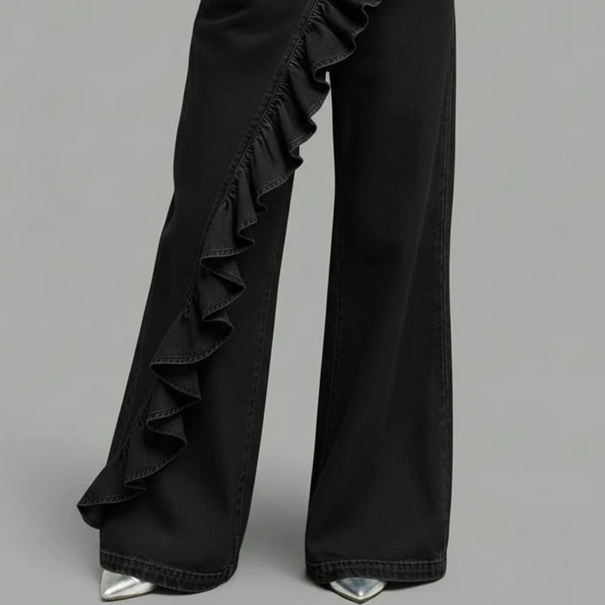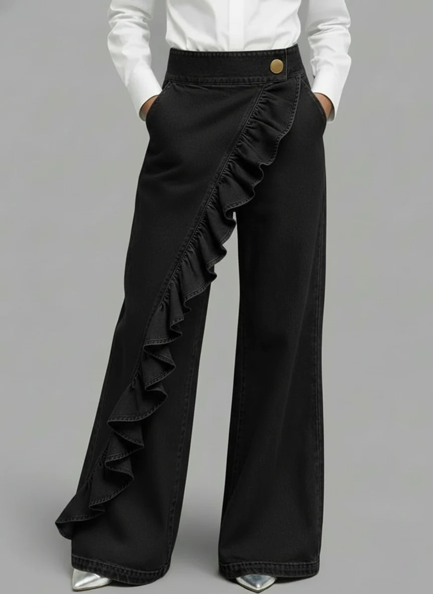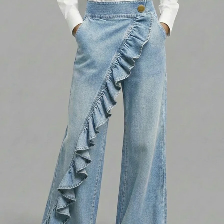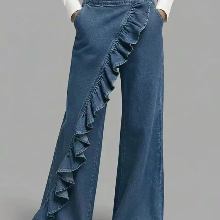 유럽과 미국 국경 간 아마존 독립적 인 역 루즈핏 단색 캐주얼 데님 단추 장식 워싱 청바지 치마바지 여성