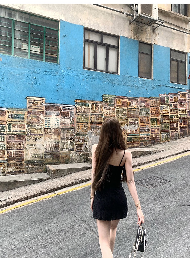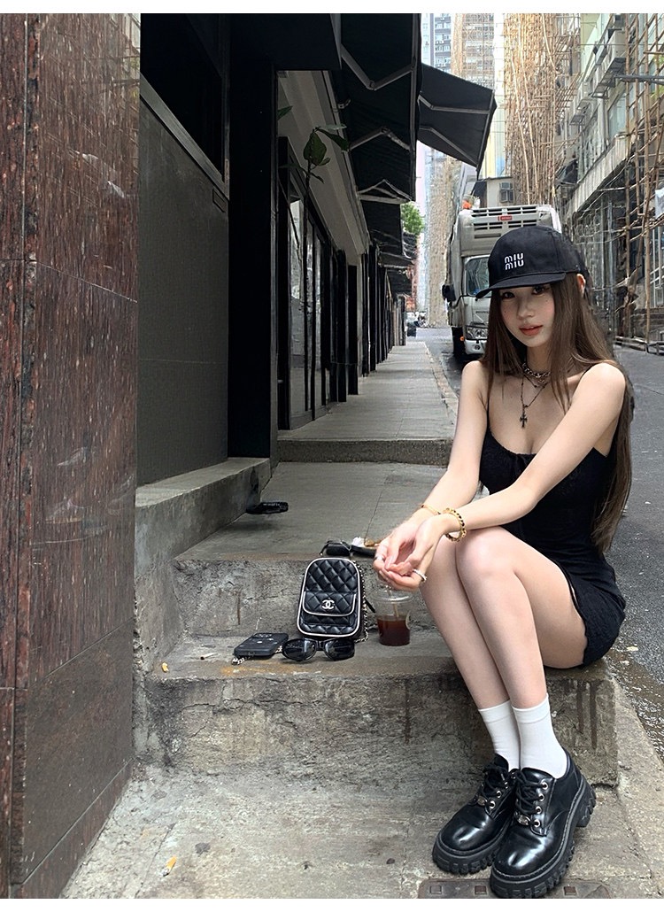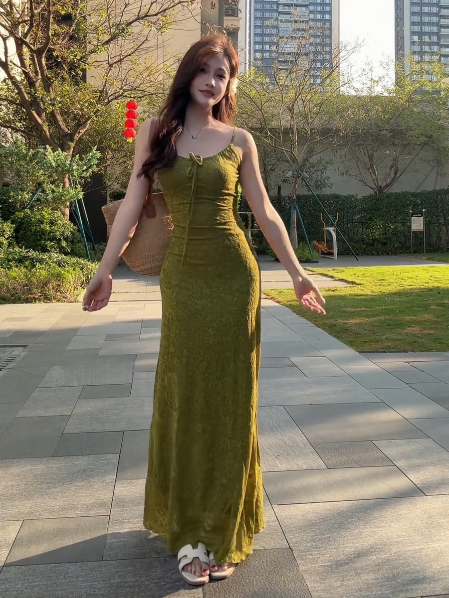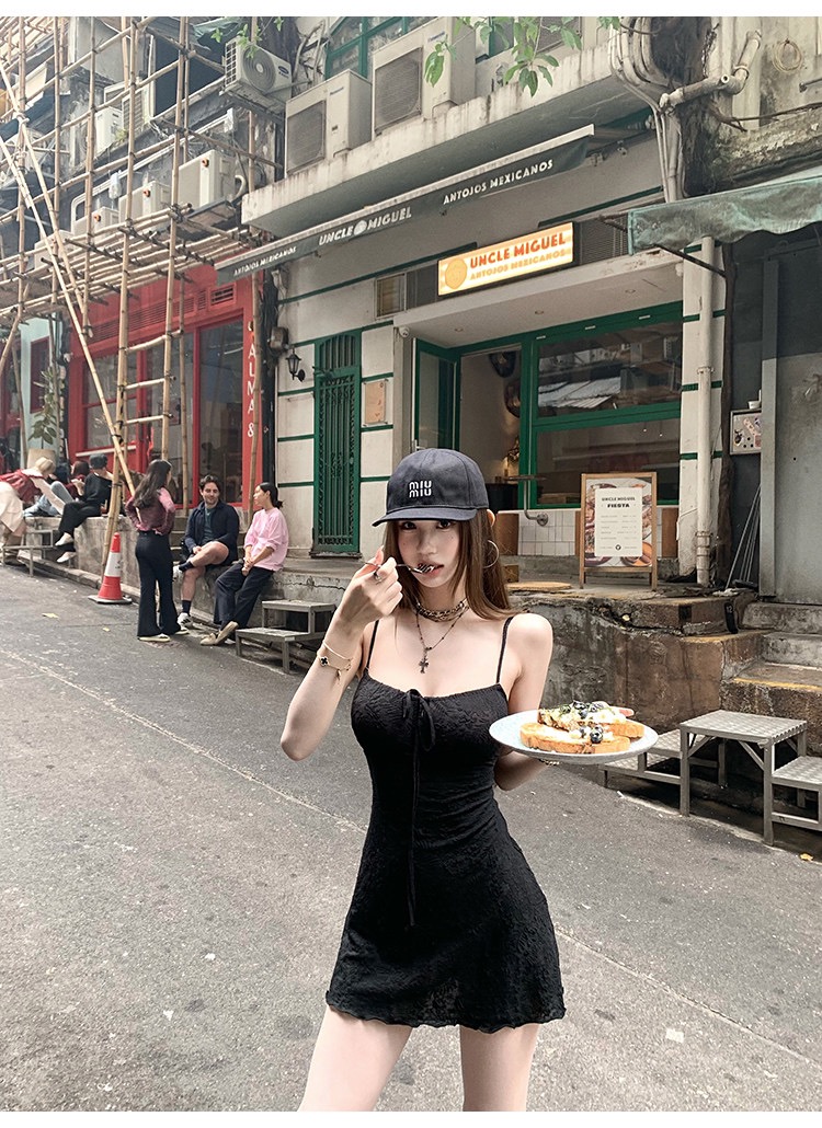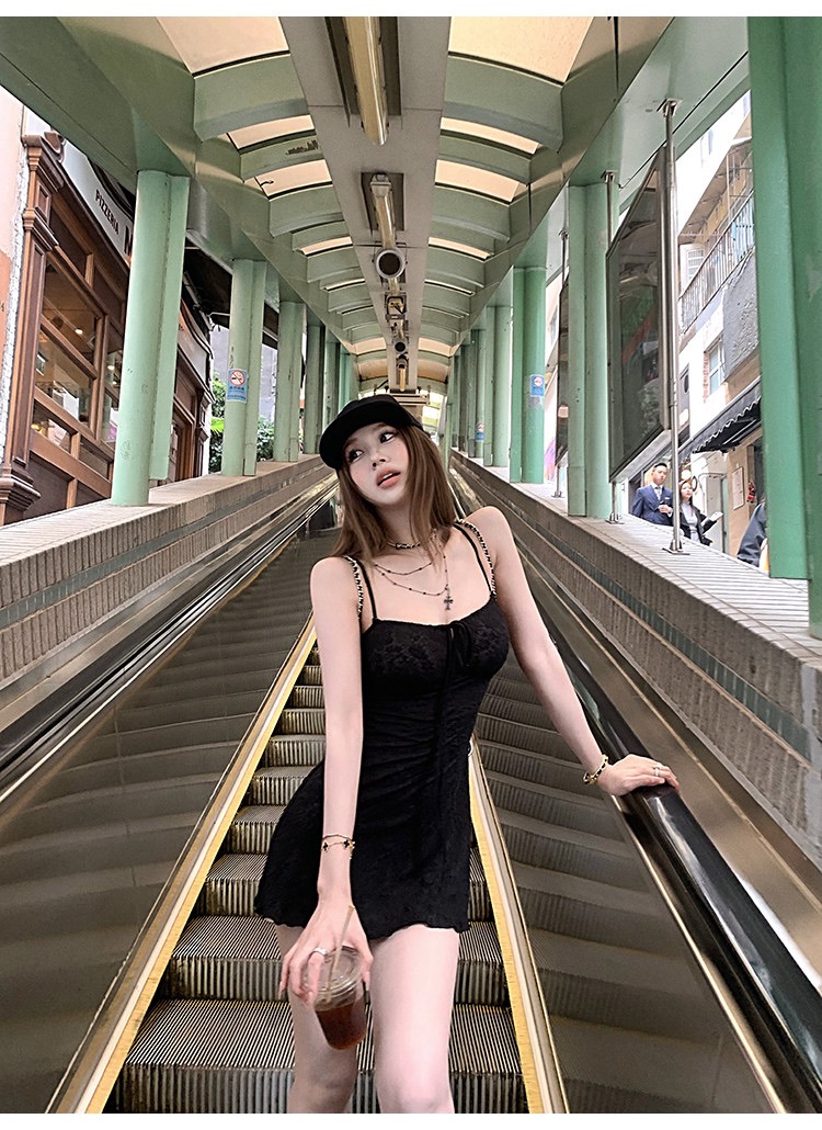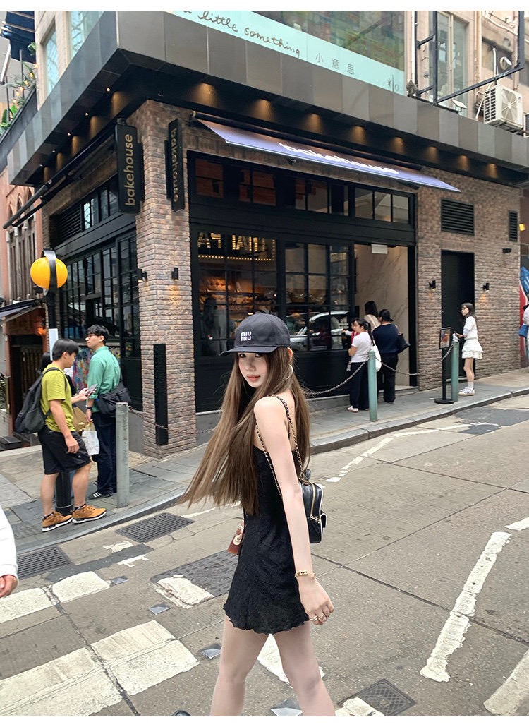 그는 벤 바람 프랑스식 검정색 V넥 점프 슈트 치마 여성 의류 여름 2025 새로운 폭발 고급 센스 품격 길다
