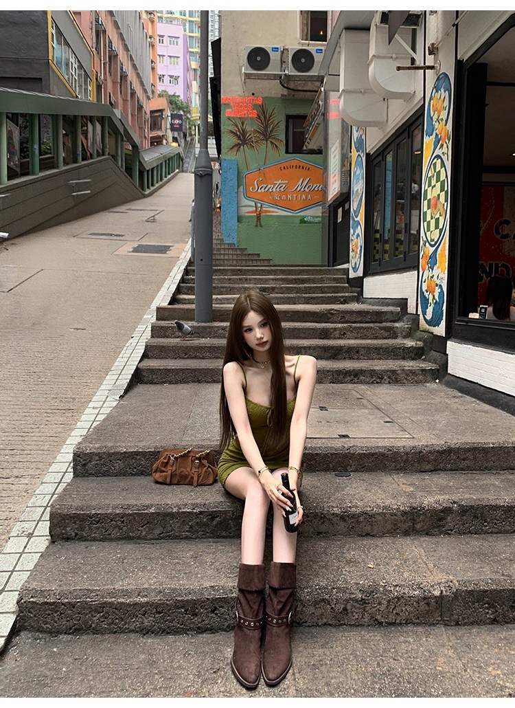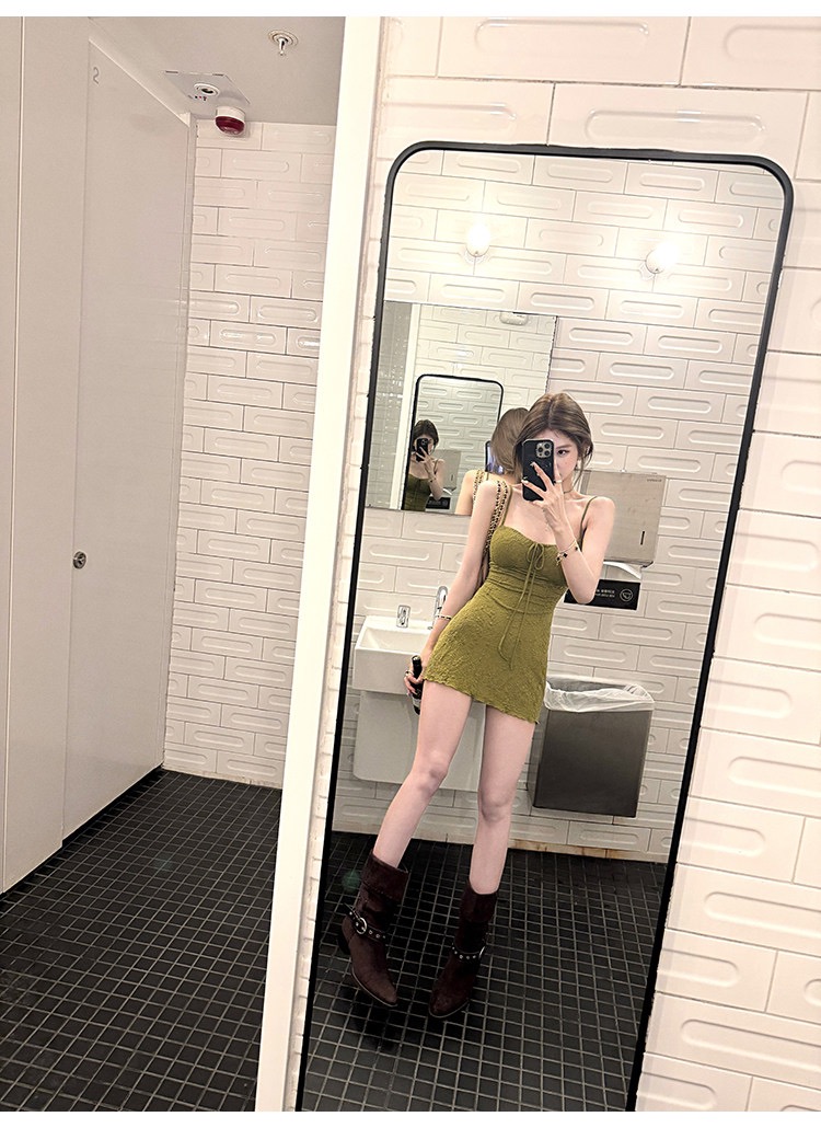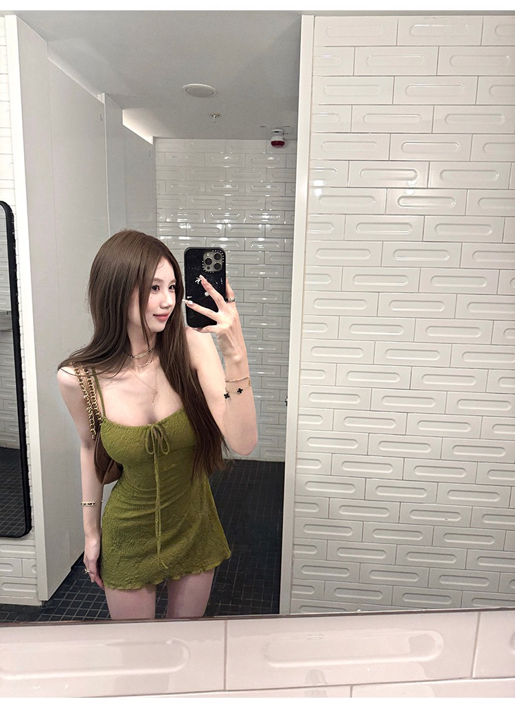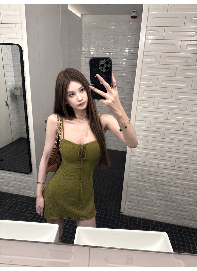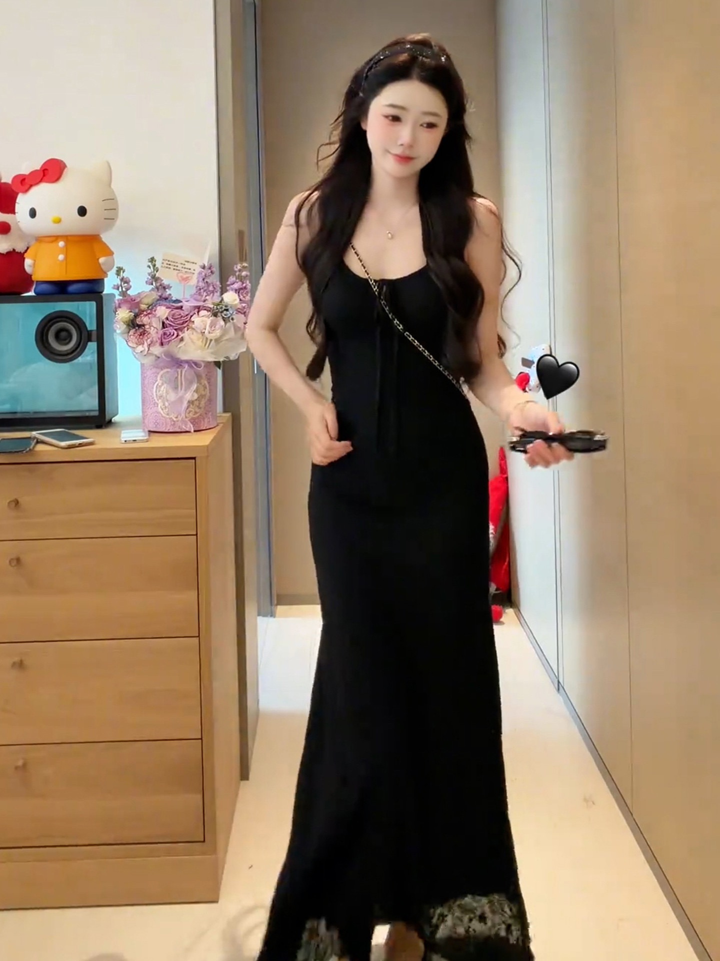 그는 벤 바람 프랑스식 검정색 V넥 점프 슈트 치마 여성 의류 여름 2025 새로운 폭발 고급 센스 품격 길다