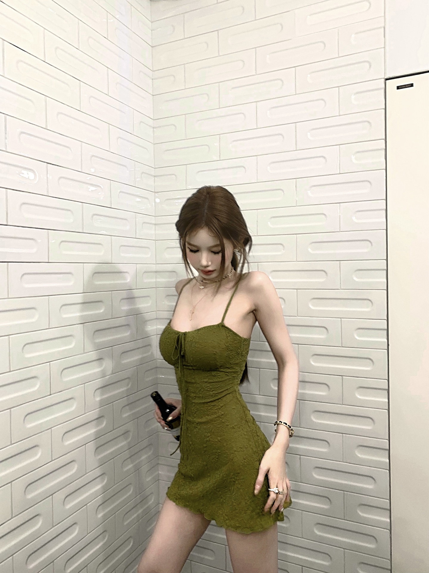 한 부서 부드러운 몸매 가꾸기 페이크 레이어드 도트 무늬 프린트 동점 벨트 리본 맨위 2026 봄 새로운