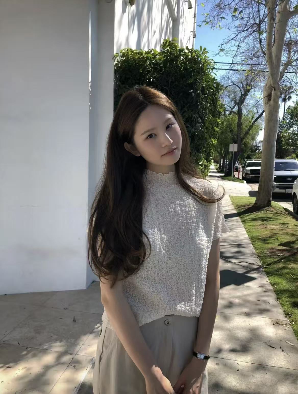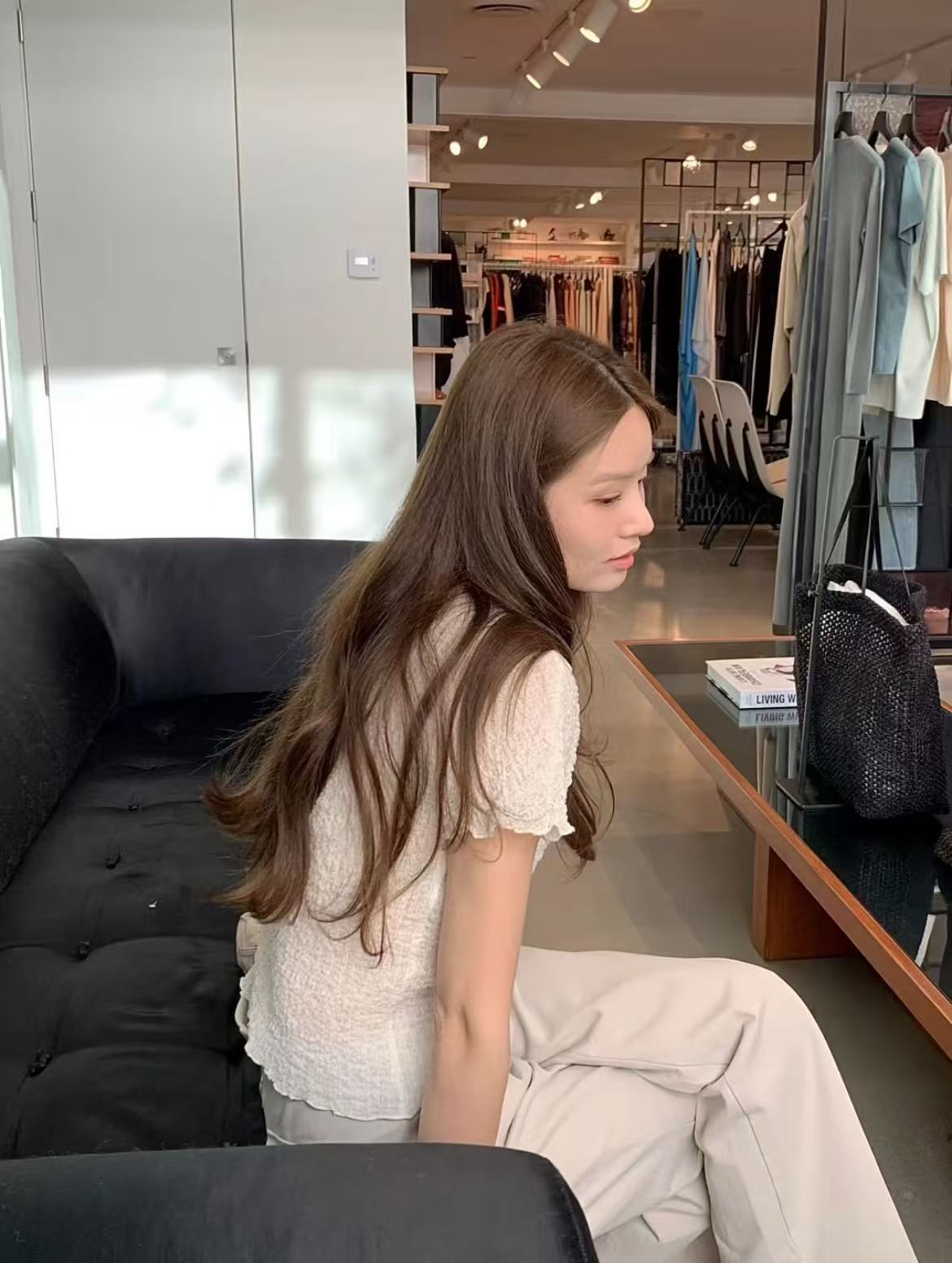 ins 보 주님 섹션 프랑스식 품격 우아함 레트로 미니멀리즘 V넥 일상 다용도 작은 셔츠 구슬 빛 센스 맨위