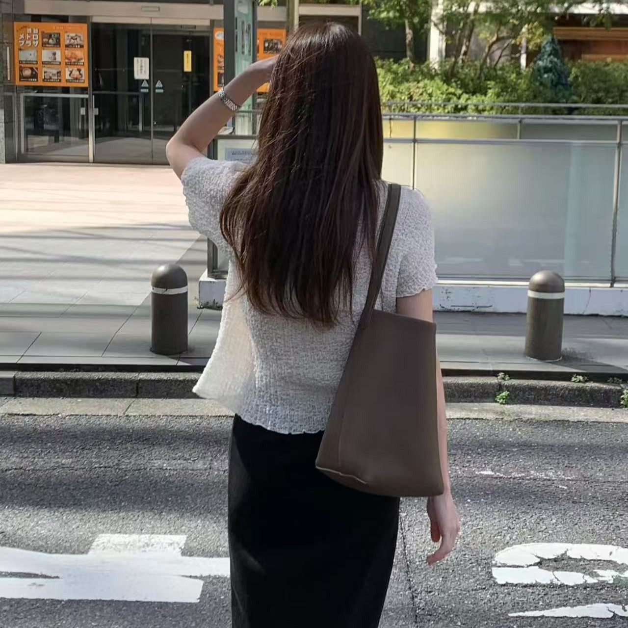 실사 반팔 티셔츠 스택 착용 자수 블라우스 반신 스커트