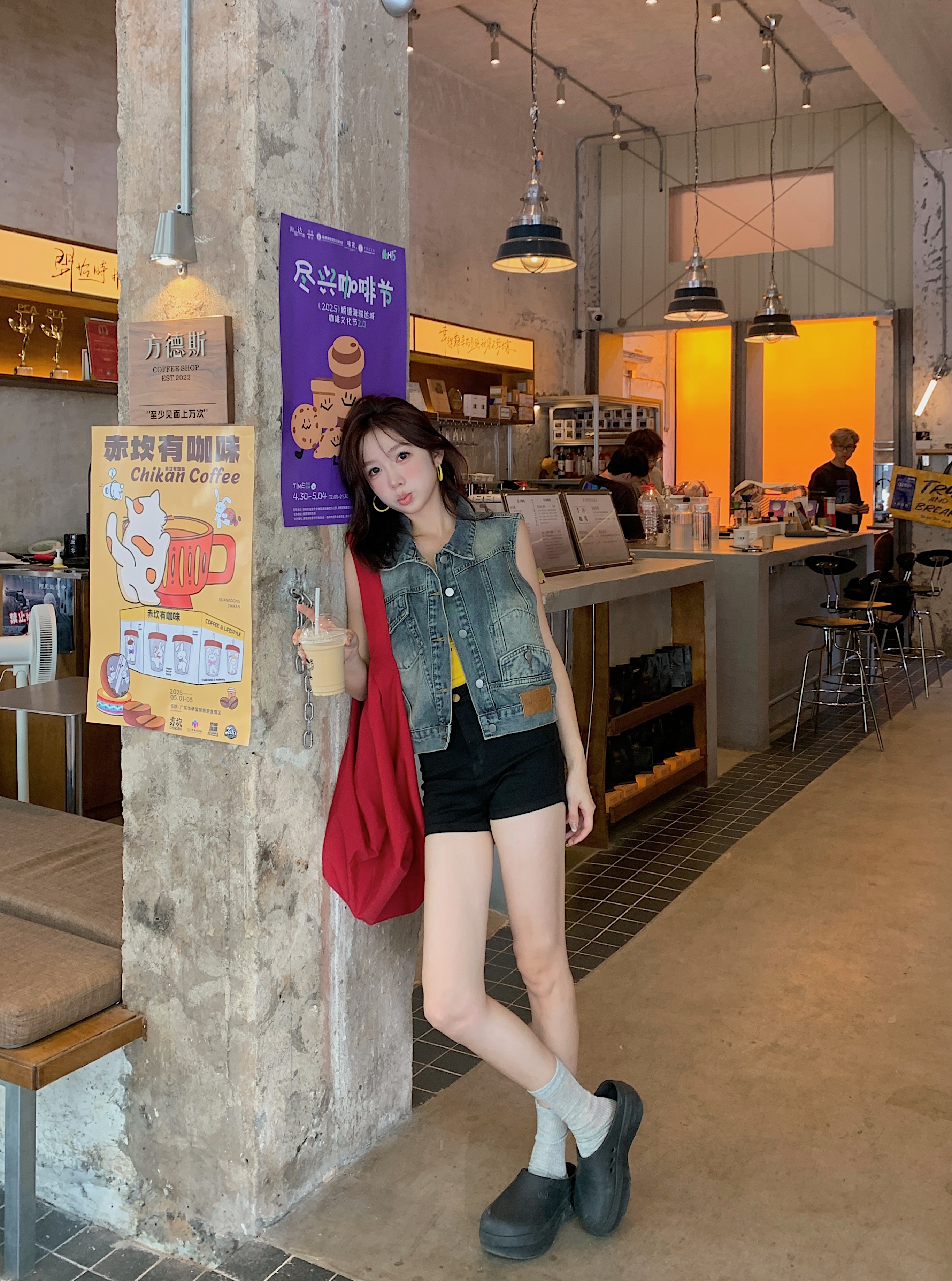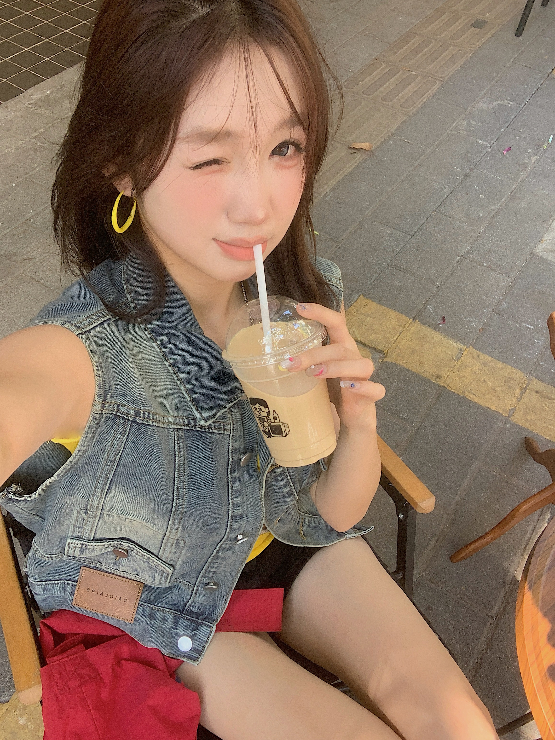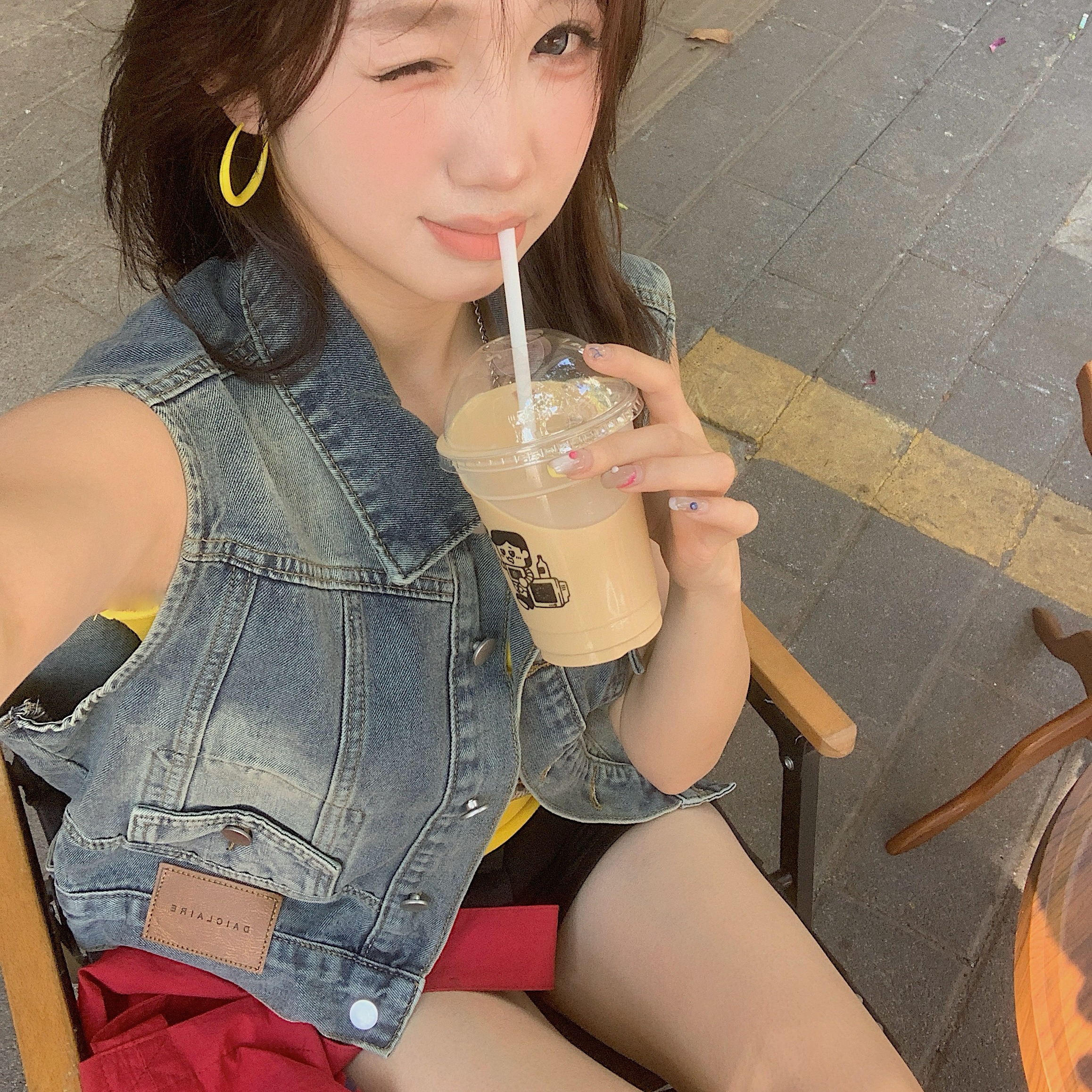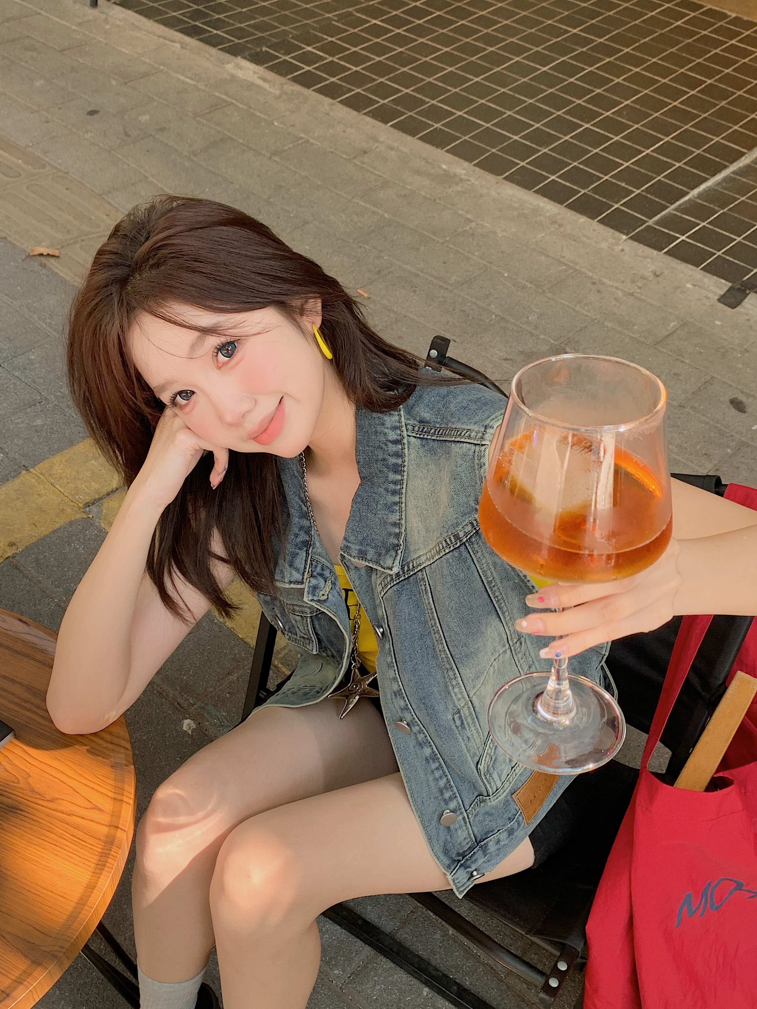 실사 레트로 한국 스타일 루즈핏 어깨 반팔 데님 반소매 재킷
