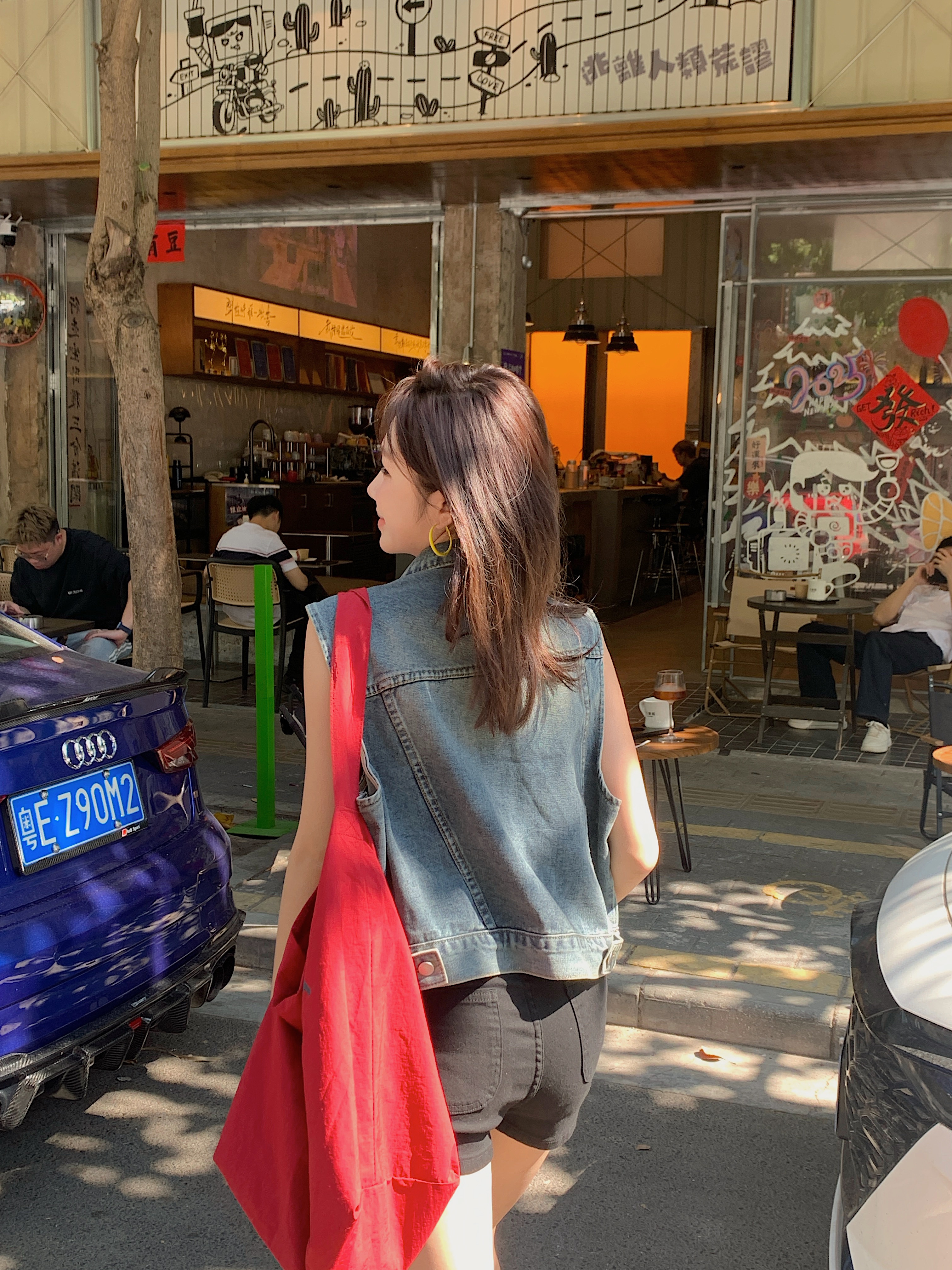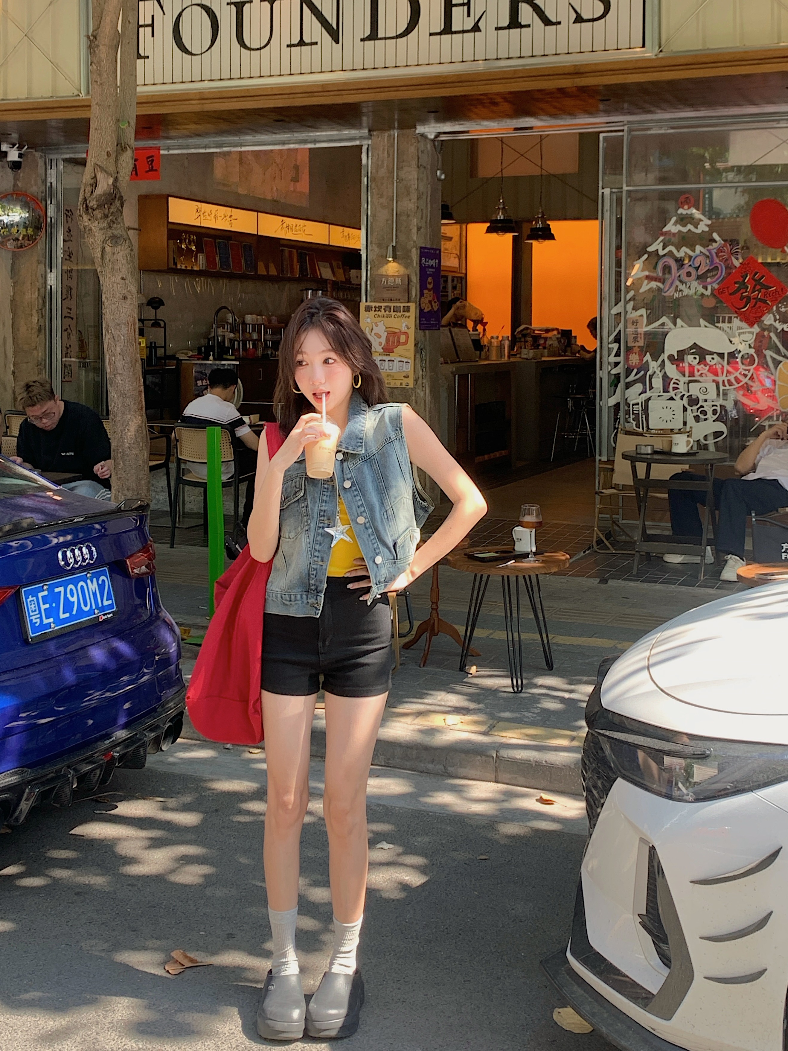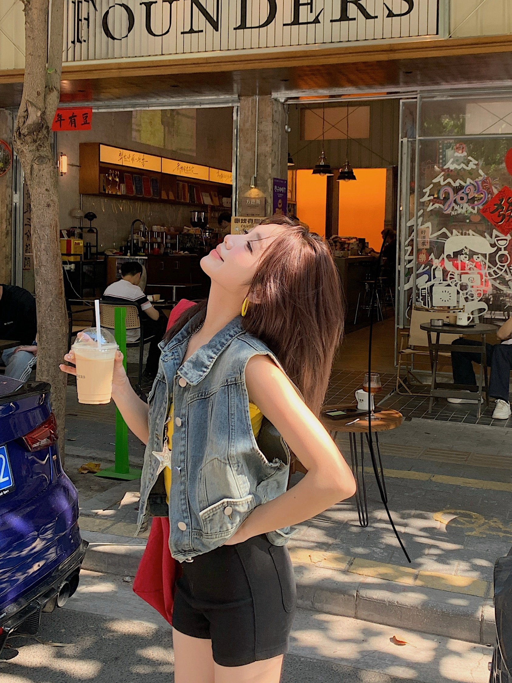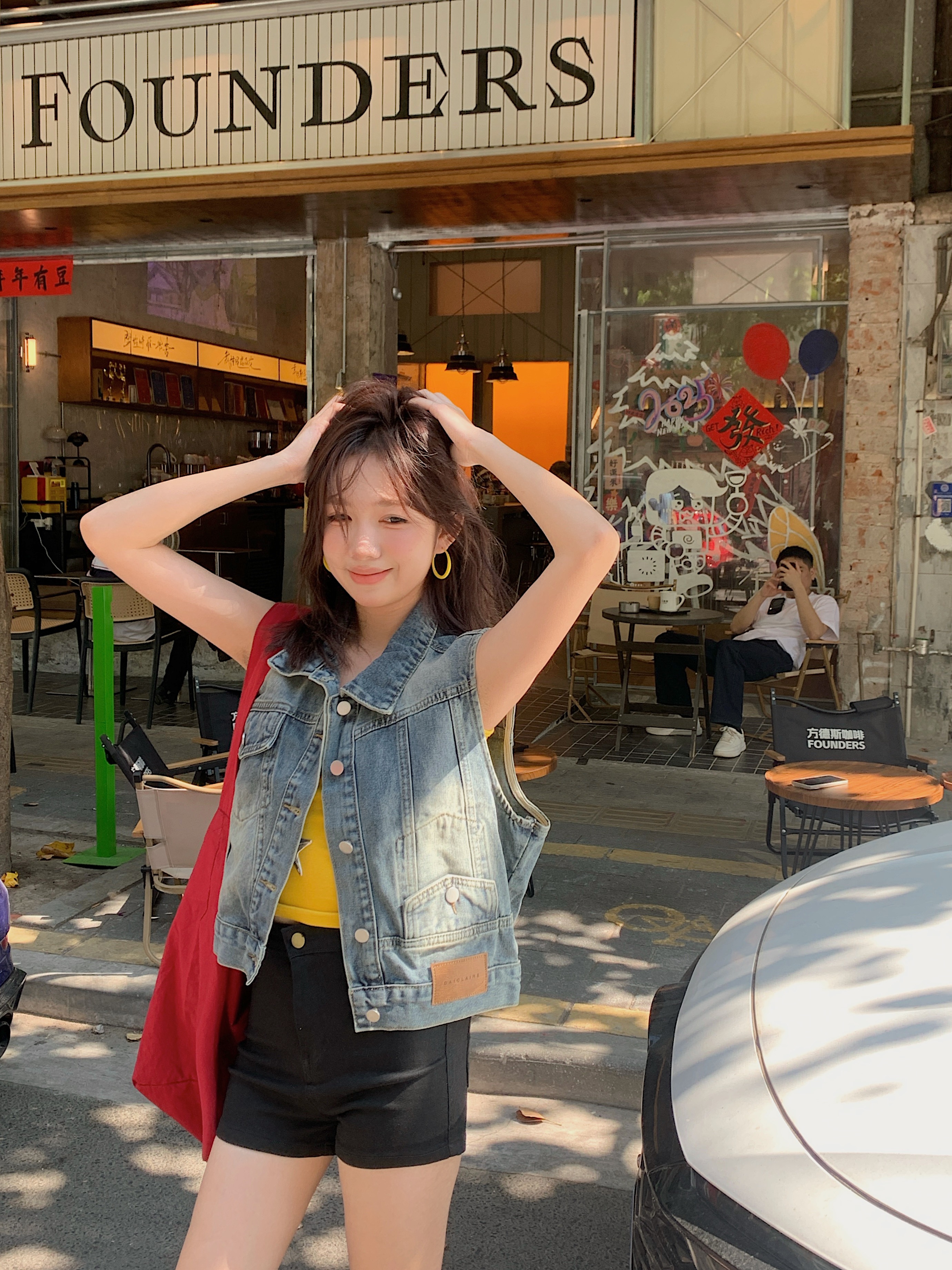 실사 레트로 한국 스타일 루즈핏 어깨 반팔 데님 반소매 재킷