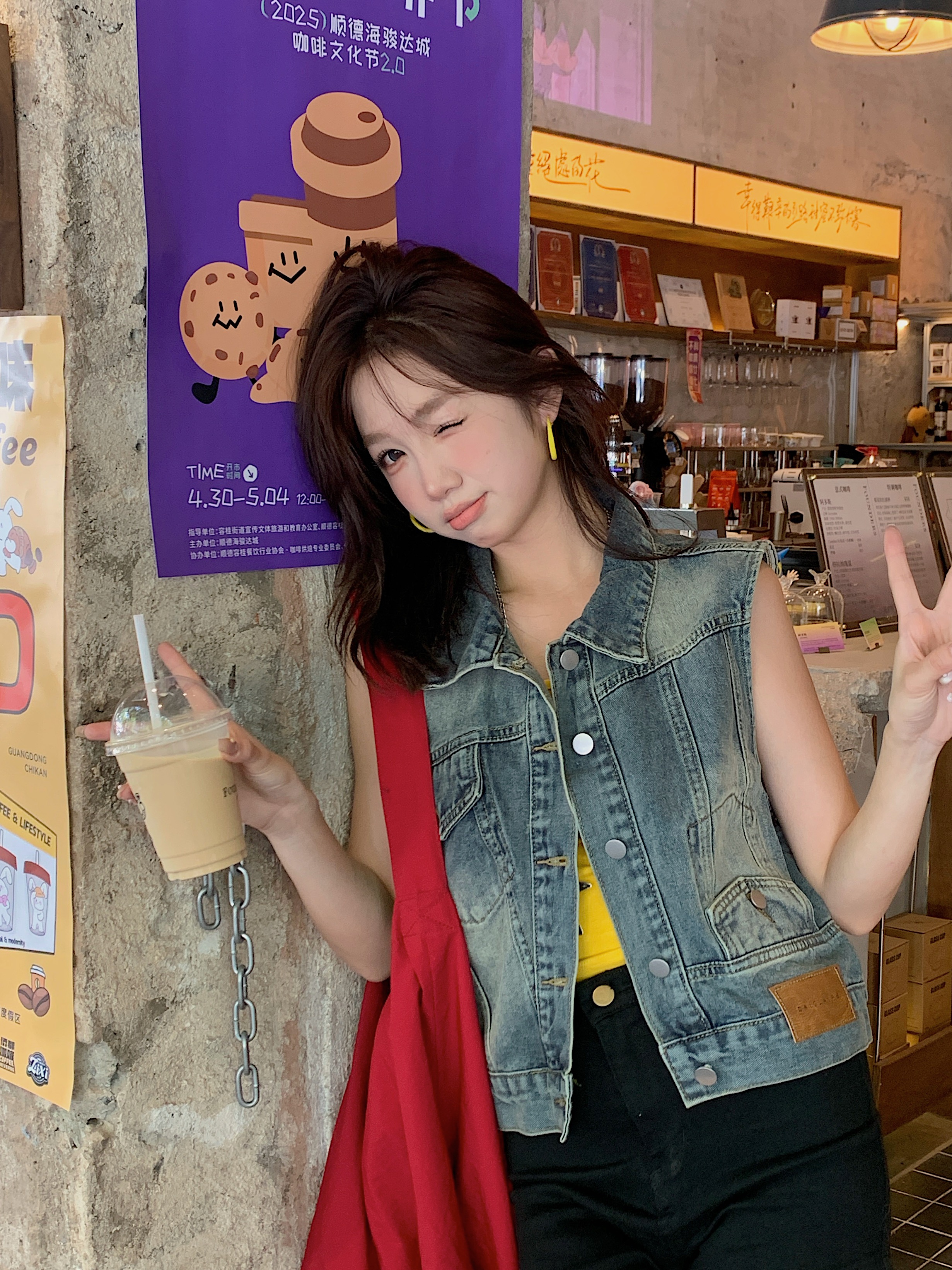 실사 핫걸 苾 입력 튀김 소금 워싱 블루 쇼트 스타일 데님 재킷