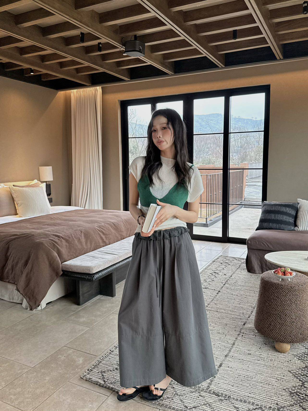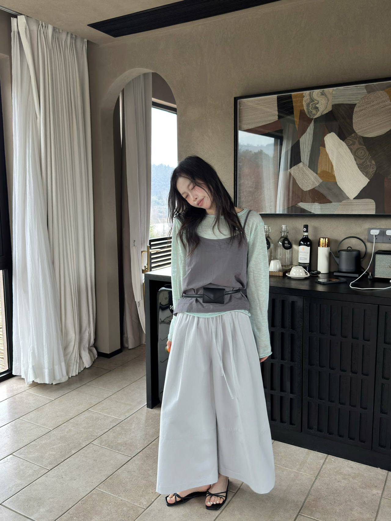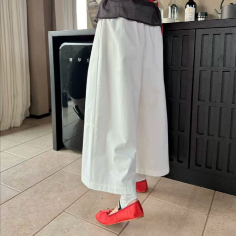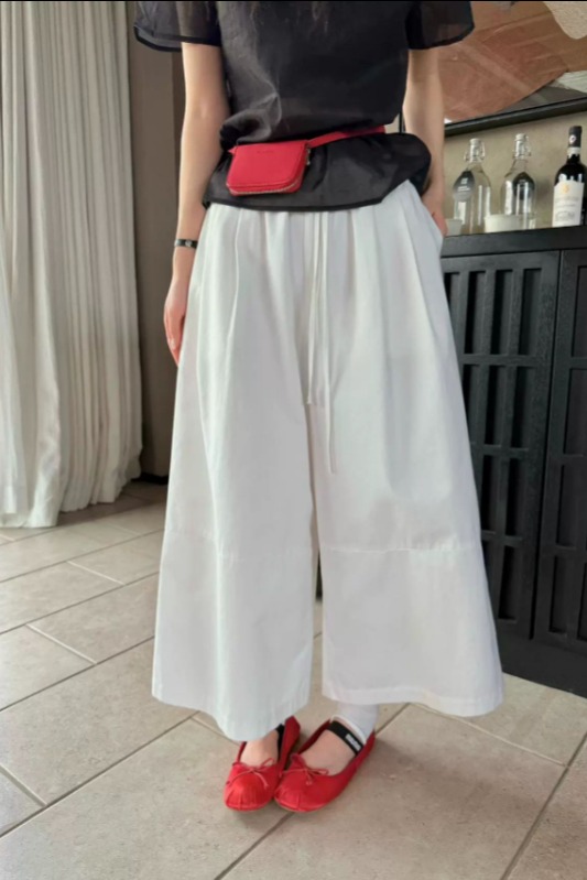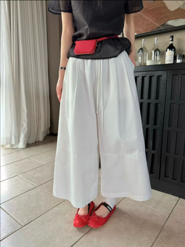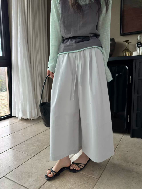 허리밴드 펌프 로프 스트랩 저항 주름 와이드 레깅스 바지 봄 여름 하이웨이스트 스트레이트 루즈핏 슬림해 보이는 프릴 방귀 커튼 바지