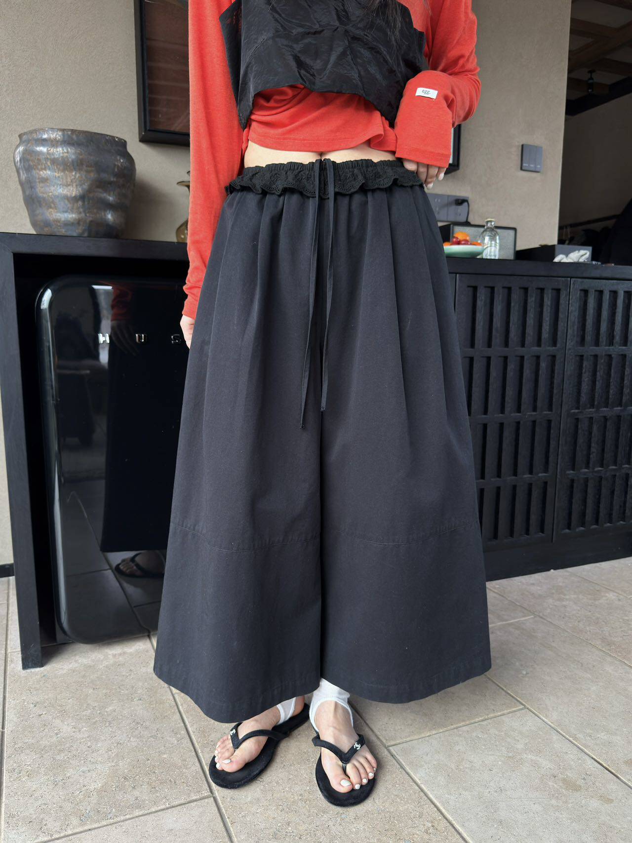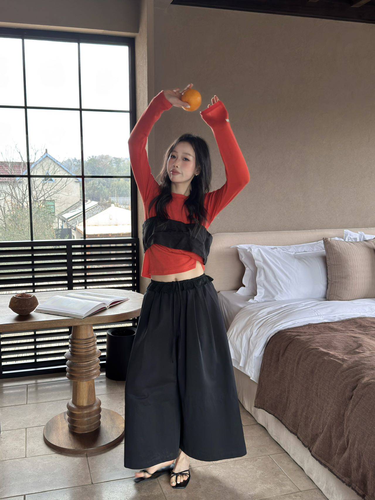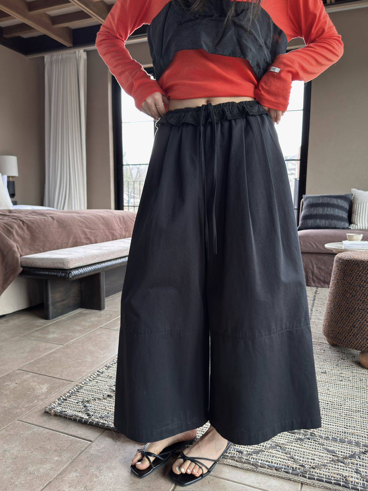 허리밴드 펌프 로프 스트랩 저항 주름 와이드 레깅스 바지 봄 여름 하이웨이스트 스트레이트 루즈핏 슬림해 보이는 프릴 방귀 커튼 바지