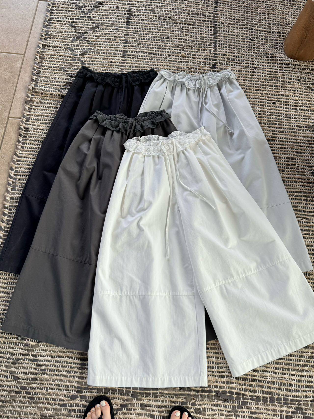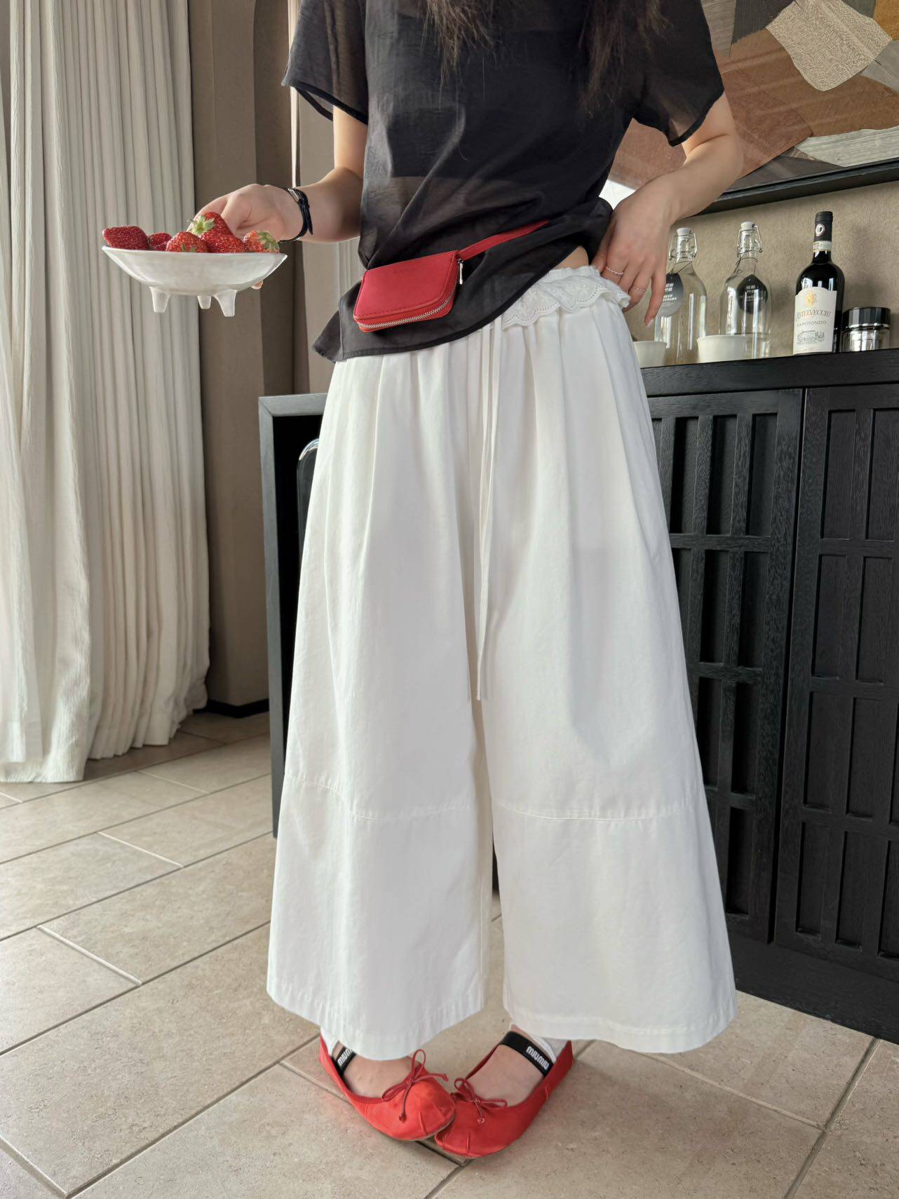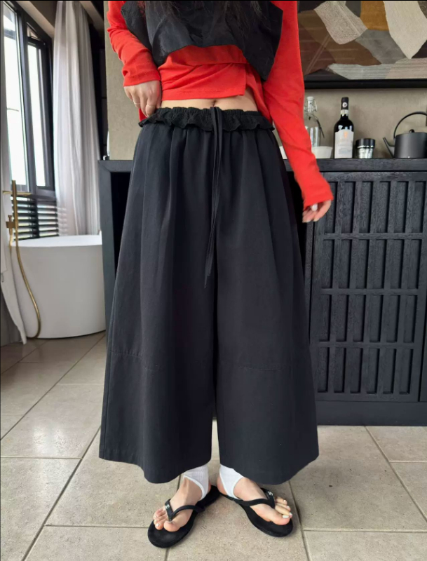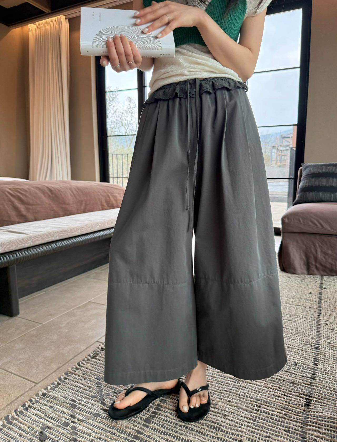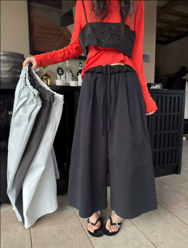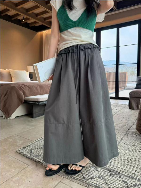 레이스 허리밴드 넓은 다리 9부 바지 여성 2026 봄 여름 새로운 빅 사이즈 루즈핏 슬림해 보이는 미니멀리즘 캐주얼 스트레이트 팬츠