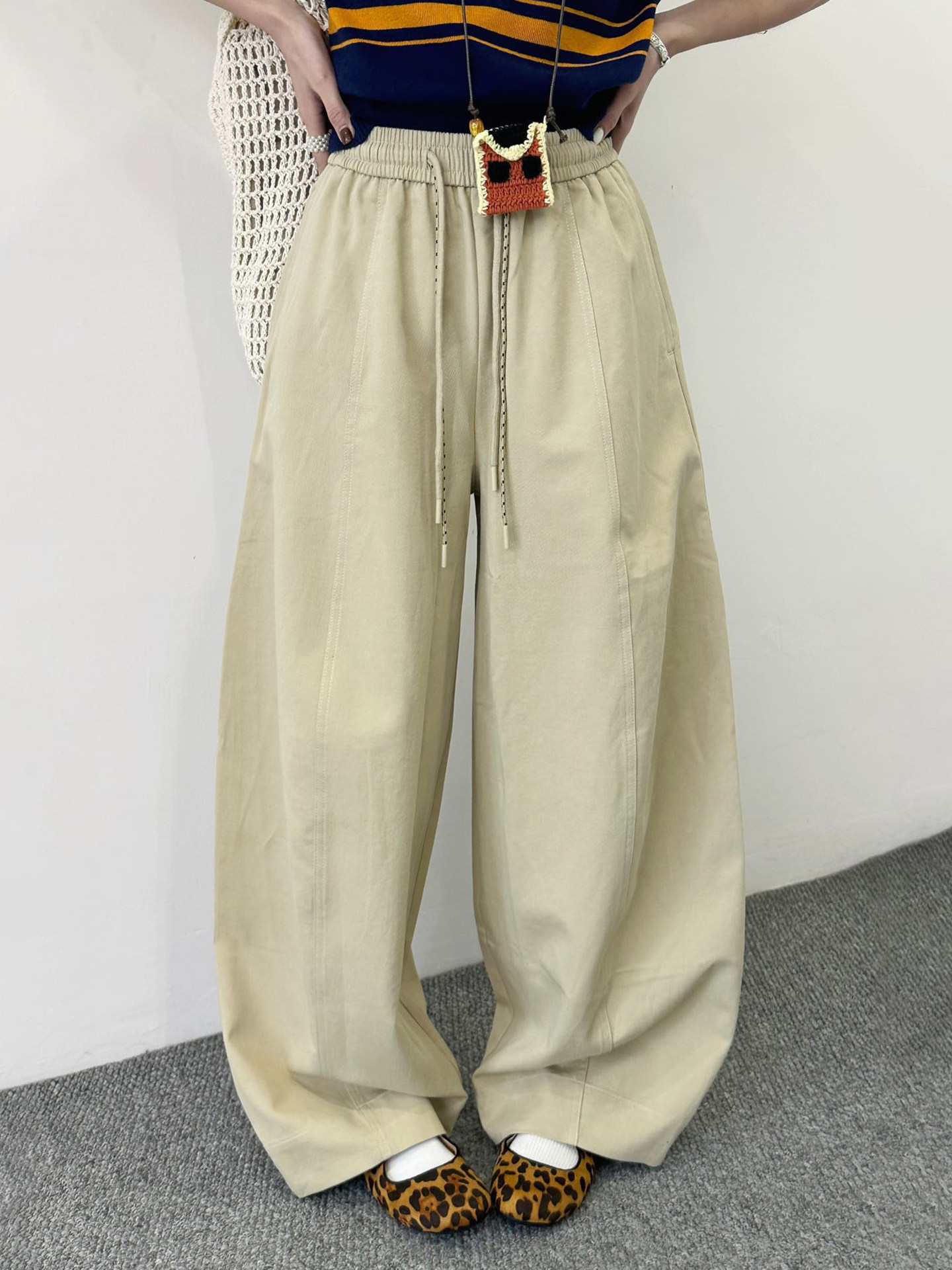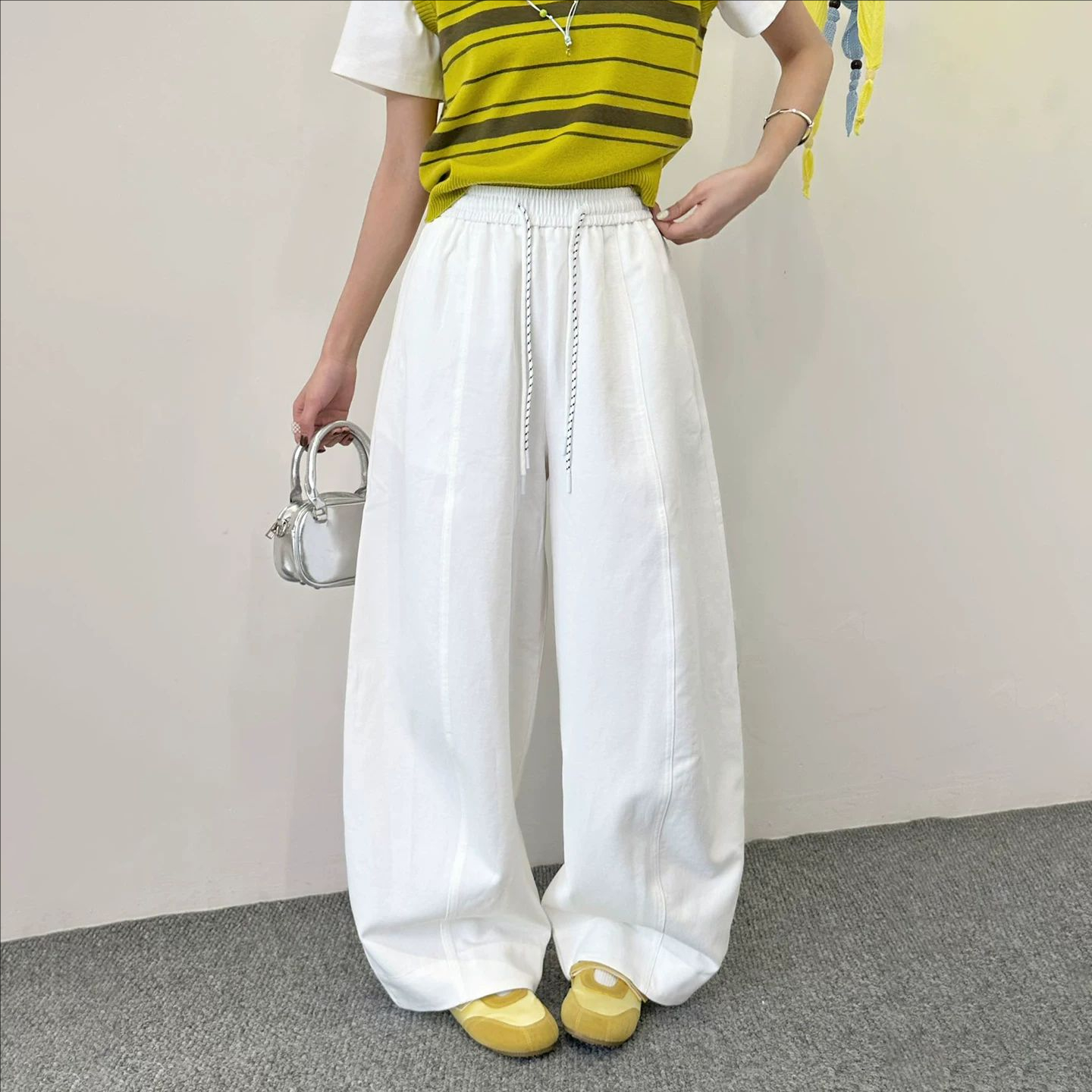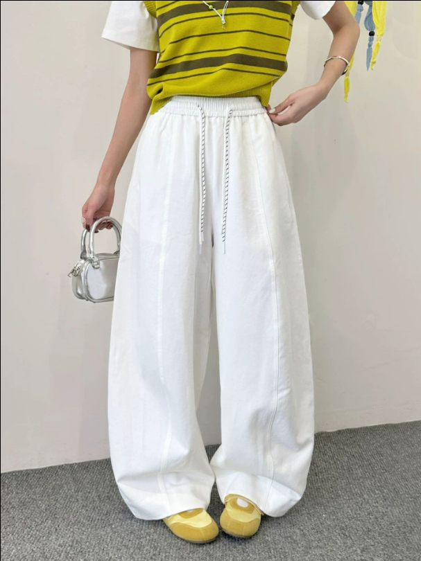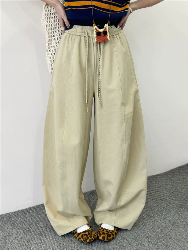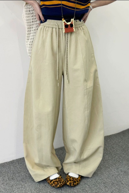 허리밴드 펌프 로프 스트랩 저항 주름 와이드 레깅스 바지 봄 여름 하이웨이스트 스트레이트 루즈핏 슬림해 보이는 프릴 방귀 커튼 바지