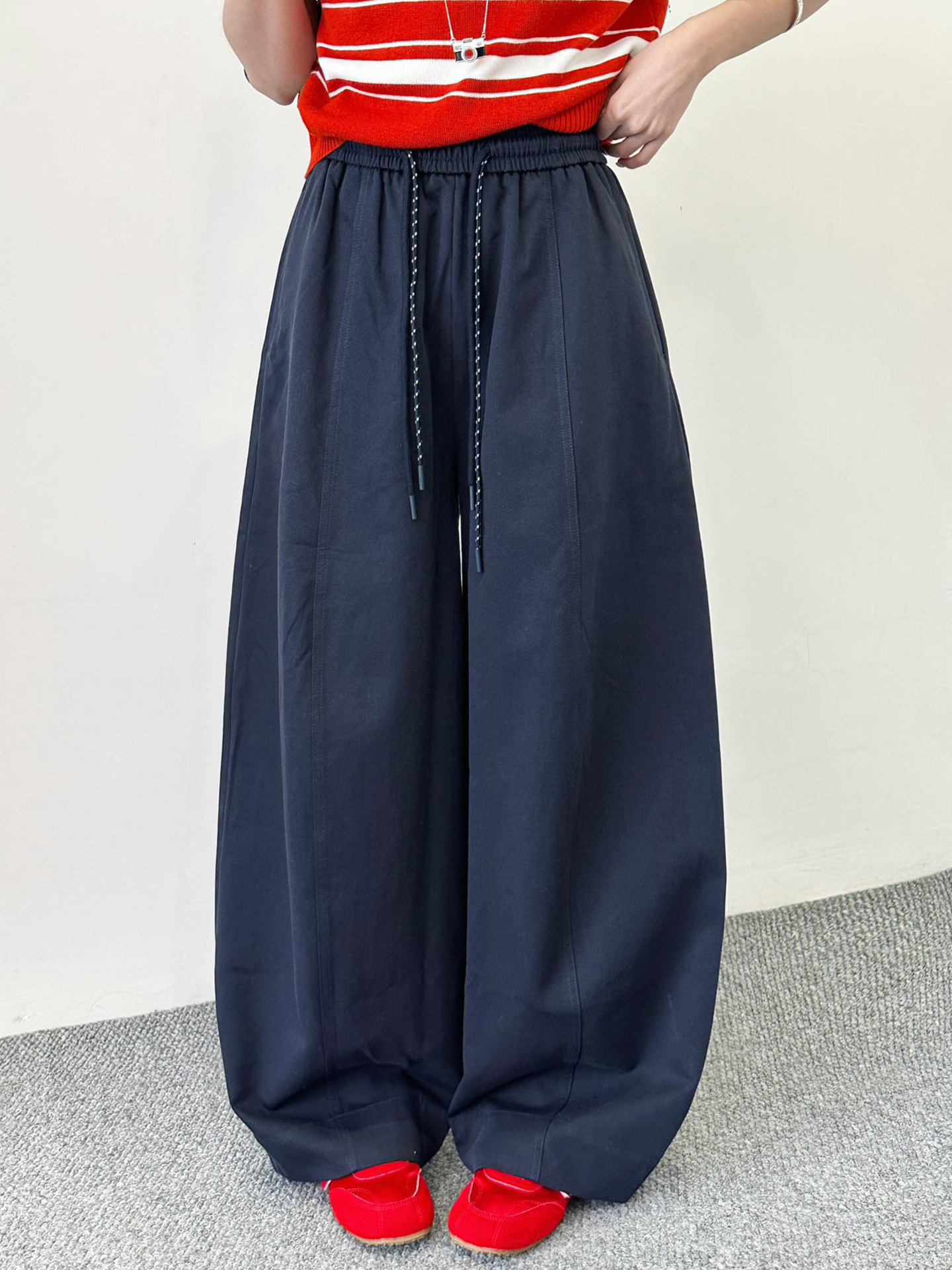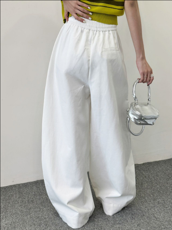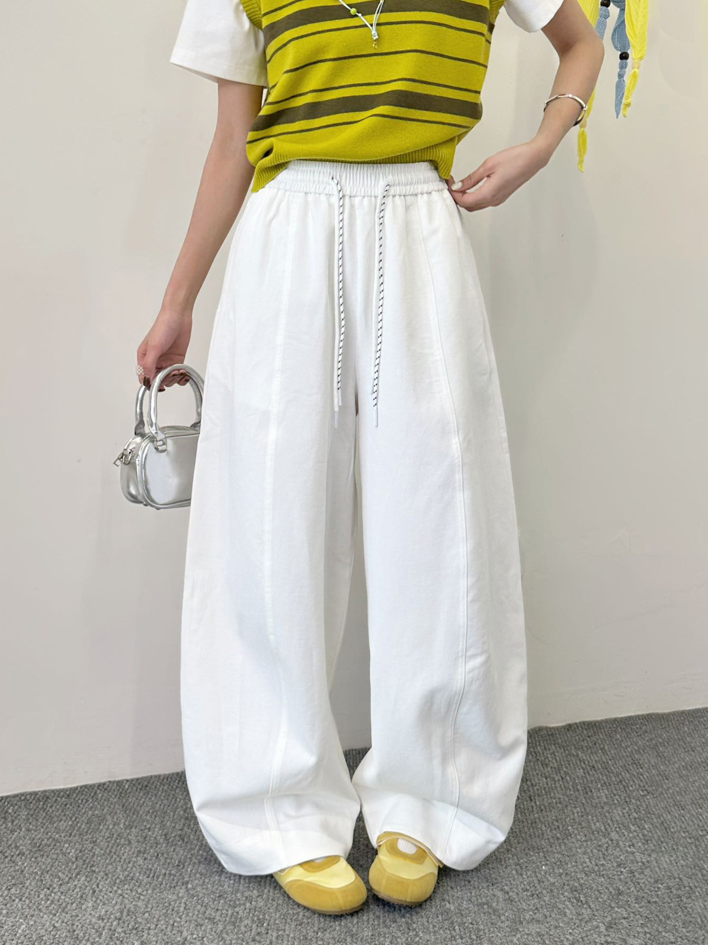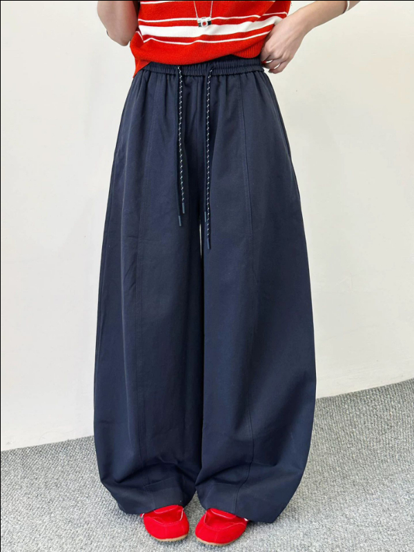 허리밴드 펌프 로프 스트랩 저항 주름 와이드 레깅스 바지 봄 여름 하이웨이스트 스트레이트 루즈핏 슬림해 보이는 프릴 방귀 커튼 바지