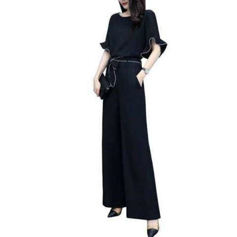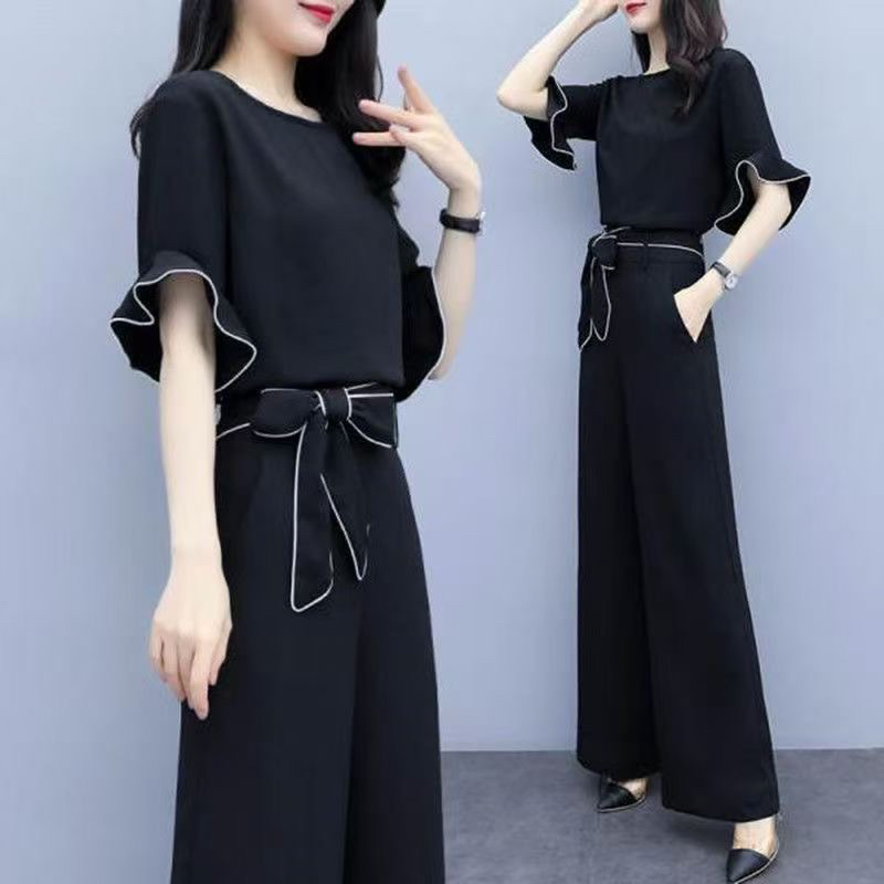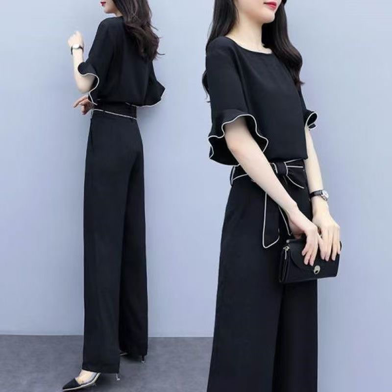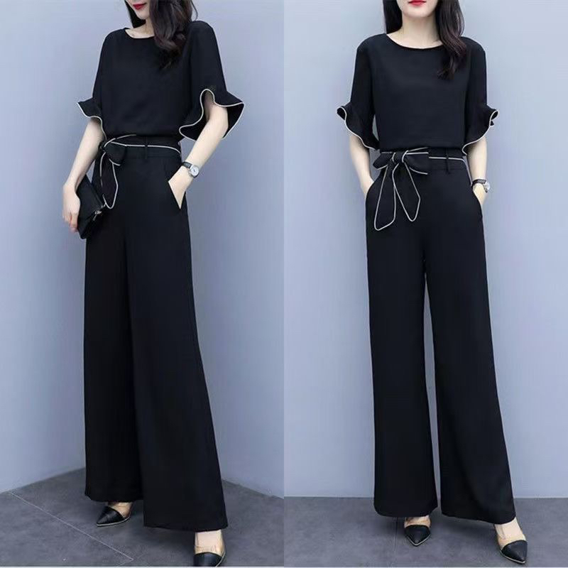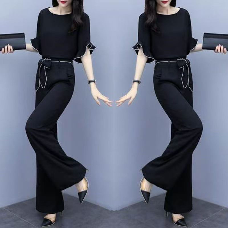 2026 지방 MM 와이드 레그 팬츠 세트 여성 여름 새로운 로얄 자매 품격 하이웨이스트 슬림해 보이는 외국 가스 세련된 캐주얼 두 조각