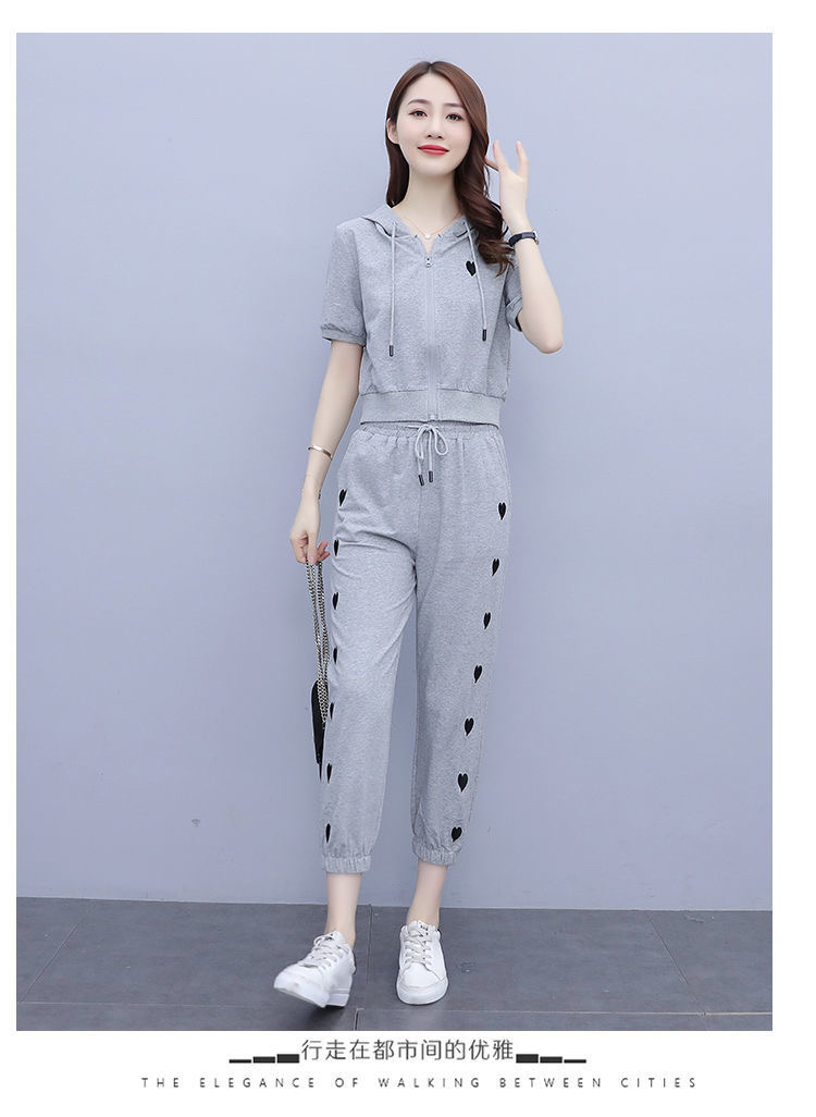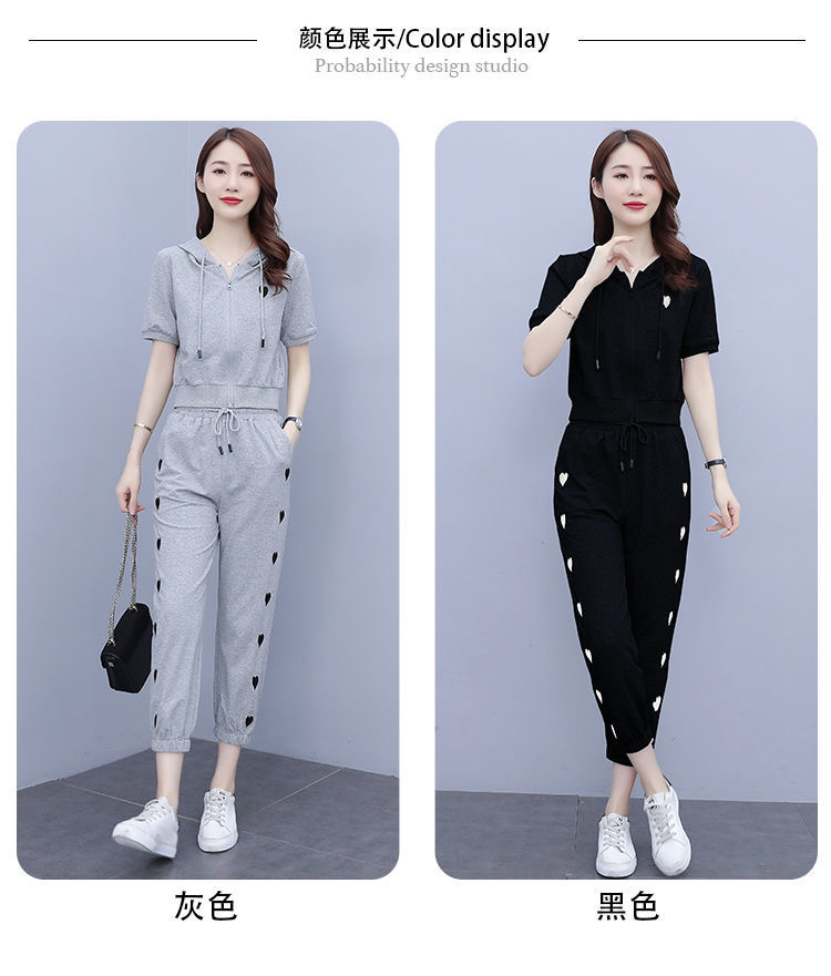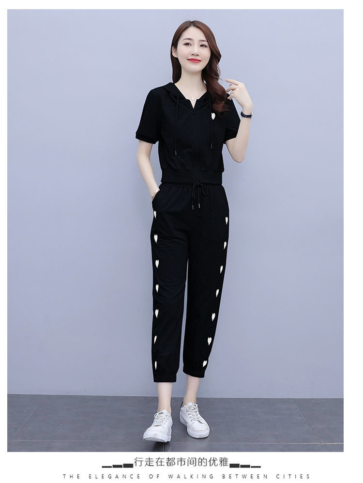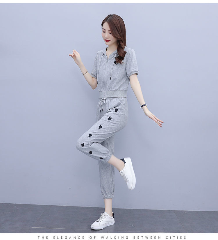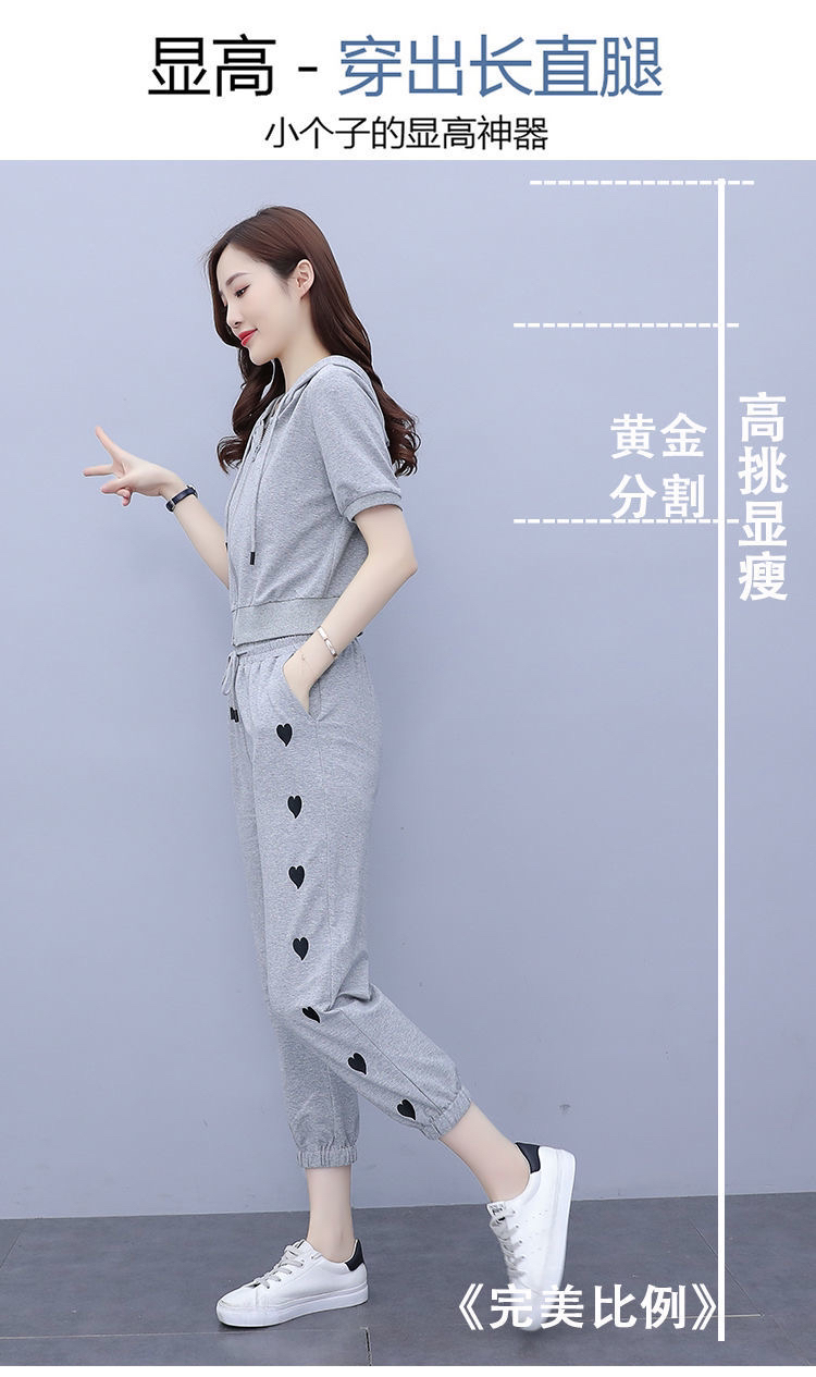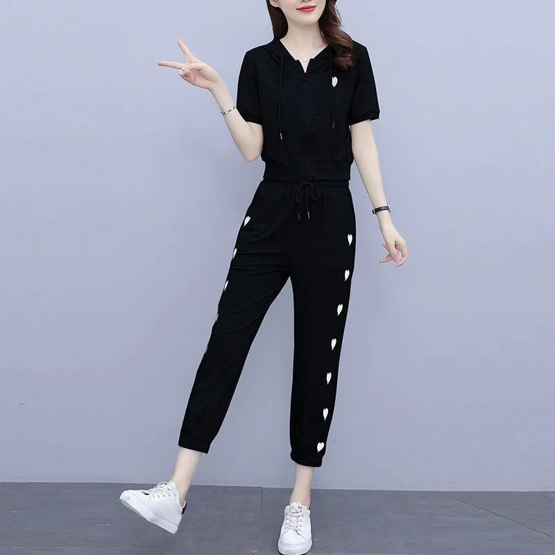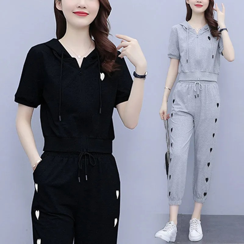 2026 년 여름 새로운 반팔 운동 캐주얼 세트 여성 짧은 루즈핏 맨위 9부 바지 학생 세트