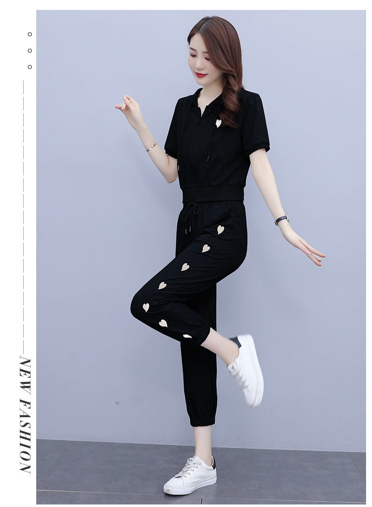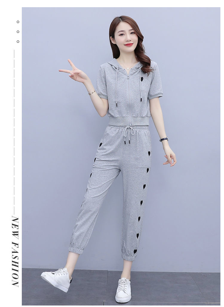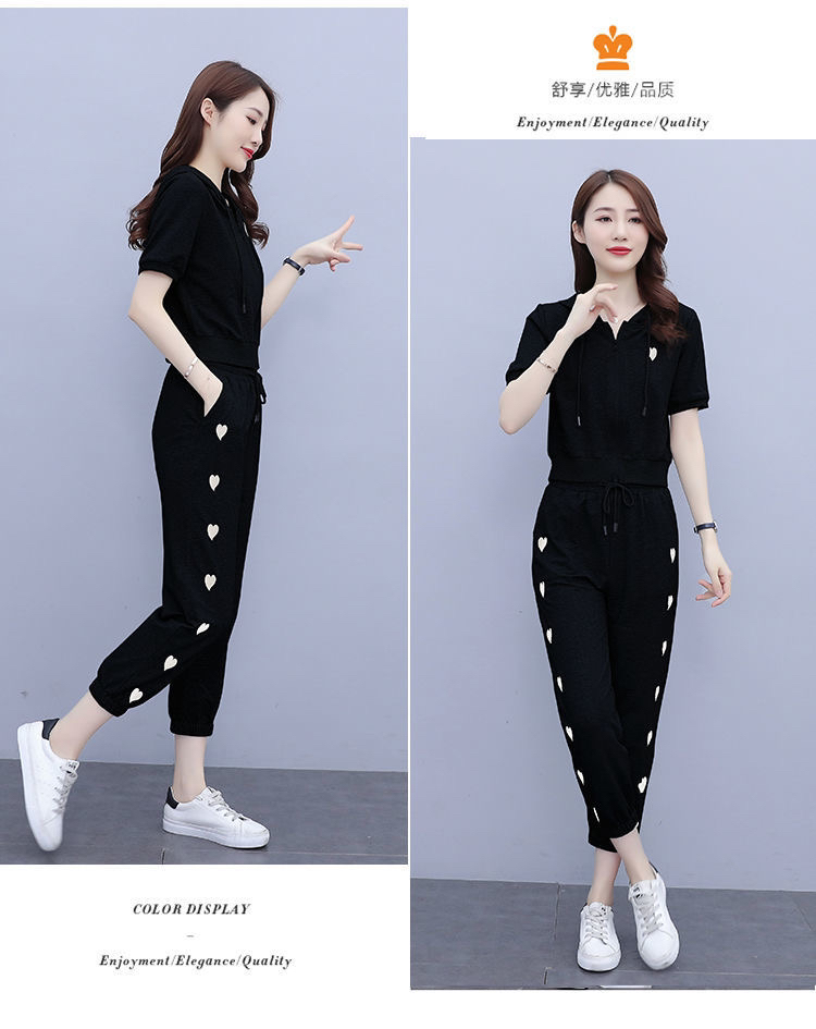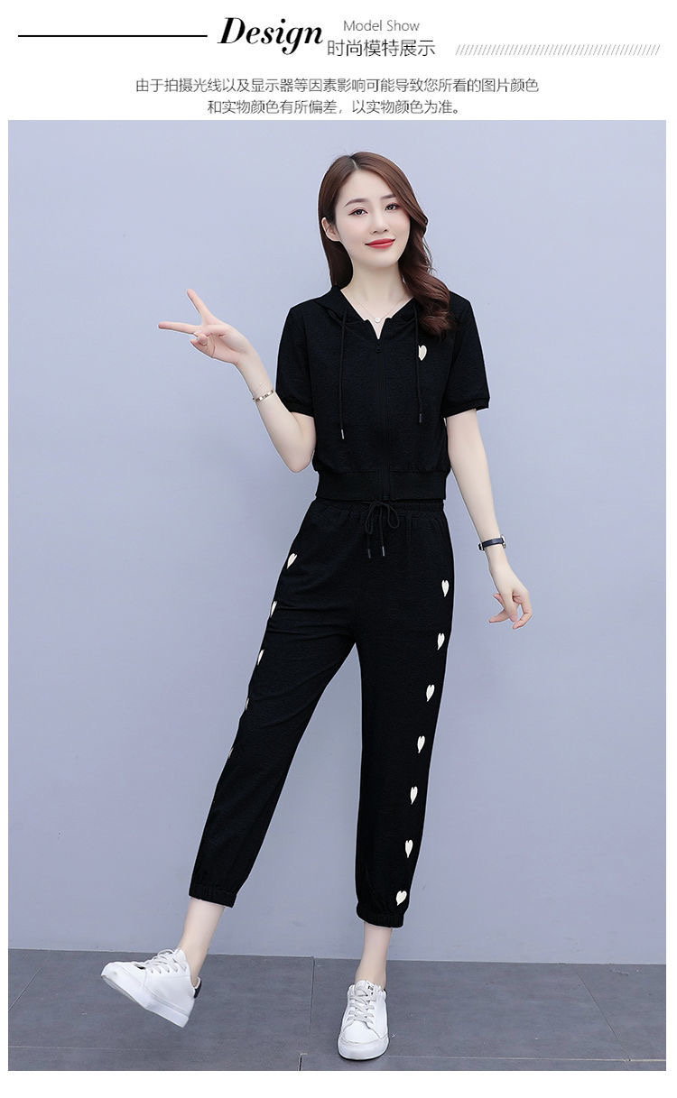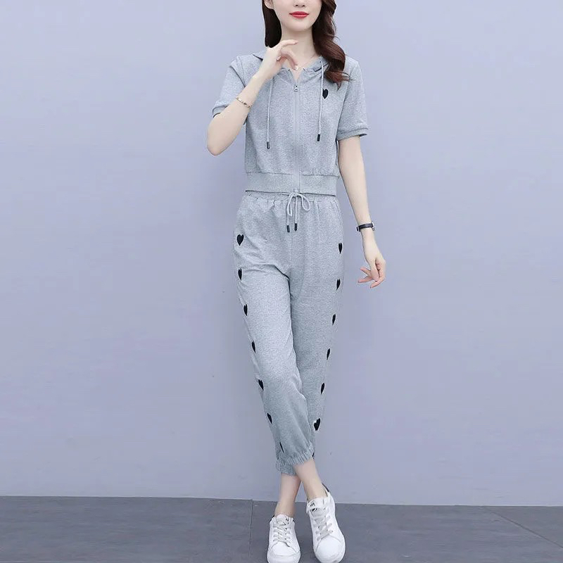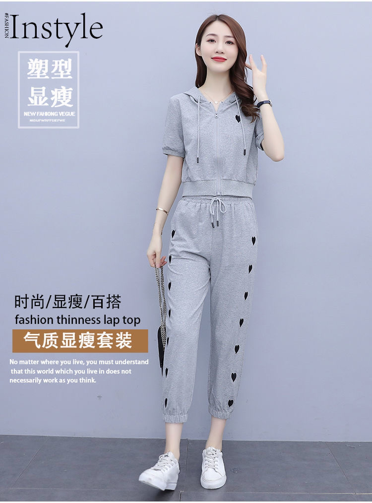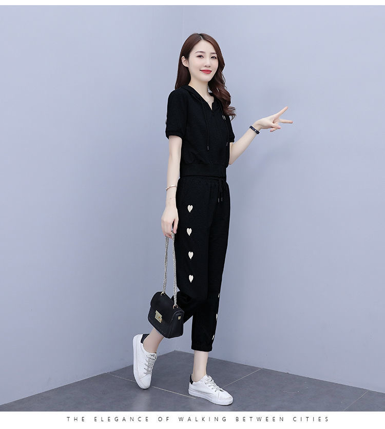 2026 년 여름 새로운 반팔 운동 캐주얼 세트 여성 짧은 루즈핏 맨위 9부 바지 학생 세트