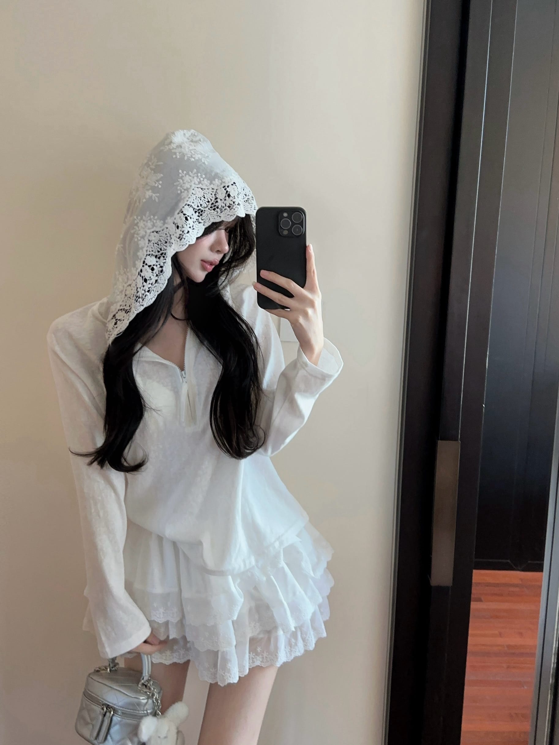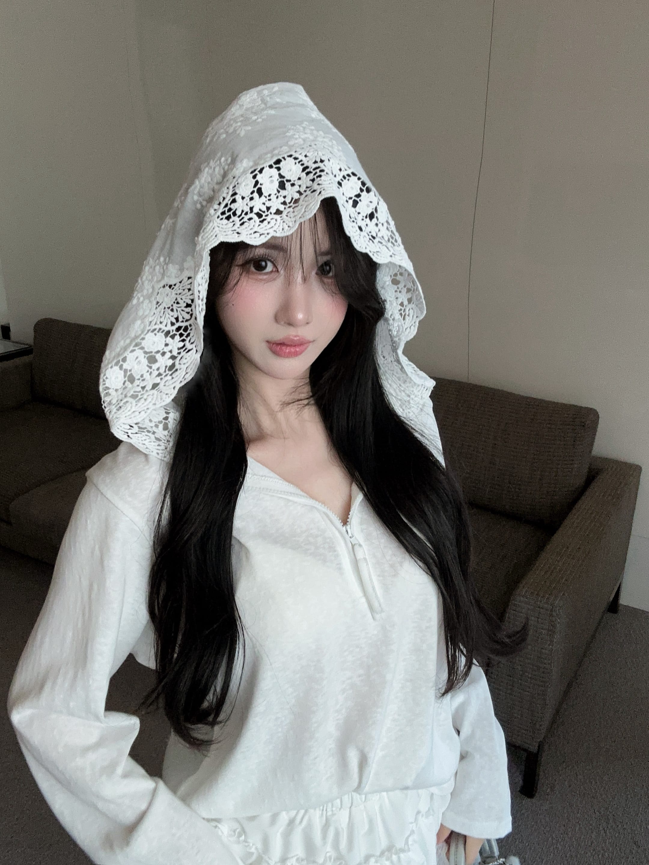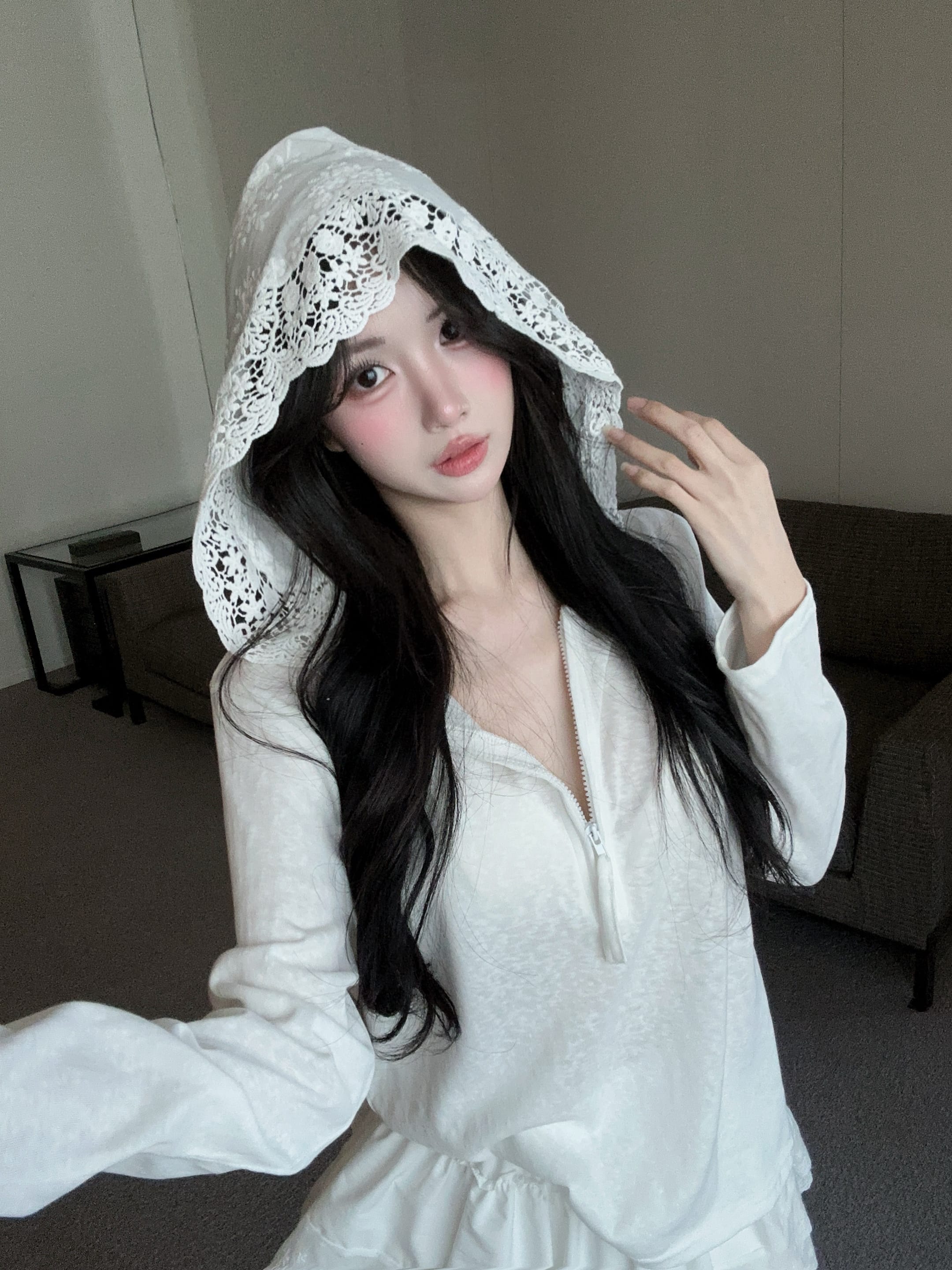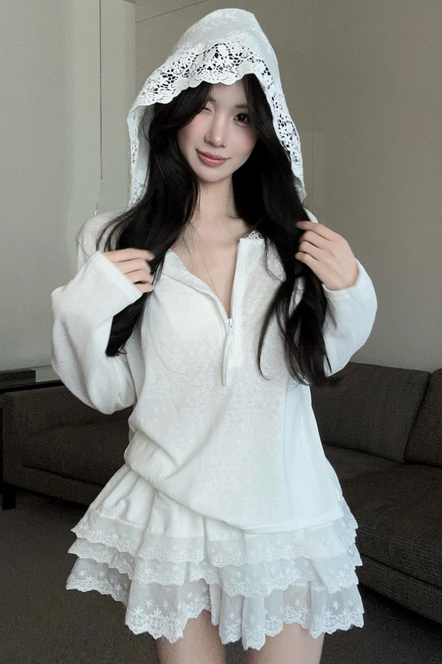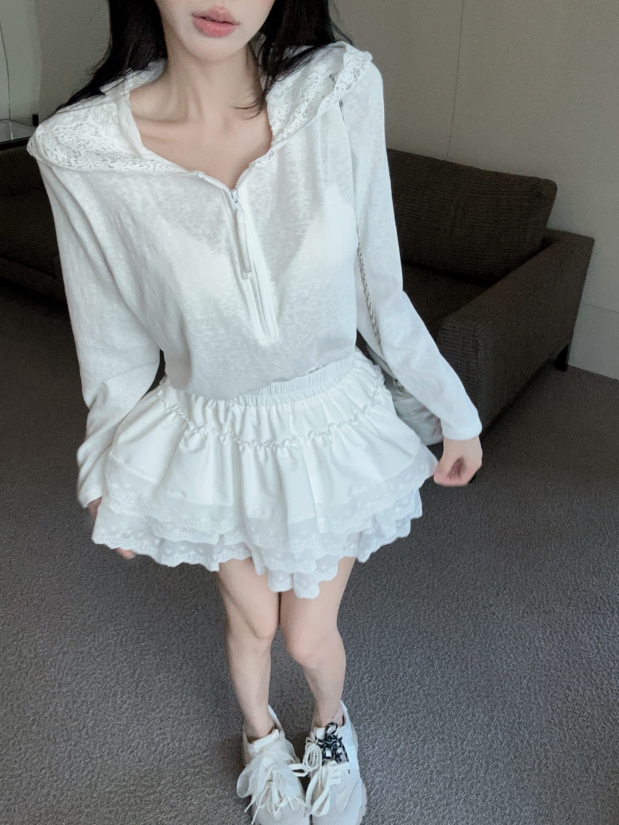 실사 정가 2026 여름 새로운 후드 레이스 측면 티셔츠 루즈핏 맨위 레이스 측면 미니 스커트 투피스 슈트
