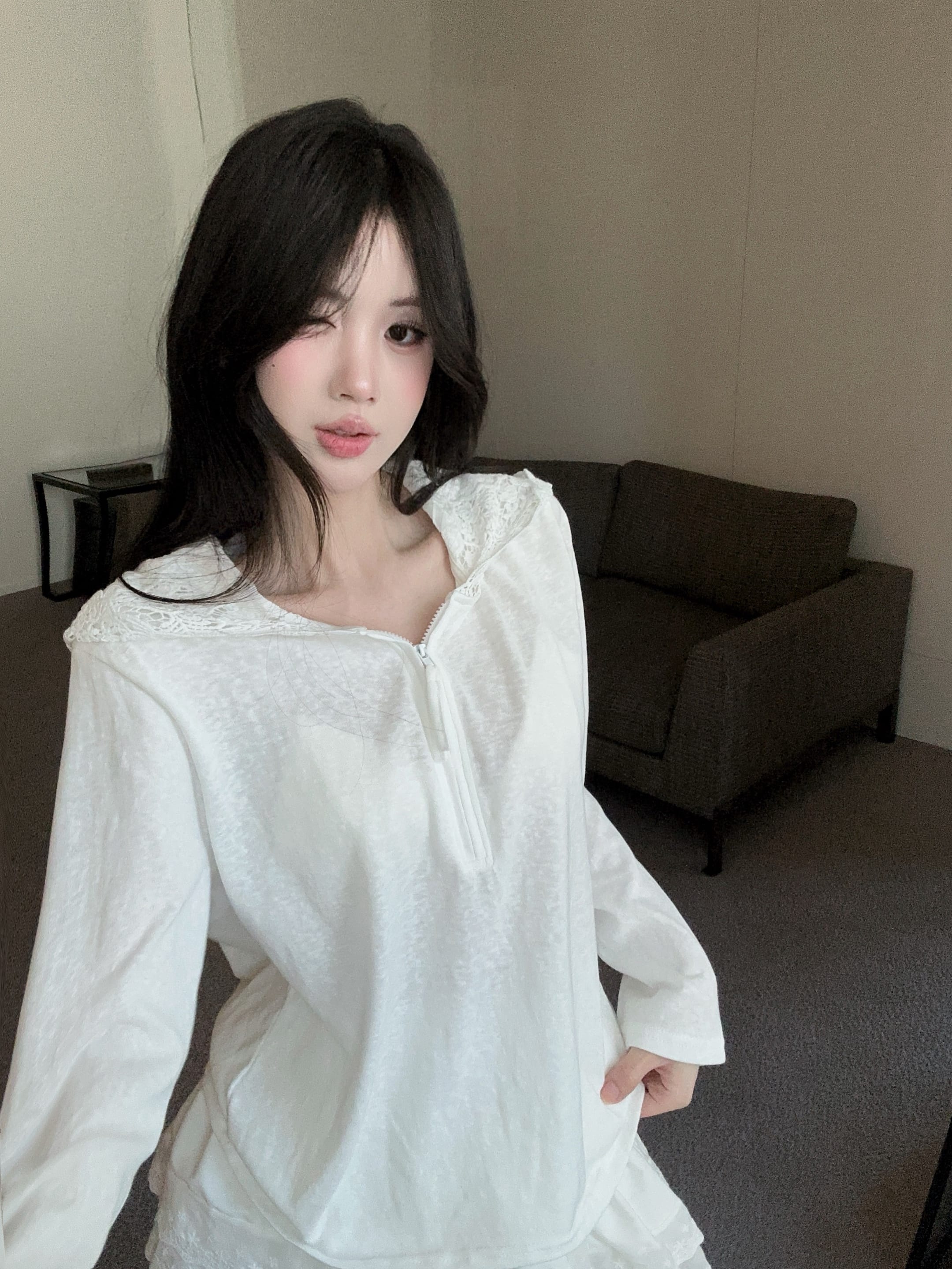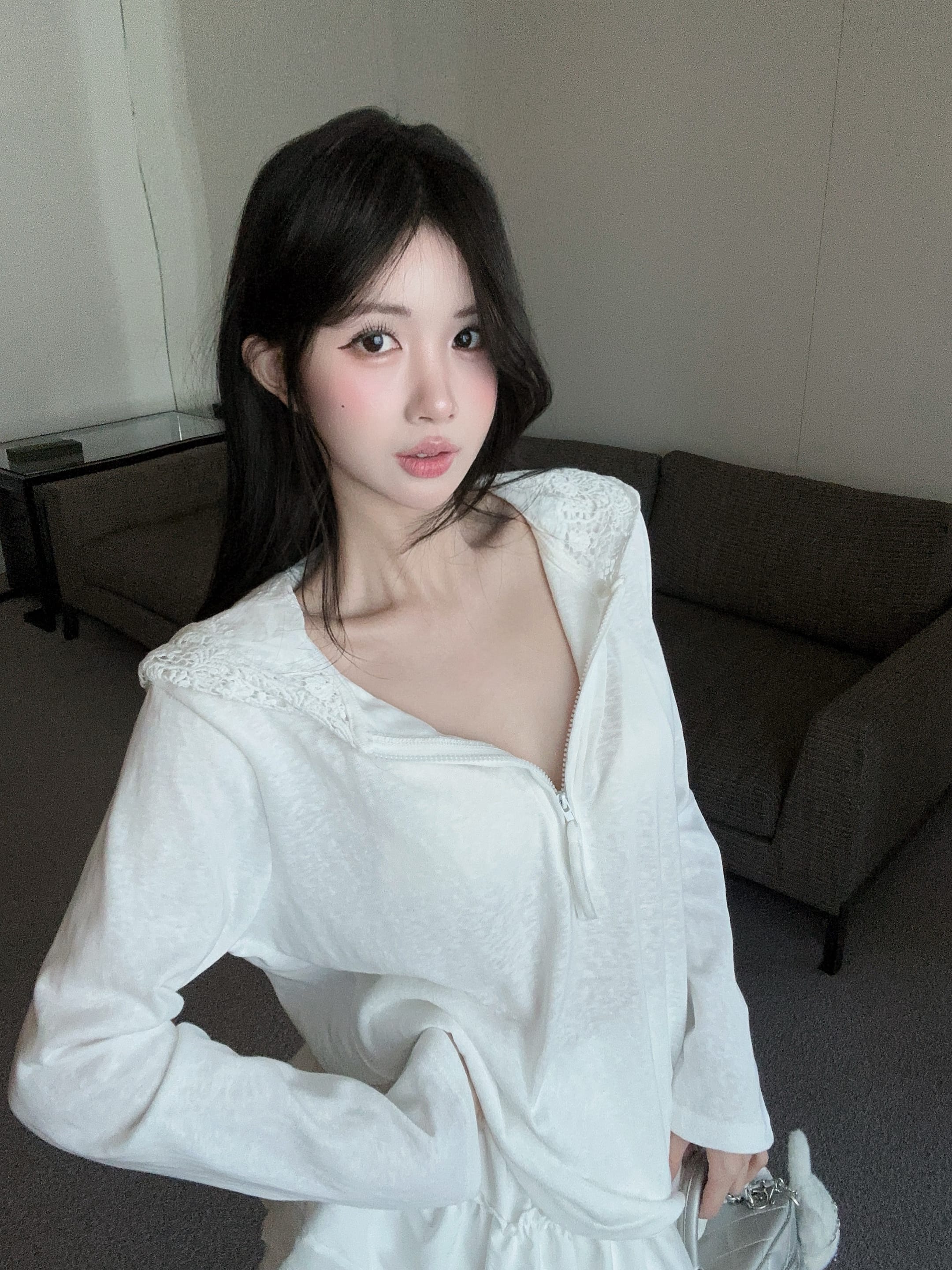 실사 정가 여름 마이크로 ~을 통해 긴팔 티셔츠 여성 자외선 차단 블라우스 밴딩 노출 방지 미니 스커트 투피스 슈트