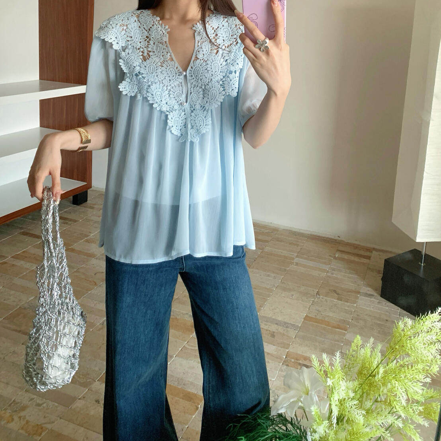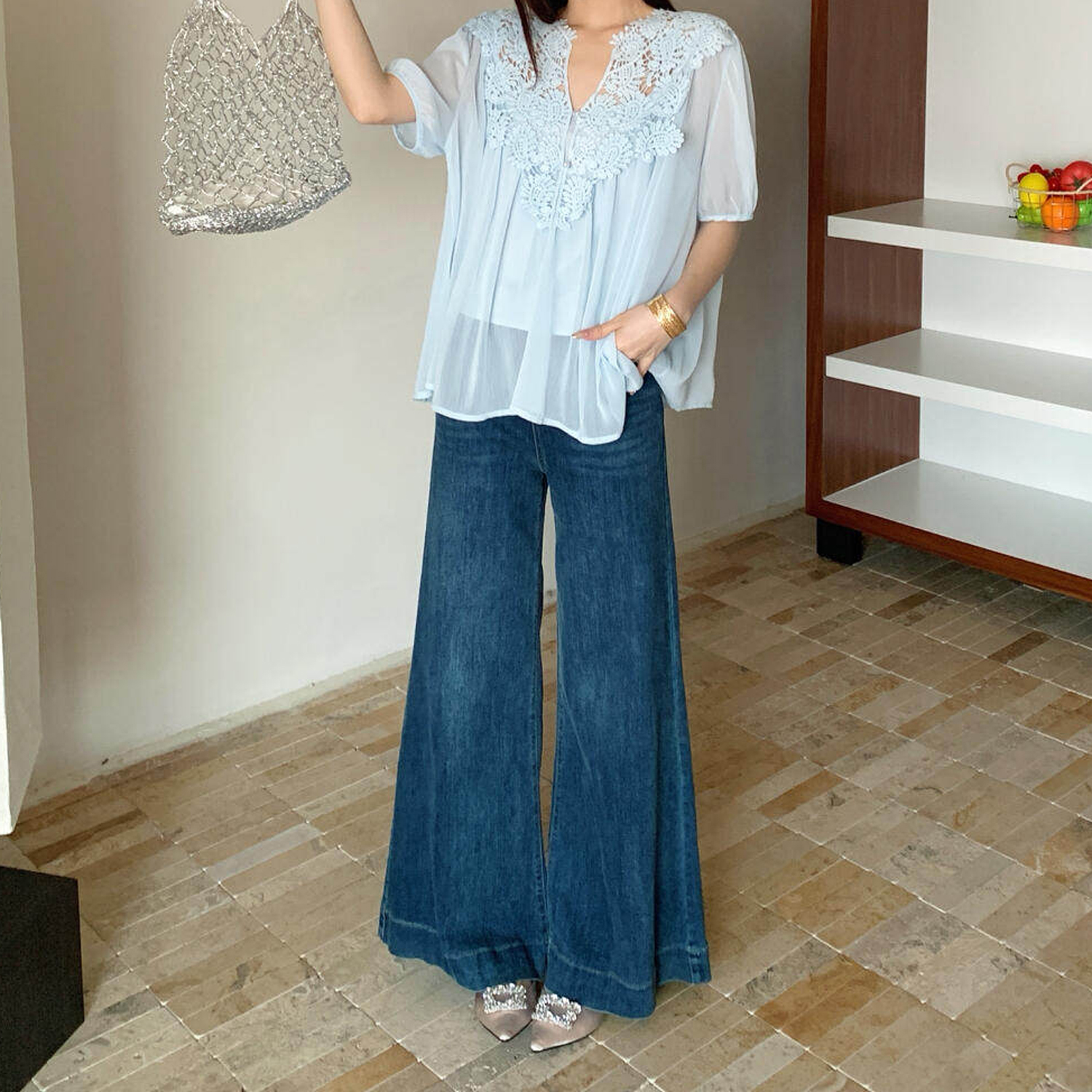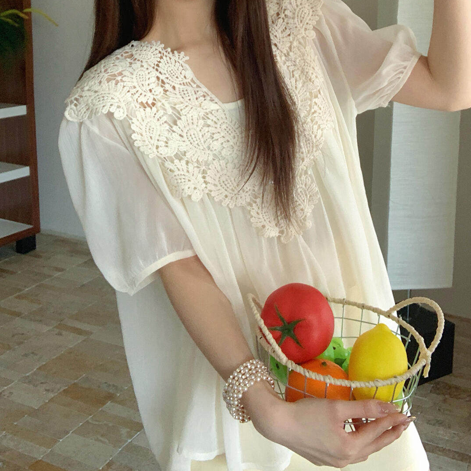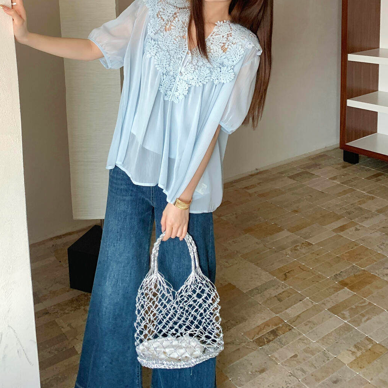 목이버섯 레이스 민소매 도트 무늬 조끼 여성 여름 새로운 작은 키 루즈핏 넓은 다리 8 점 바지 여성복 여성