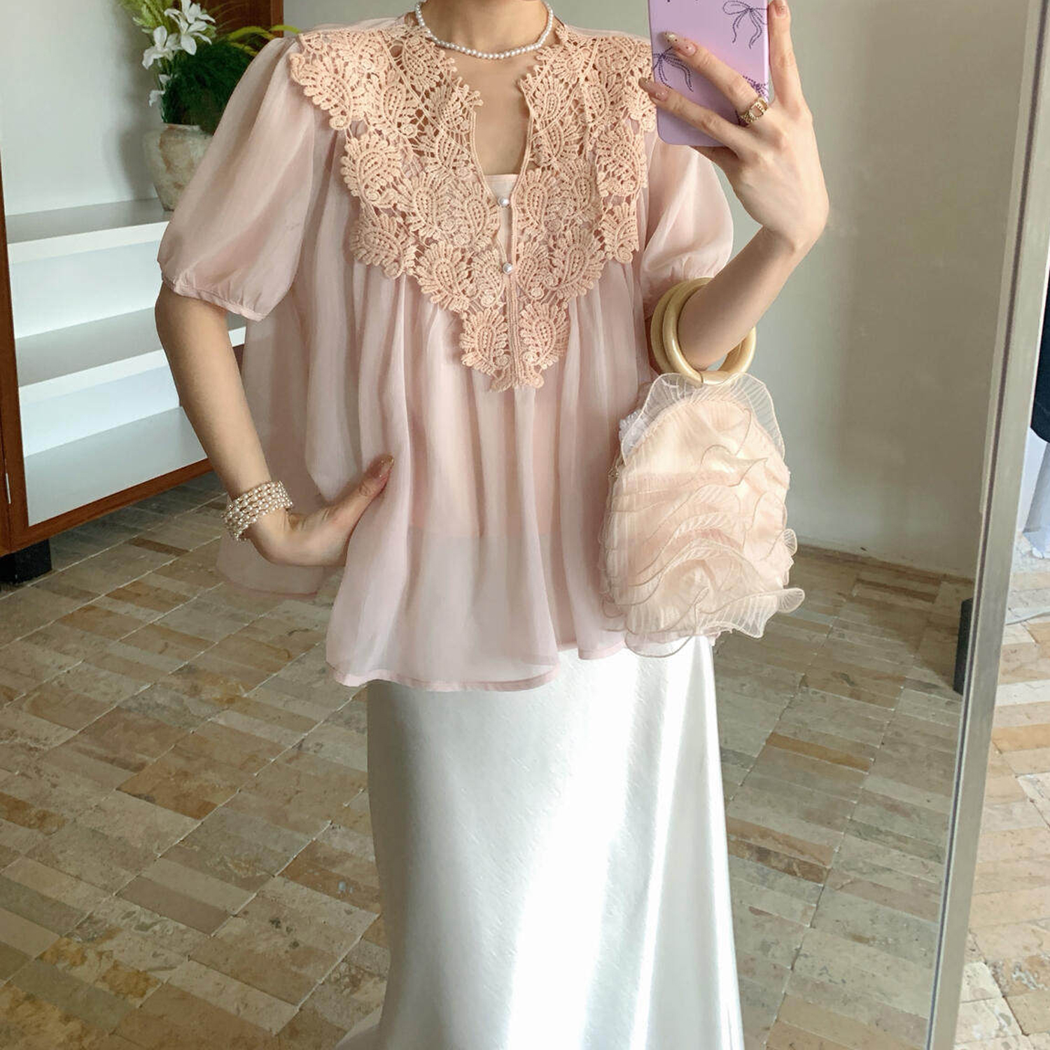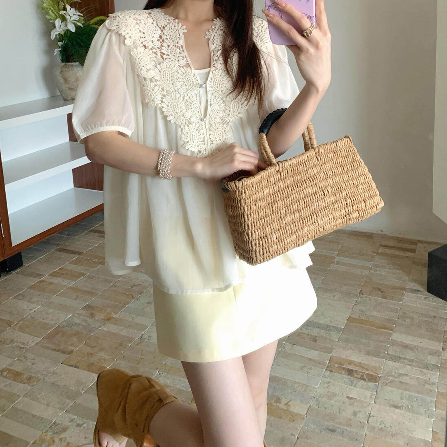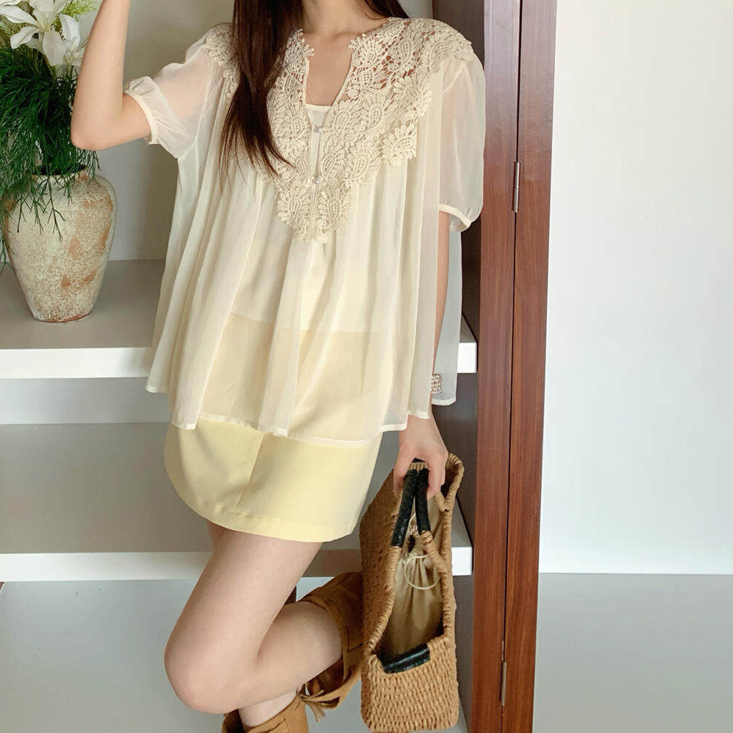 한 부서 아름다운 레이스 민소매 블라우스 세트 드레스 봄 여름 2026 새로운 스택 착용 슬립 드레스 투피스 세트