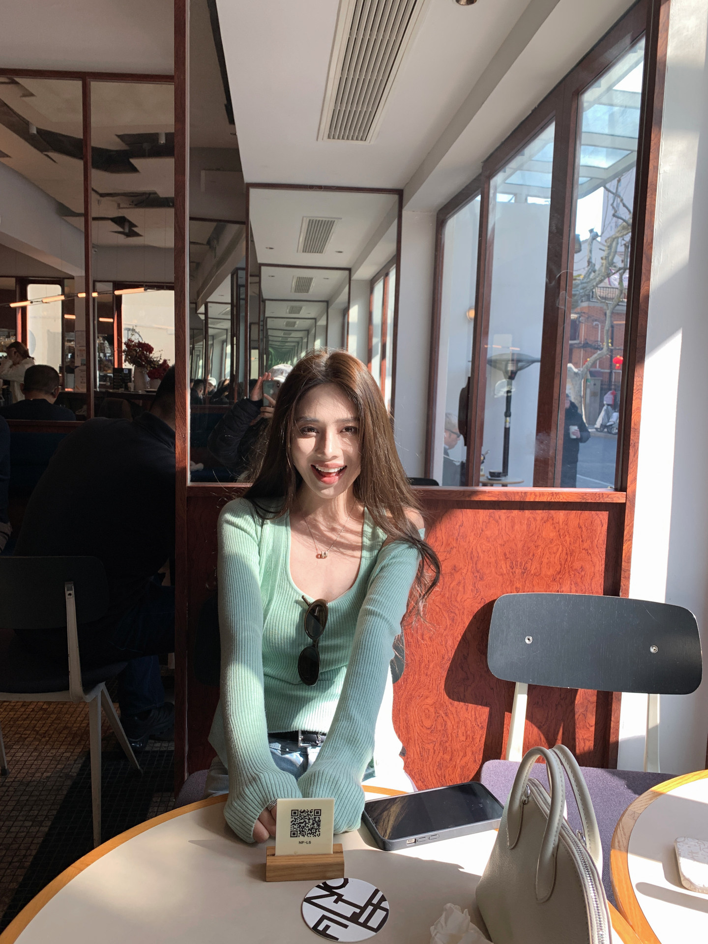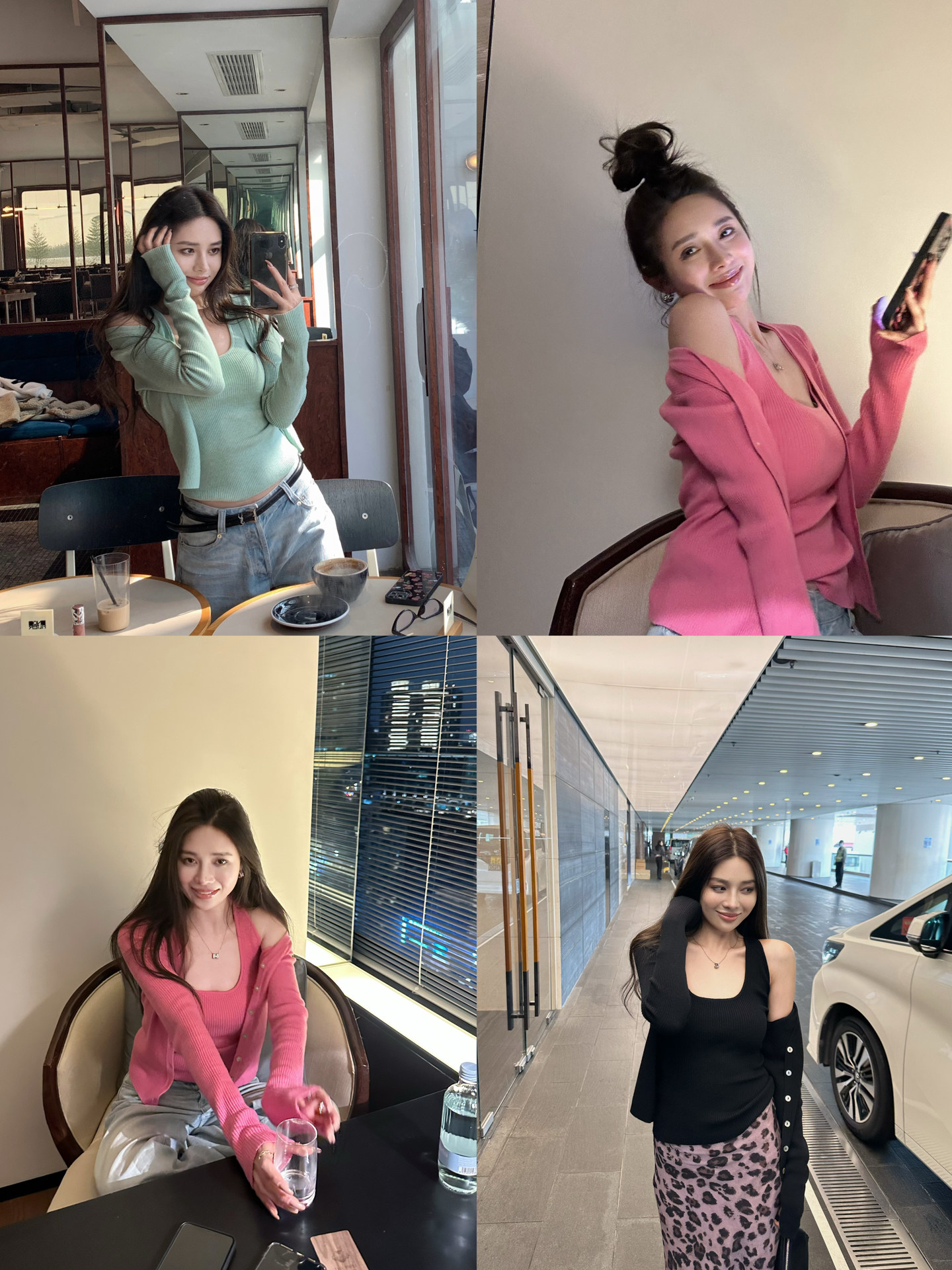 박하 녹색 니트 홀로우 아웃 긴팔 가을 의상 여자 2025 년 새로운 이른 가을 분위기 센스 착용 가져 가라. 작은 샤넬 스타일 맨위