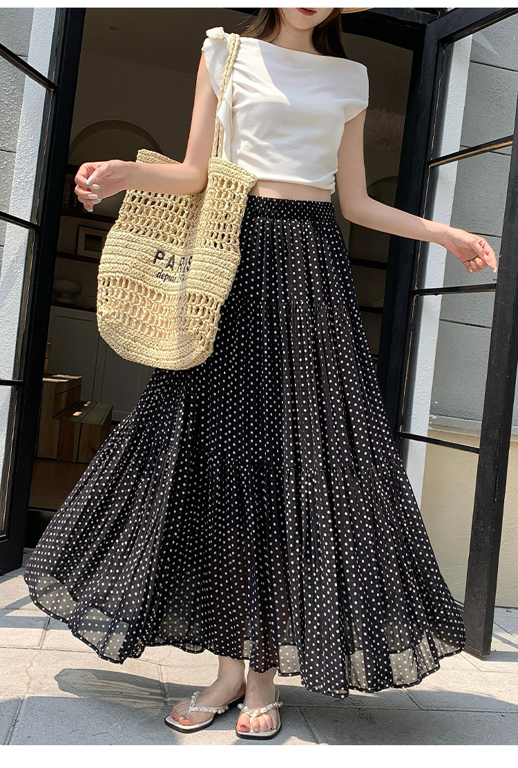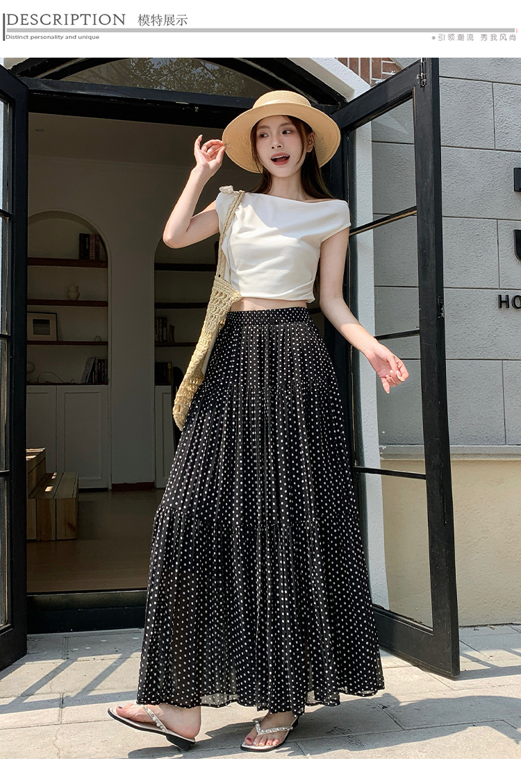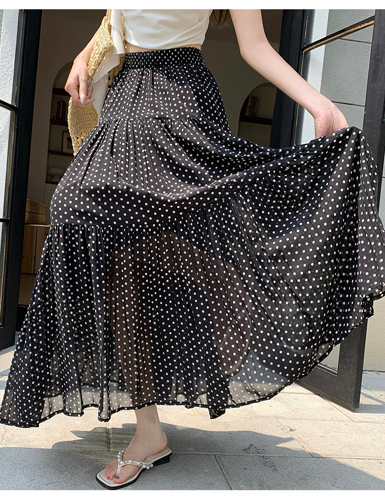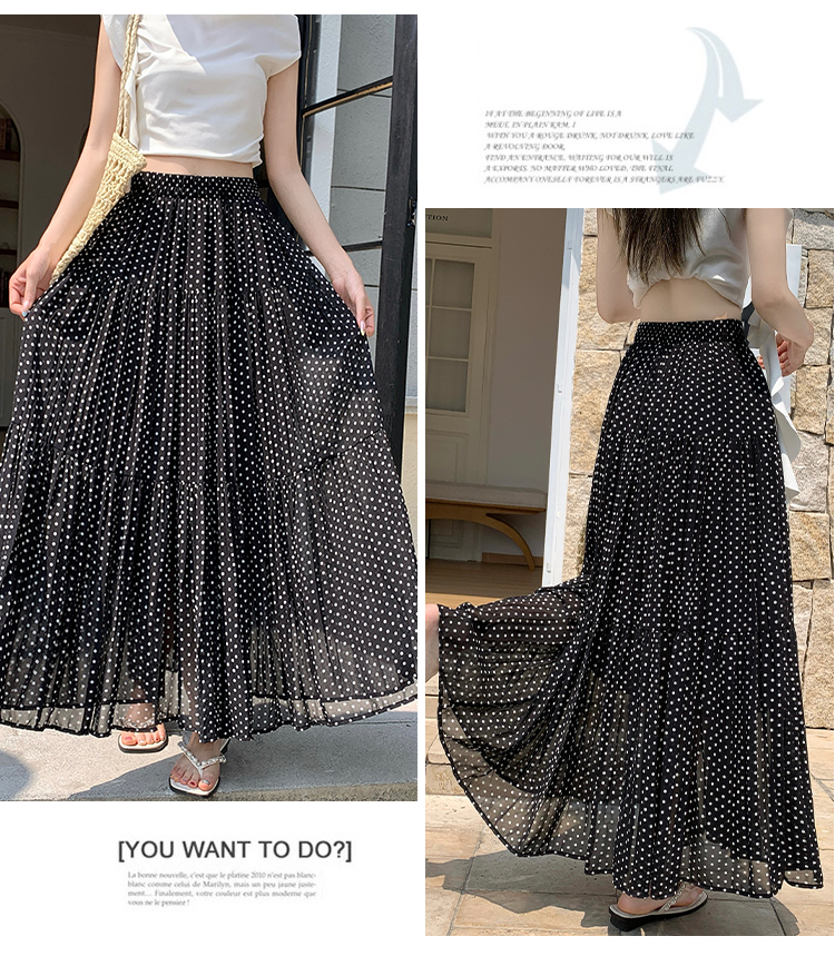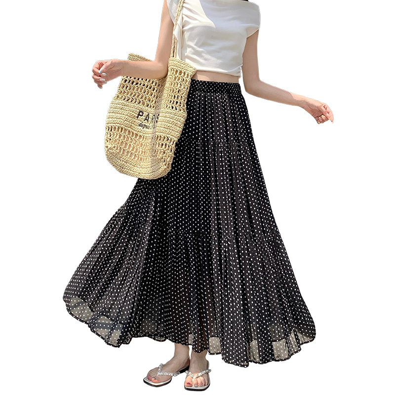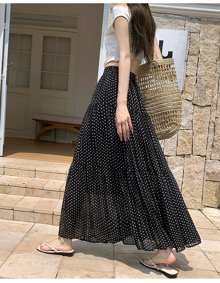 한국 스타일 레트로 도트 무늬 주름 반신 스커트 여성 2026 새로운 하이웨이스트 한 마디 큰 진자 롱 스커트 표지 넓적 다리 슬림해 보이는 반 스커트