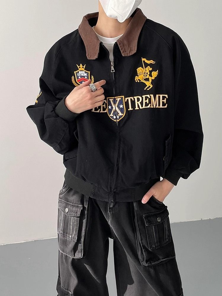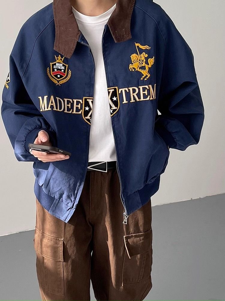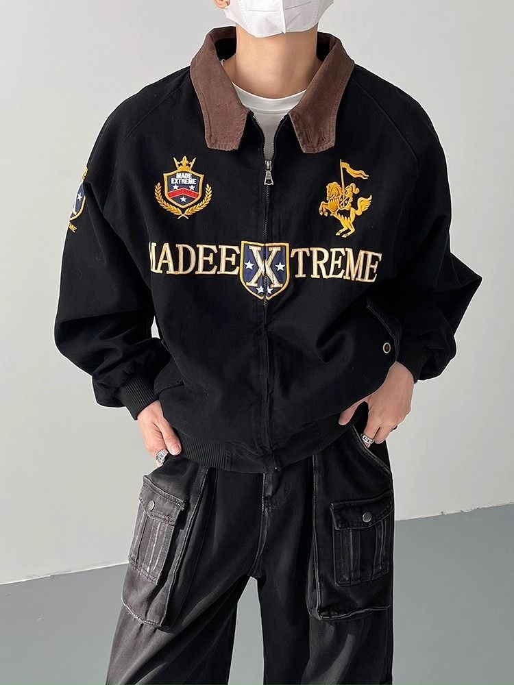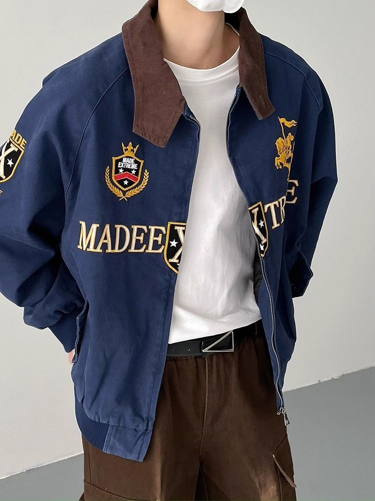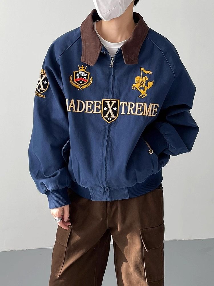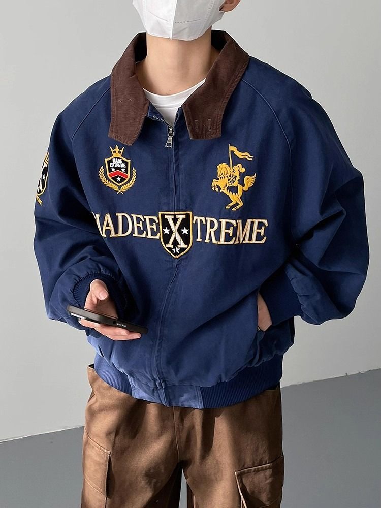 2026 아메리칸 높음 거리 무거운 알파벳 자수 야구 유니폼 남자 봄 가을 새로운 악당 잘 생긴 캐주얼 폴로 칼라 여성 코트