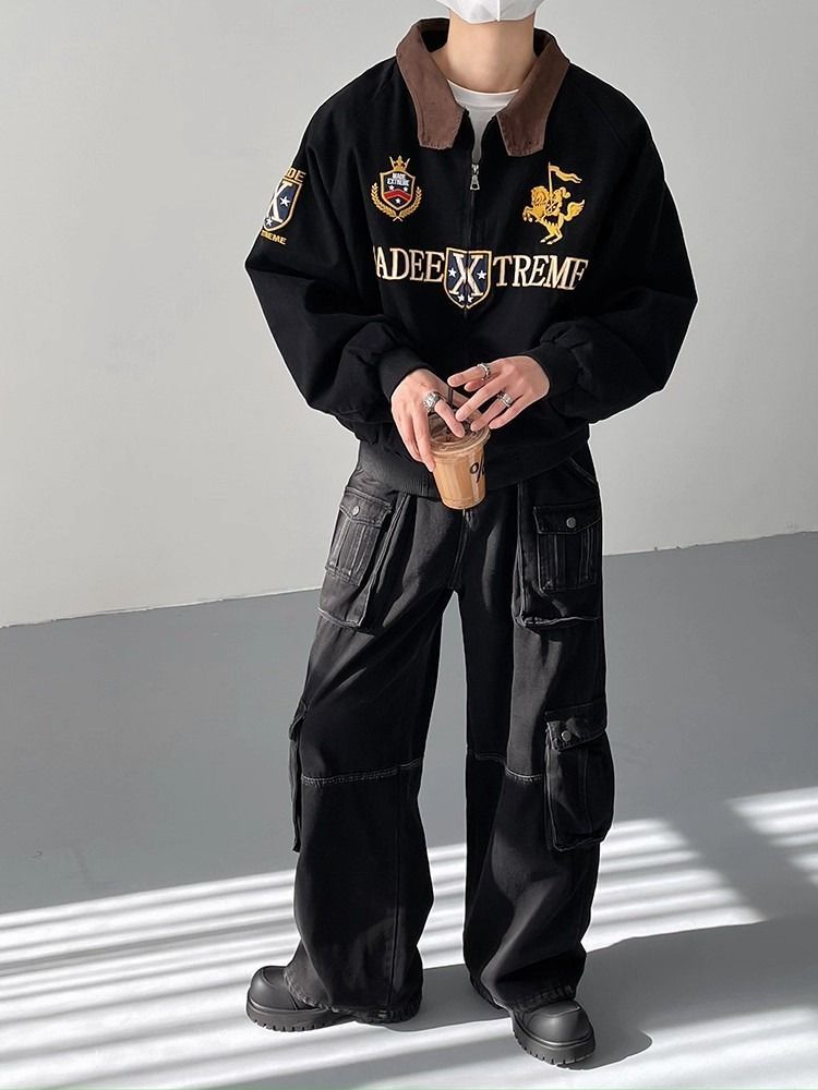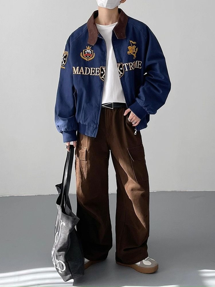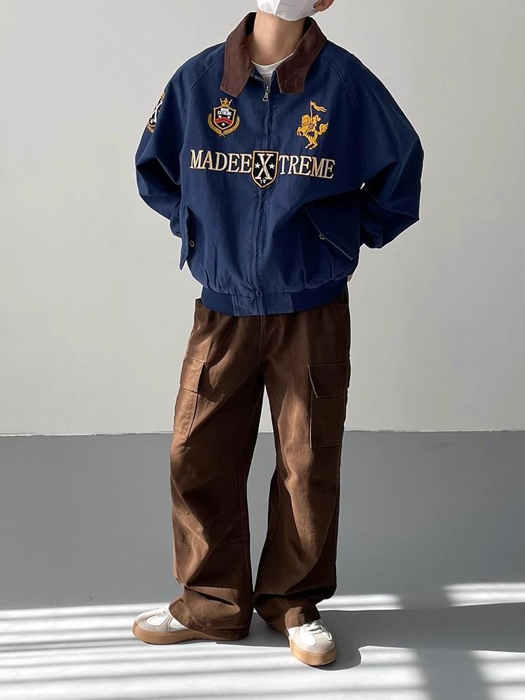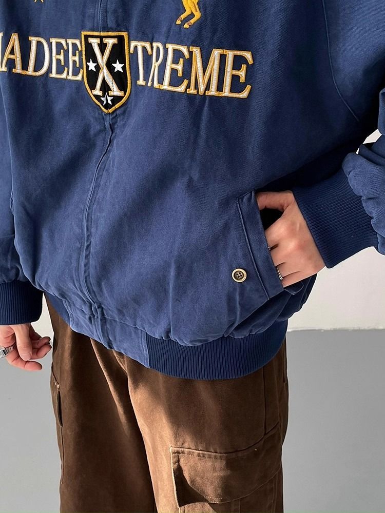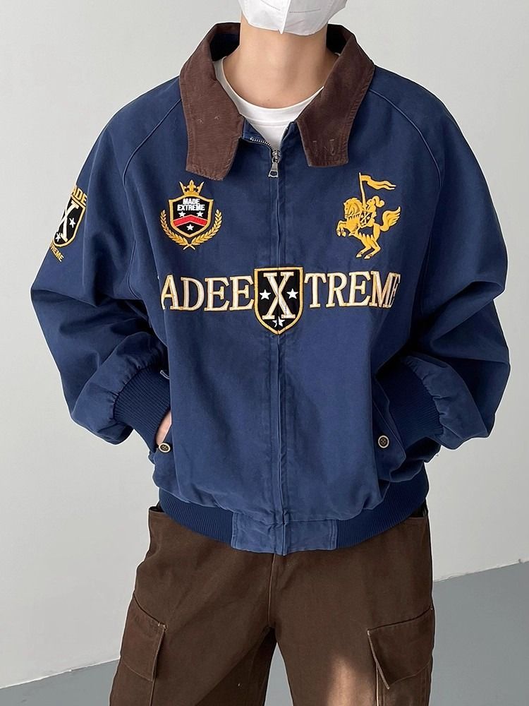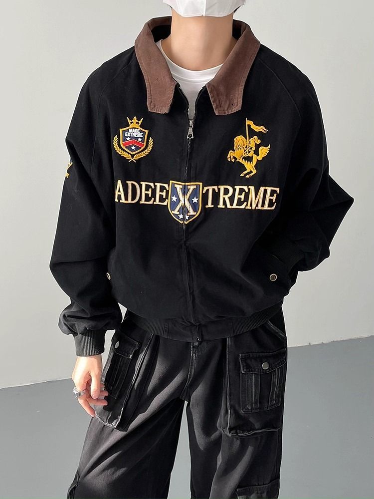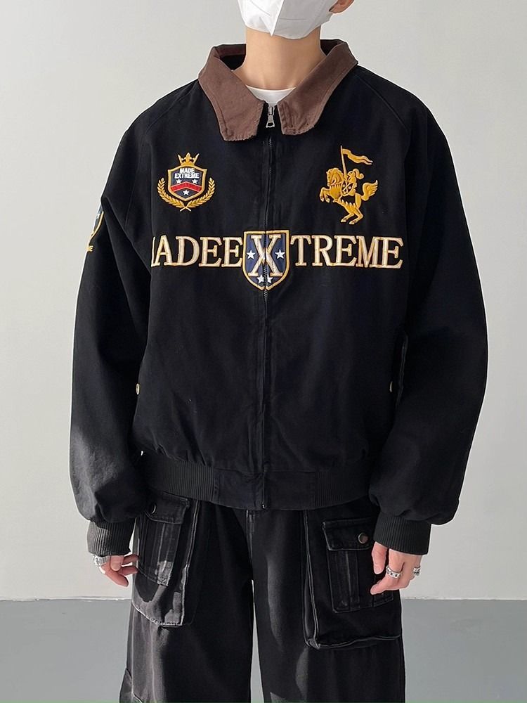 2026 아메리칸 높음 거리 무거운 알파벳 자수 야구 유니폼 남자 봄 가을 새로운 악당 잘 생긴 캐주얼 폴로 칼라 여성 코트