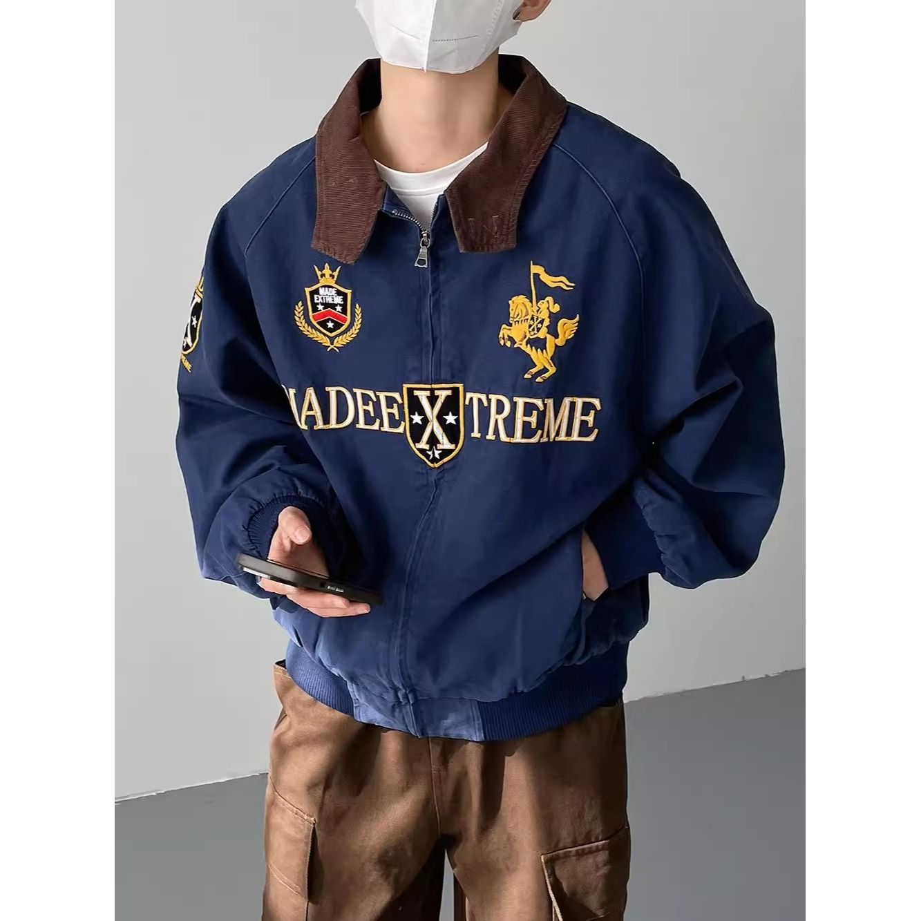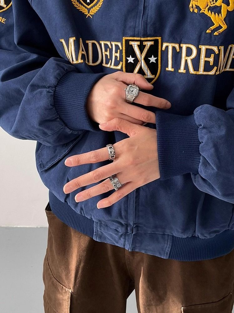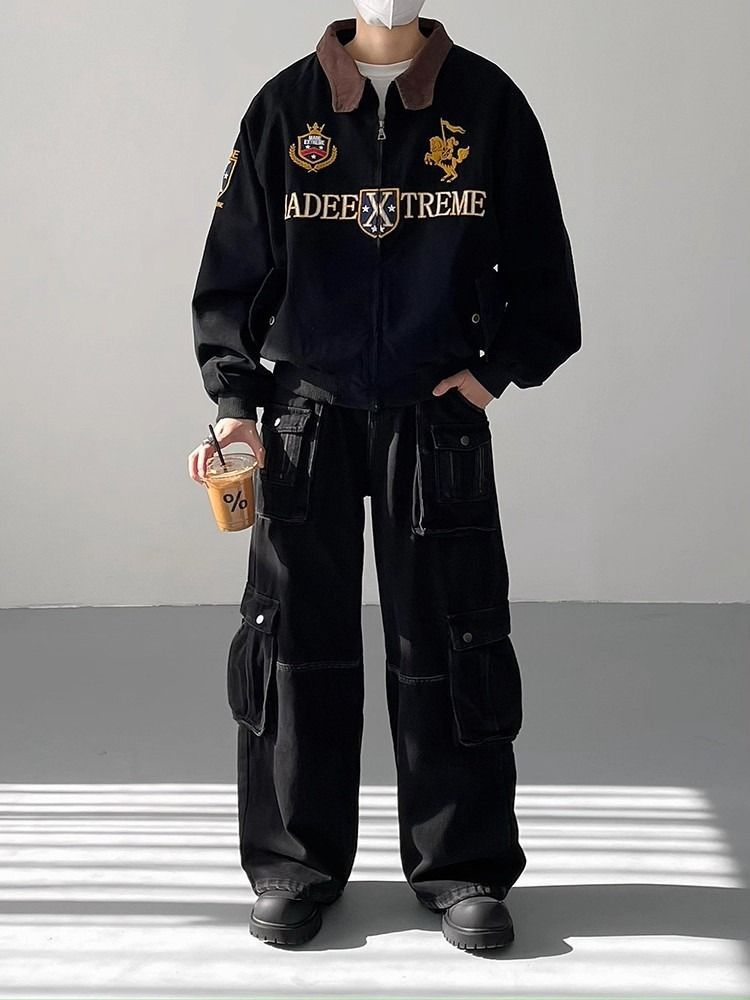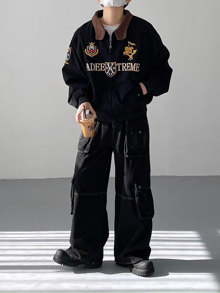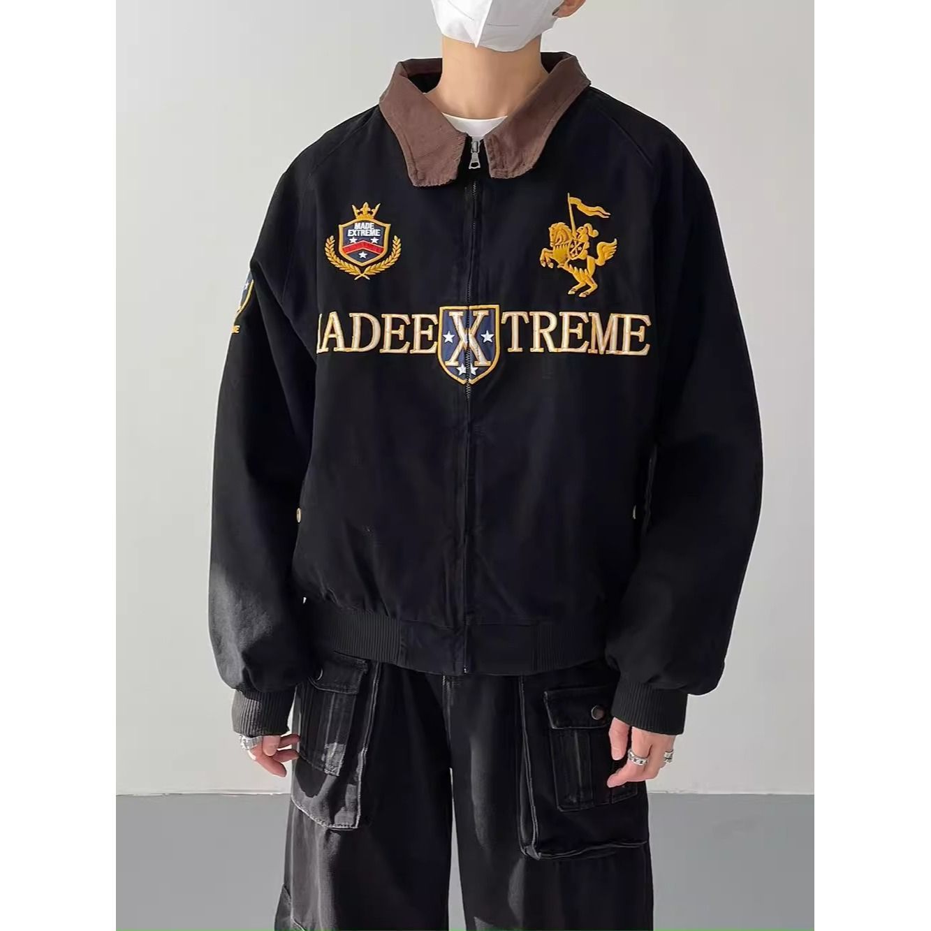 2026 아메리칸 높음 거리 무거운 알파벳 자수 야구 유니폼 남자 봄 가을 새로운 악당 잘 생긴 캐주얼 폴로 칼라 여성 코트