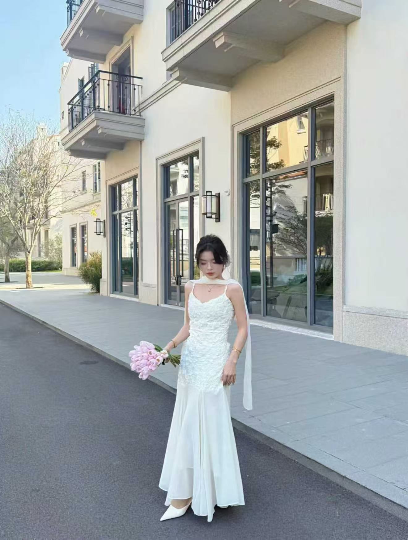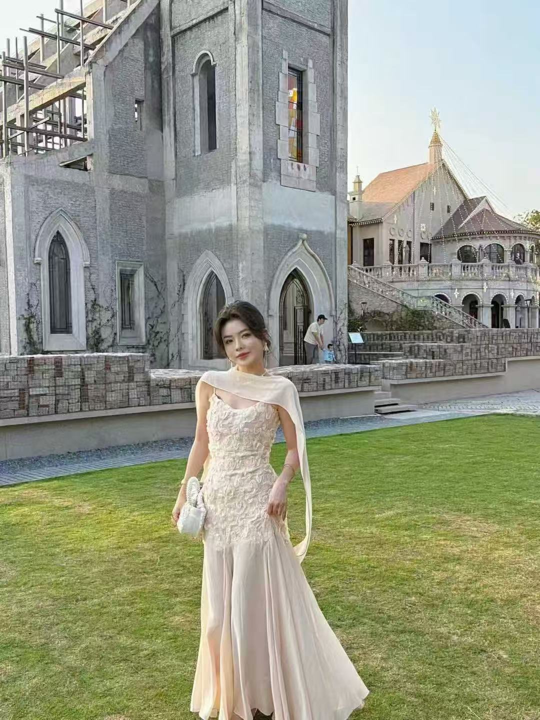새로운 디자인 센스 몸매 가꾸기 중식 레이스 자수 홀로우 아웃 민소매 조끼 허리밴드 반신 치마 세트