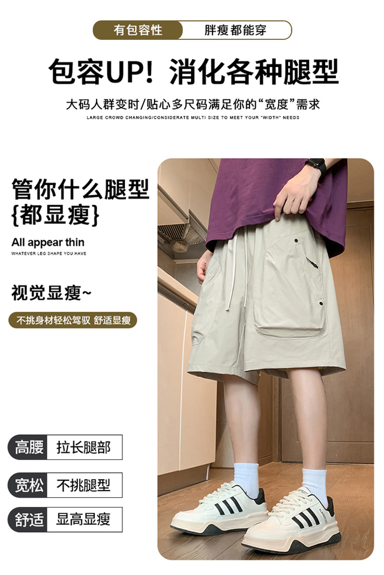 새로운 워크웨어 남자 루즈핏 캐주얼 오부 바지 커플 조수 브랜드 반바지 야외 얼음 실크 속도 말라 죽다 호흡 곤란 바지