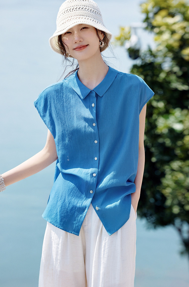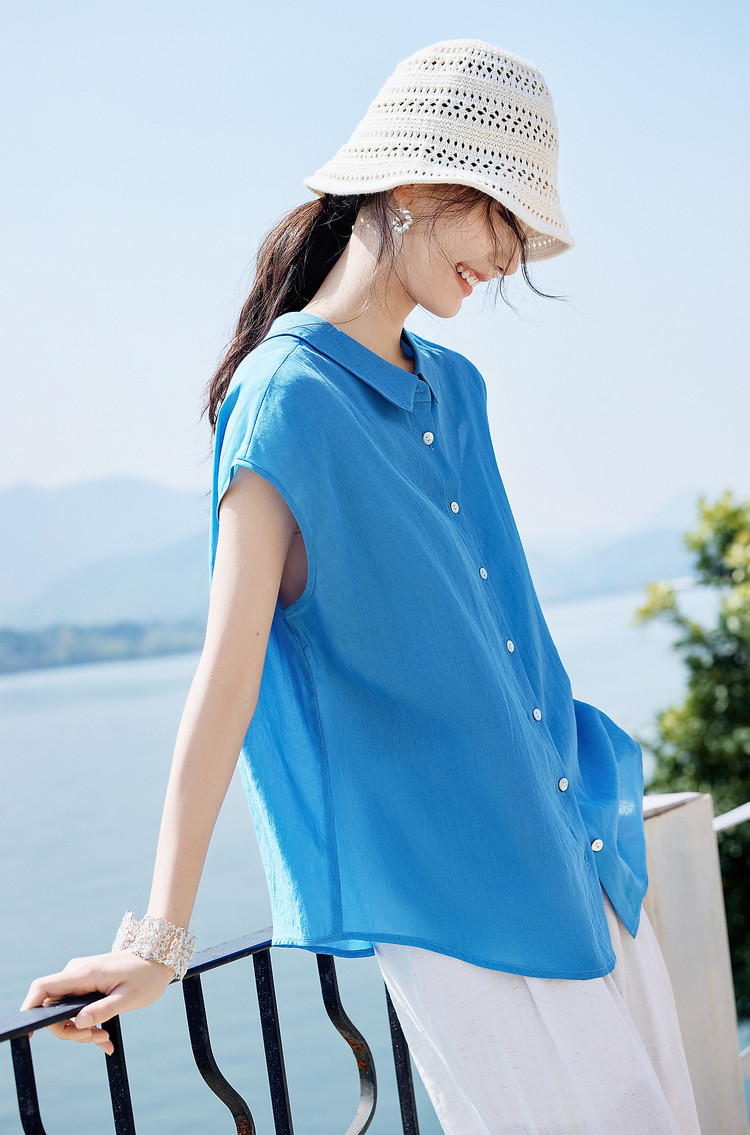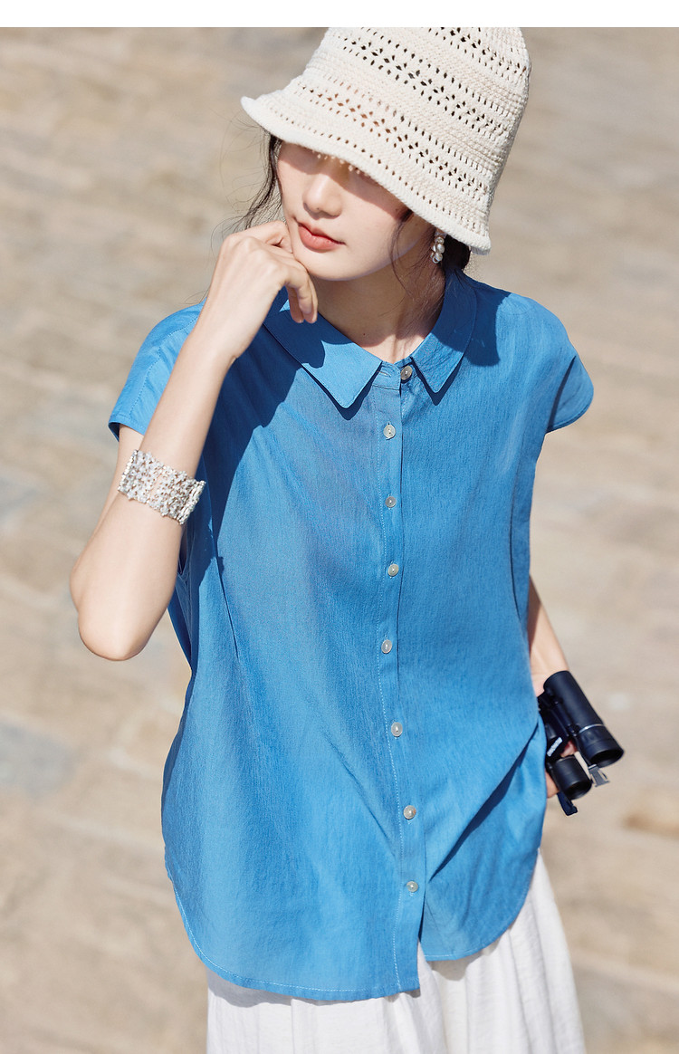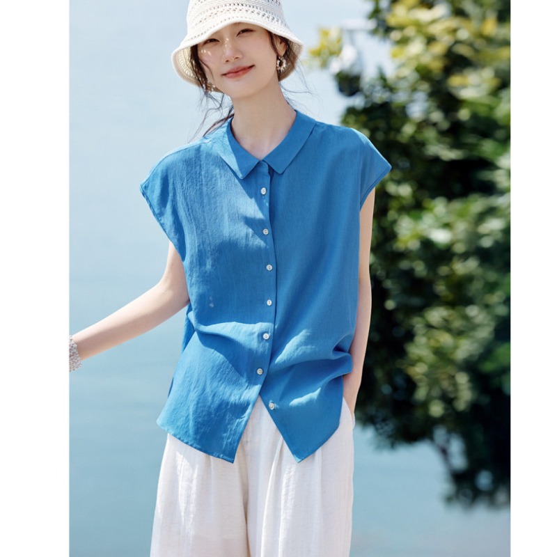 프랑스식 여성 셔츠 2026 여름 새로운 루즈핏 느긋한 바람 익스트림 제인 품격 출퇴근 파란색 맨위 여성