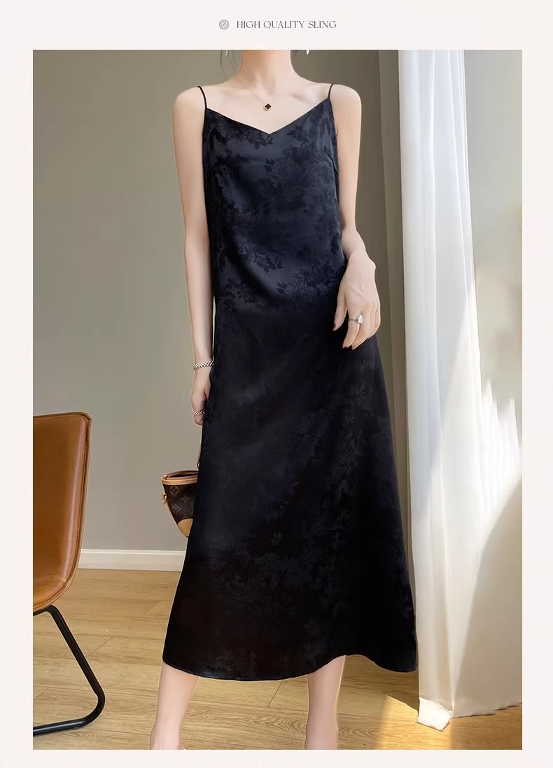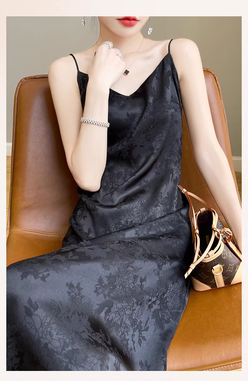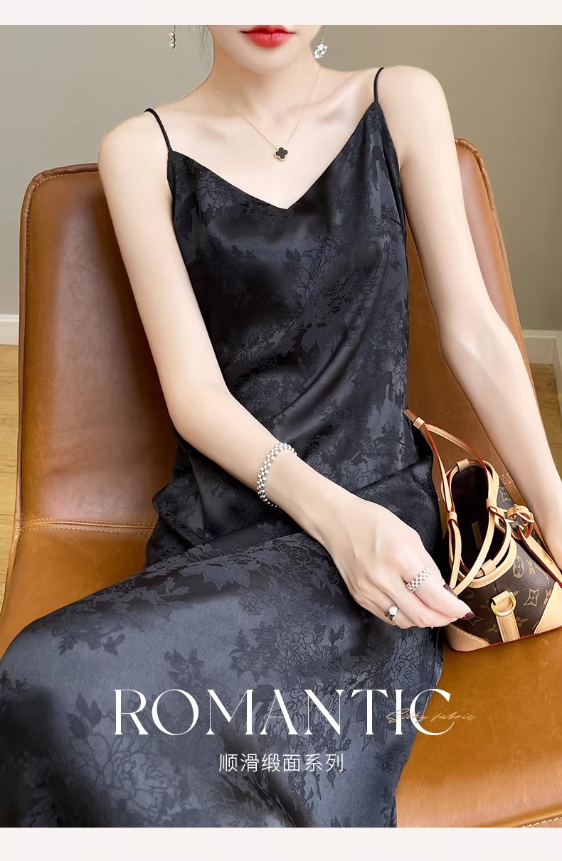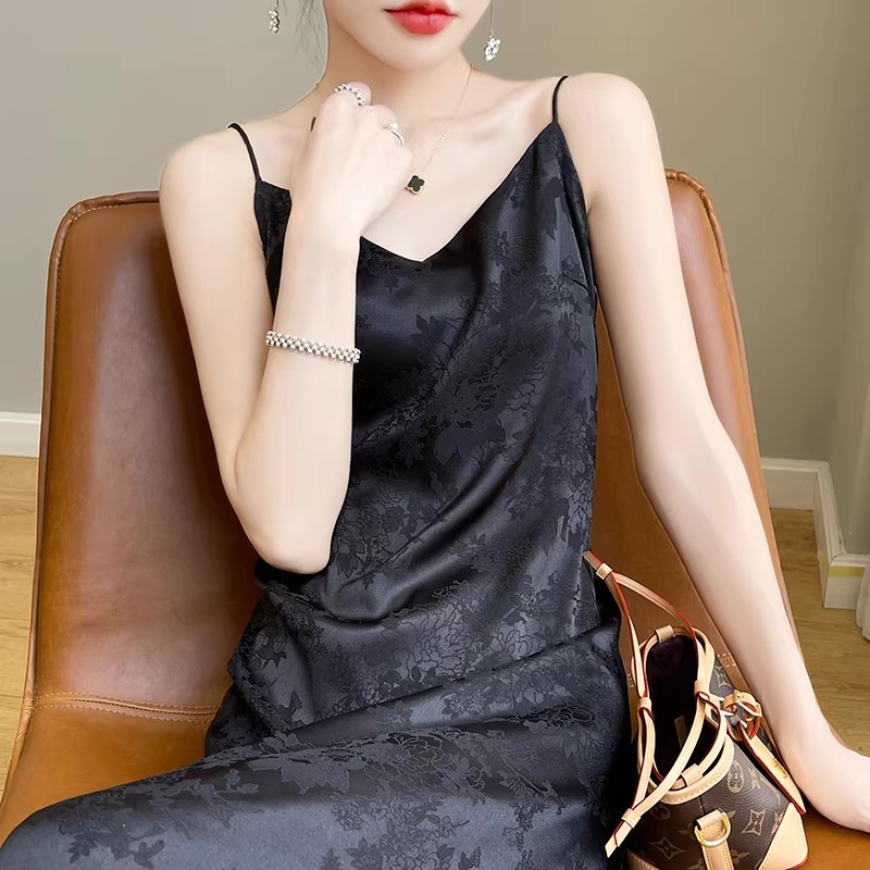 새로운 중식 새틴 슬립 여성 드레스 고급 센스 아세트산 자카드 치마 슬림해 보이는 품격 새틴 롱 스커트 조끼