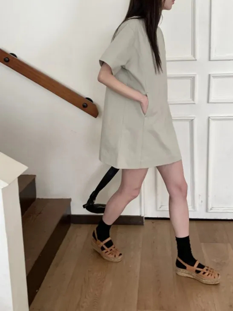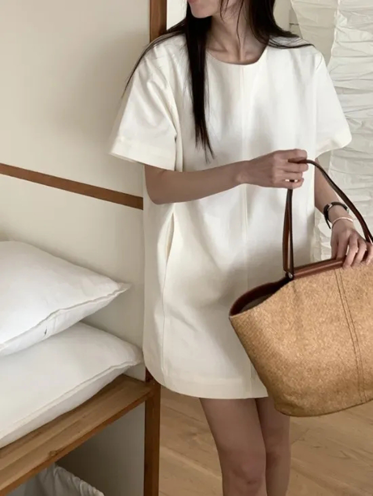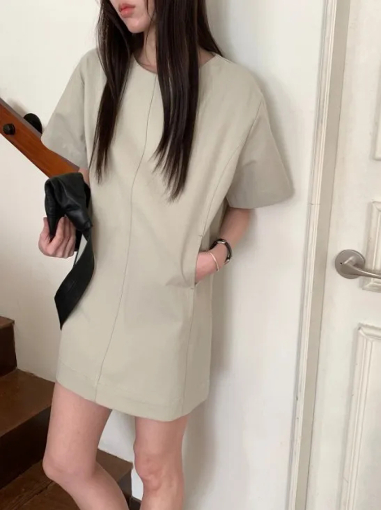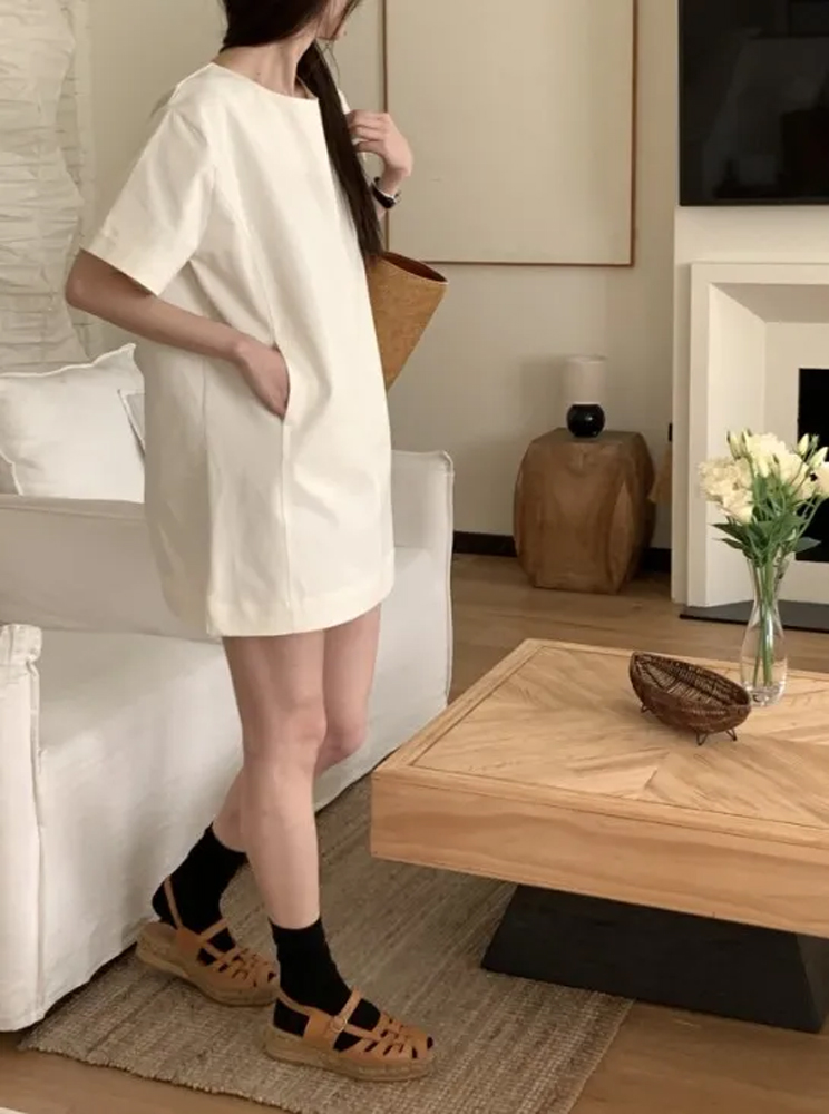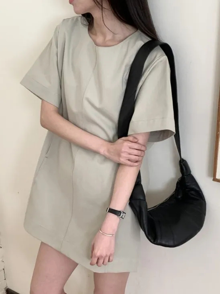 한 부서 익스트림 제인 라운드 넥 반팔 여성 드레스 여름 루즈핏 스트레이트 중간 스커트 캐주얼 다용도 게으른 치마