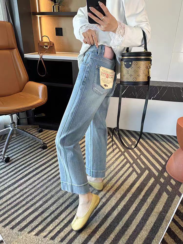 2026 새로운 빅 사이즈 라이 경기 서울 주간 실크 자수 9부 바지 배 종류 몸 지방 mm 하이웨이스트 슬림해 보이는 청바지