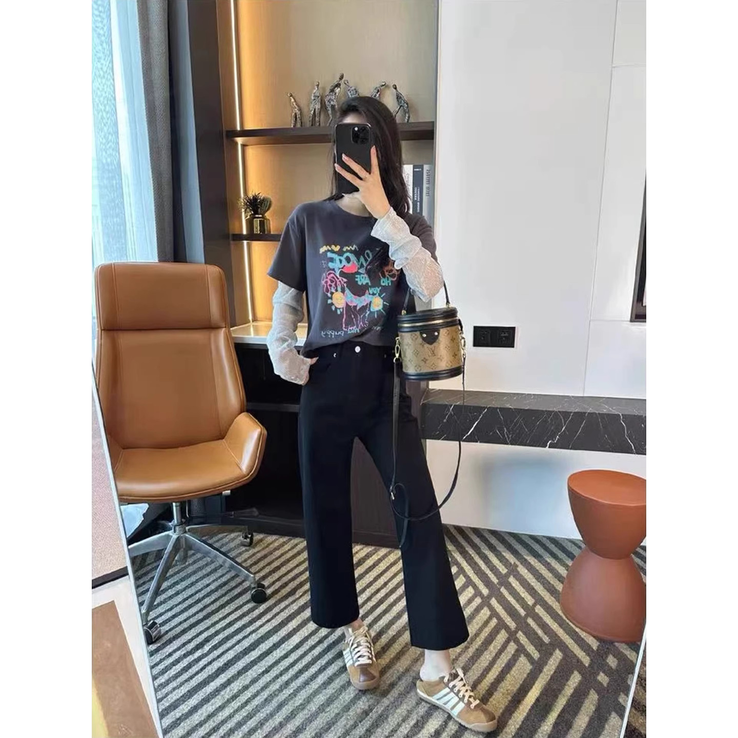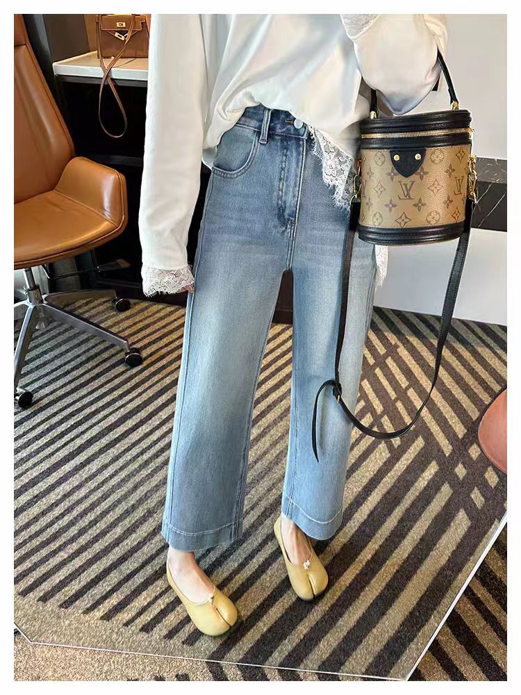 2026 봄 새로운 빅 사이즈 하이웨이스트 슬림해 보이는 부츠컷 바지 지방 mm 레트로 다용도 레트로 9 포인트 청바지