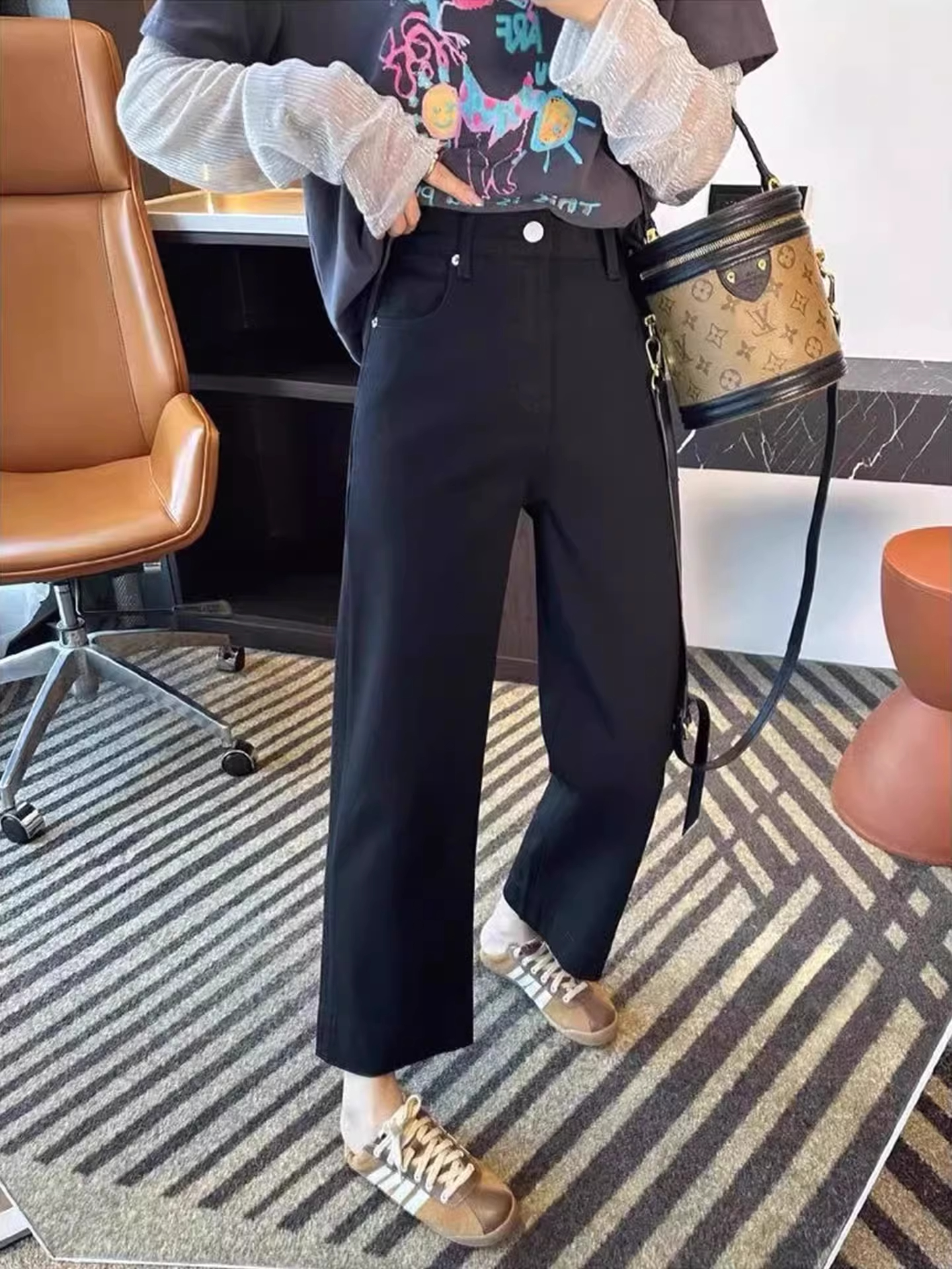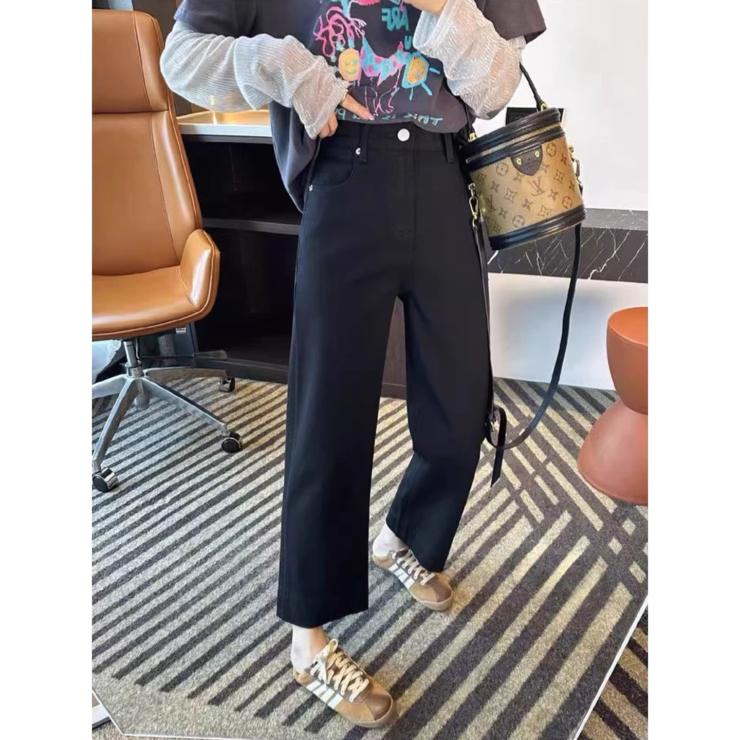 2026 년 새로운 커피 색상 와이드 레깅스 바지 빅 사이즈 하이웨이스트 도루 센스 슬림해 보이는 루즈핏 캐주얼 부츠컷 정장 바지