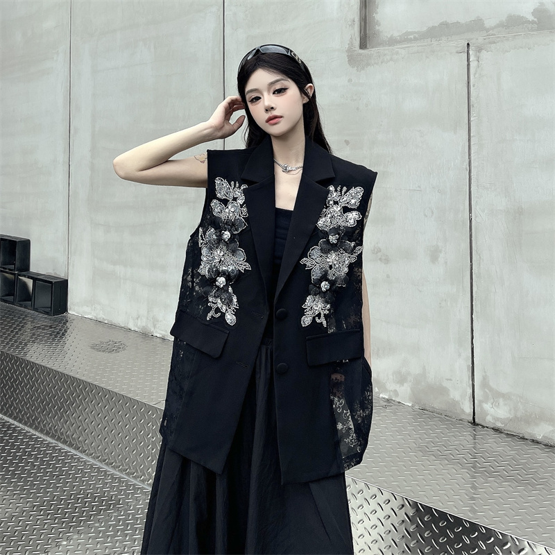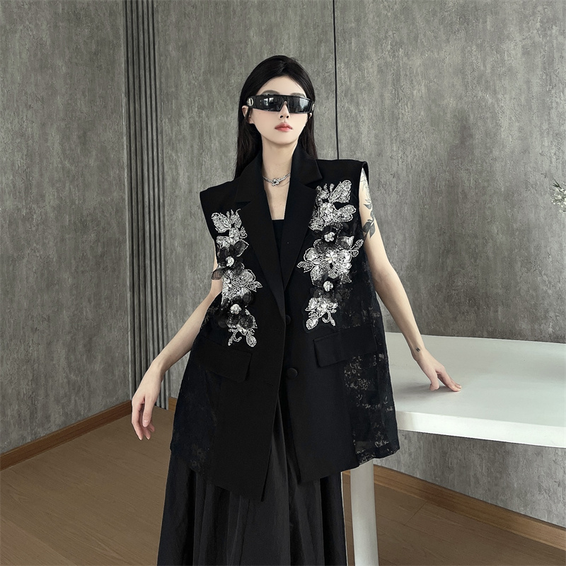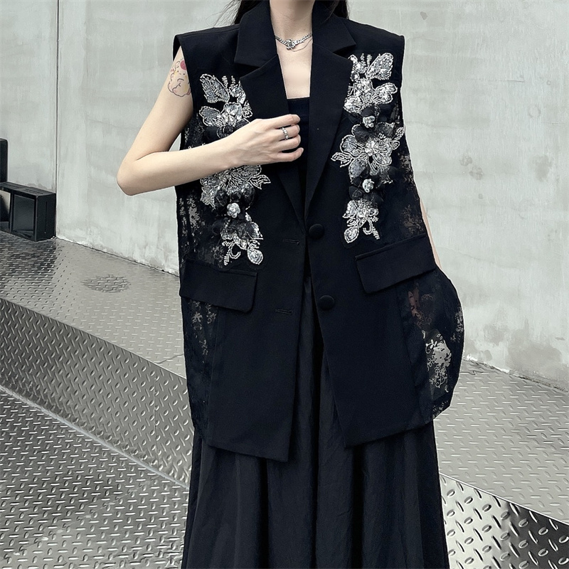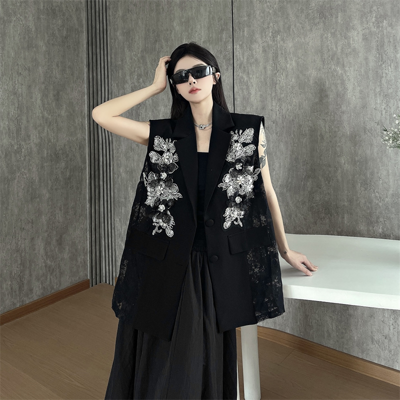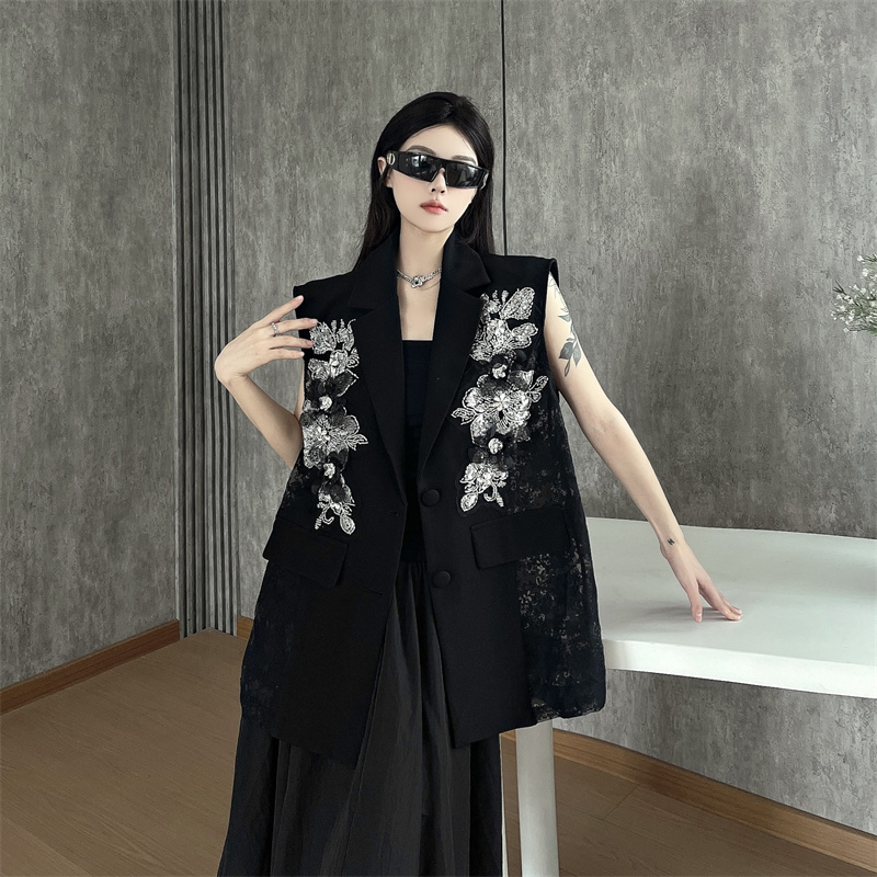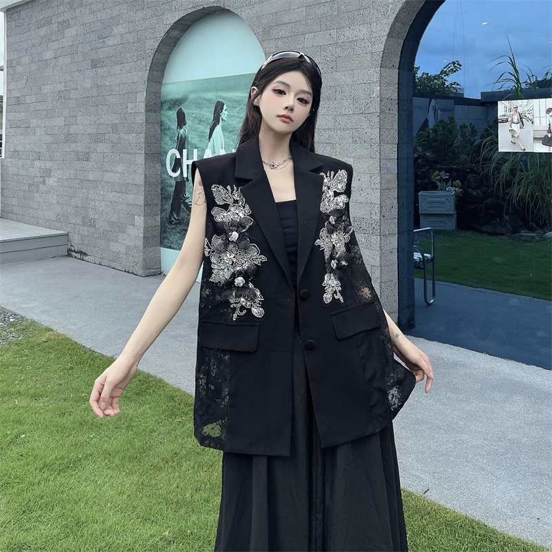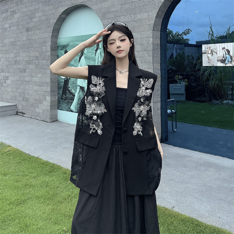 실사 한 부서 부드러운 바람 레이스 조각 정장 베스트 여름 얇은 스타일 민소매 정장 재킷