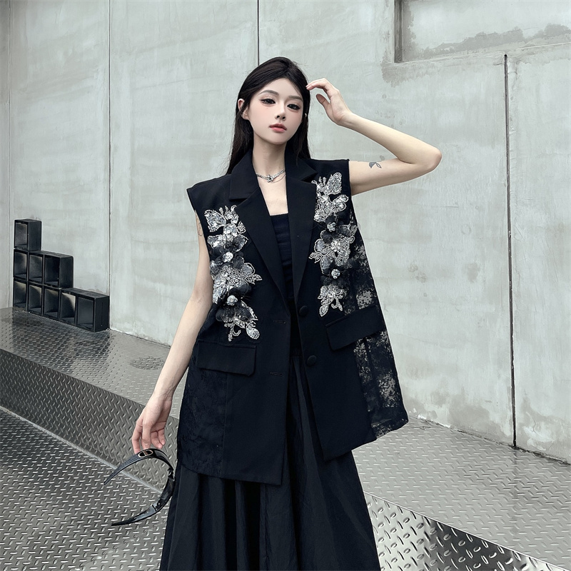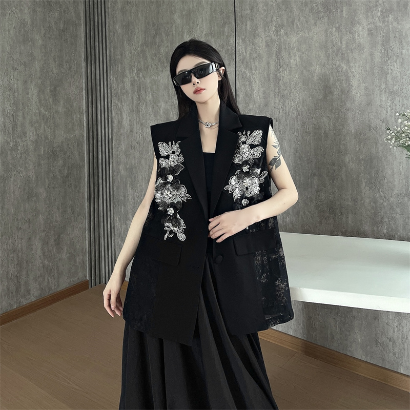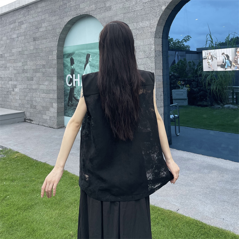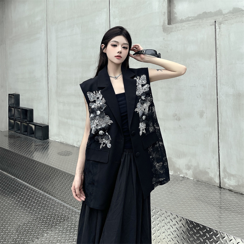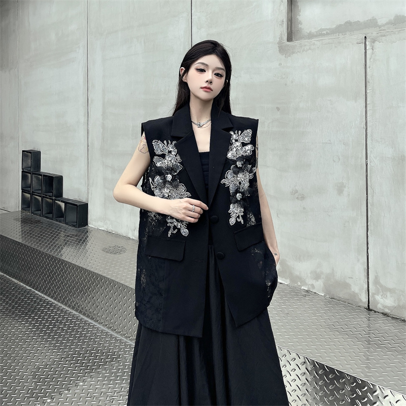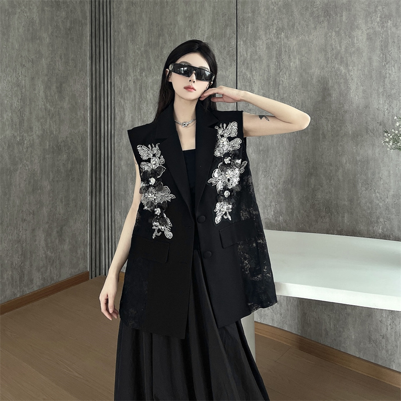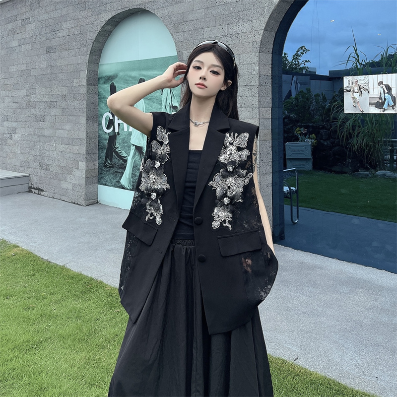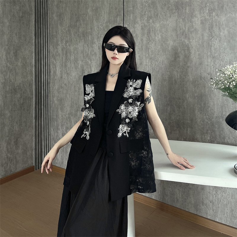 실사 한 부서 부드러운 바람 레이스 조각 정장 베스트 여름 얇은 스타일 민소매 정장 재킷
