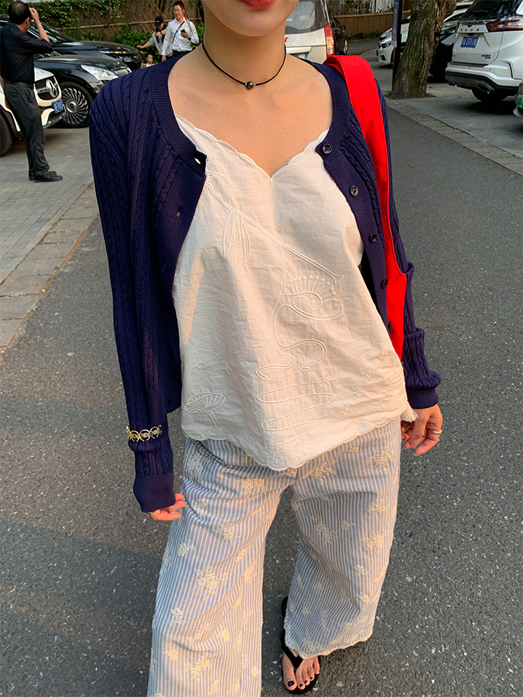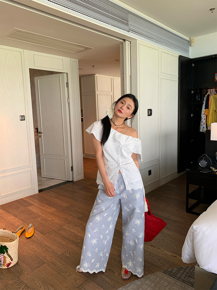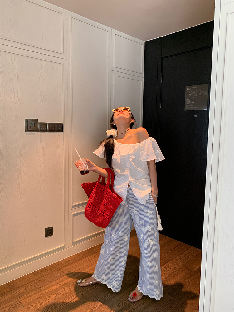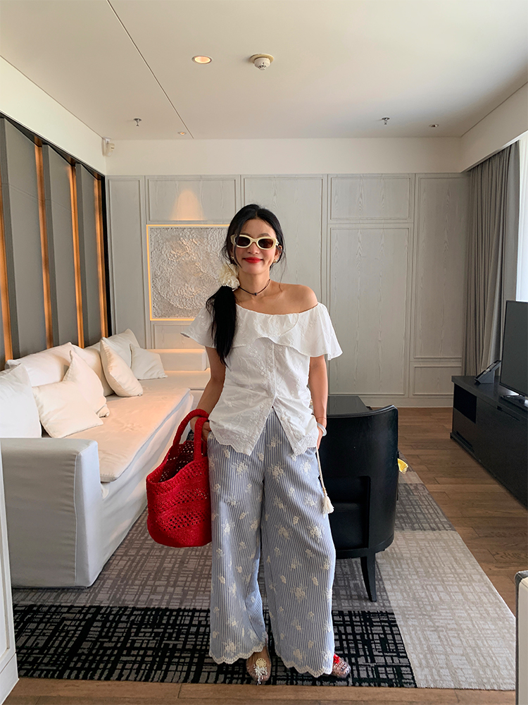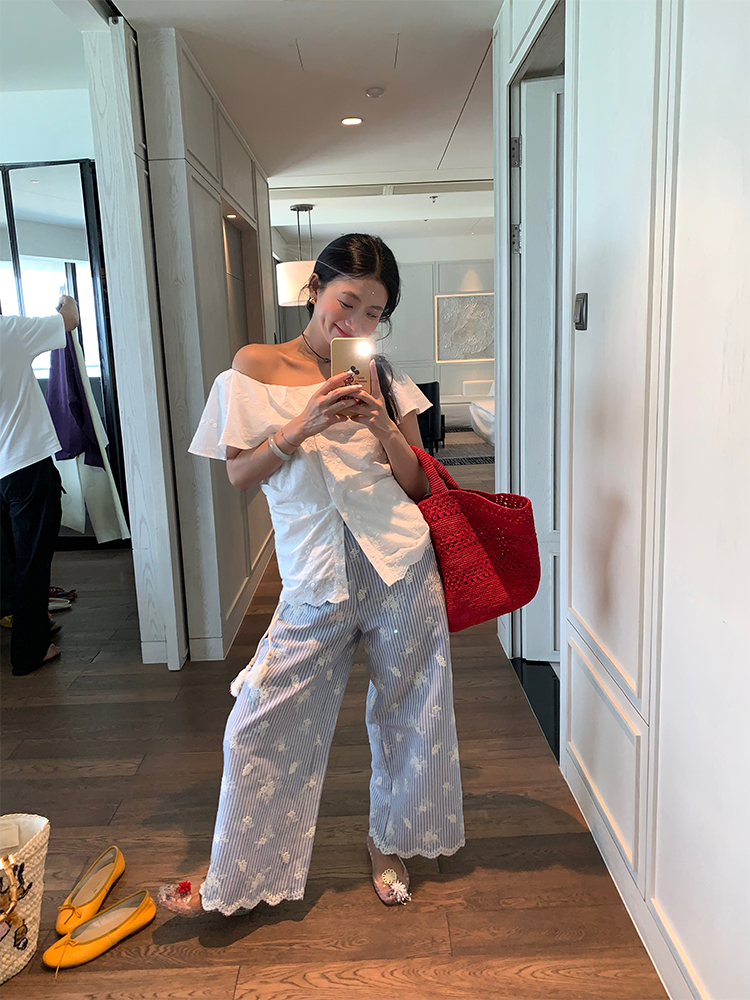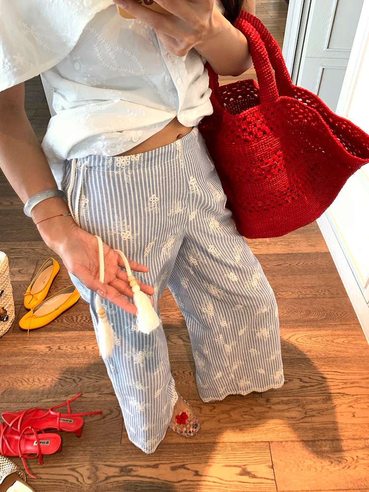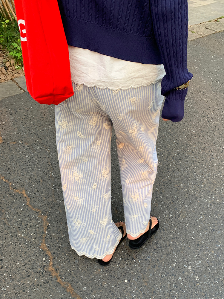 여름 루즈핏 bf 느긋한 바람 2026 년 새로운 디자인 센스 와이드 레그 팬츠 자수 스트라이프