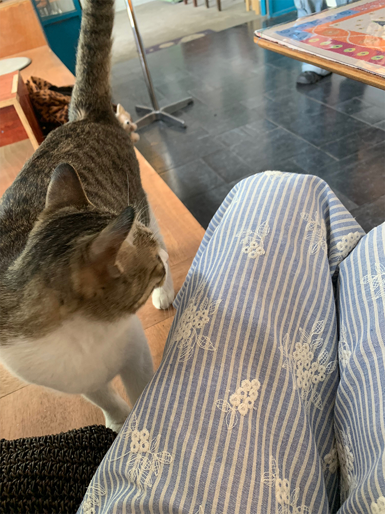 산에서 있음 구이즈 봄 루 체 꽃 꽃 바지 그래. 블루 색상 주간 실크 일상 레이스 캐주얼 바지