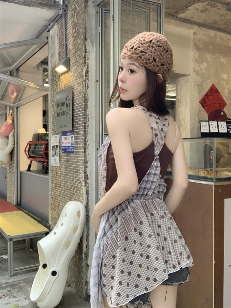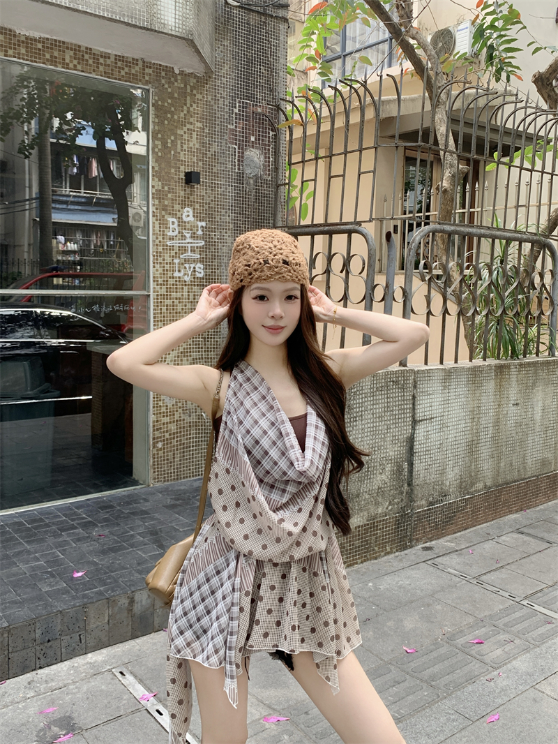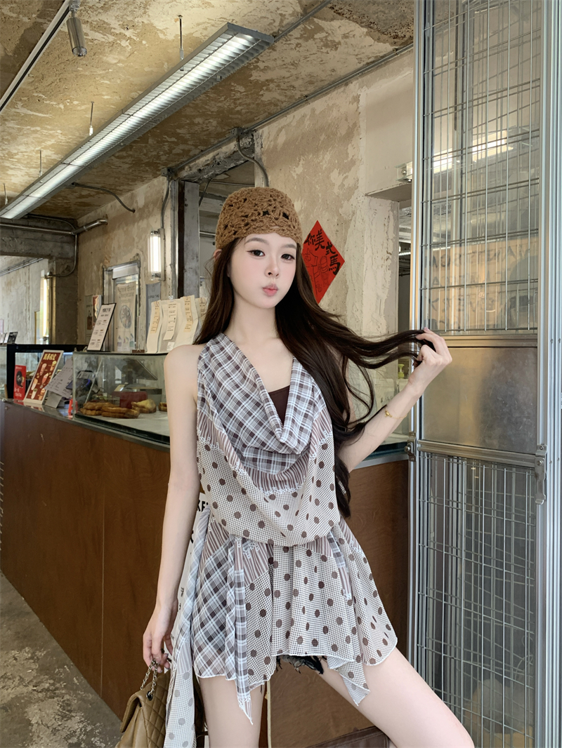 실사 정가 레트로 불모지 바람 페이크 레이어드 흔들다 칼라 새로운 작은 대중 달콤한 매운맛 불규칙 허리 수축 맨위 여성