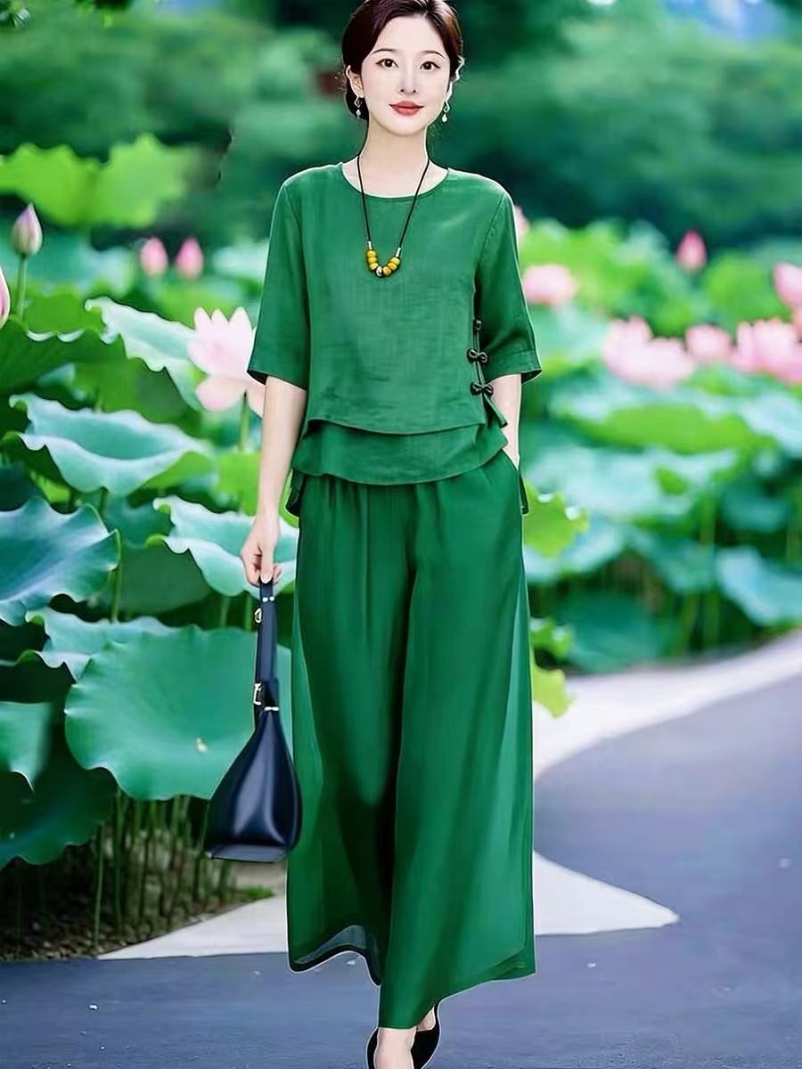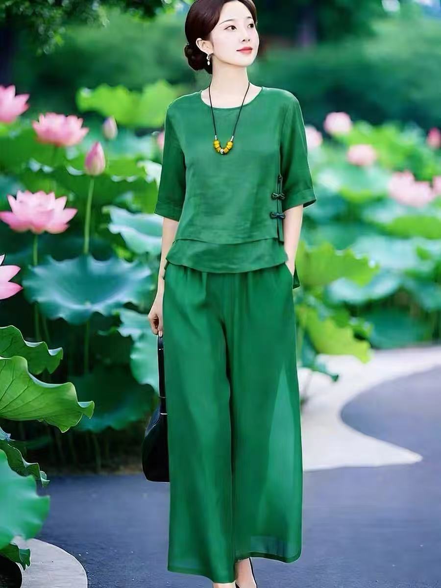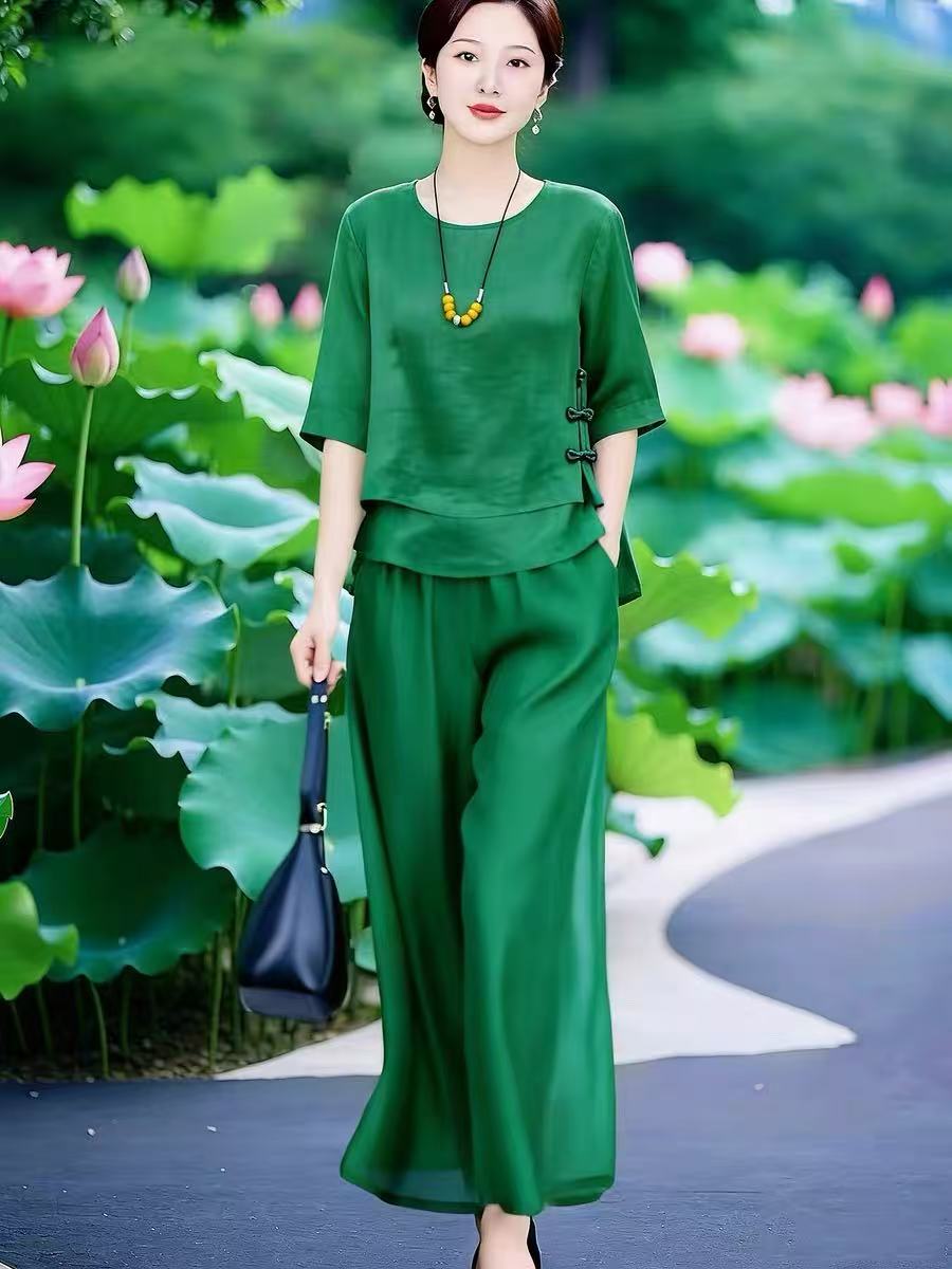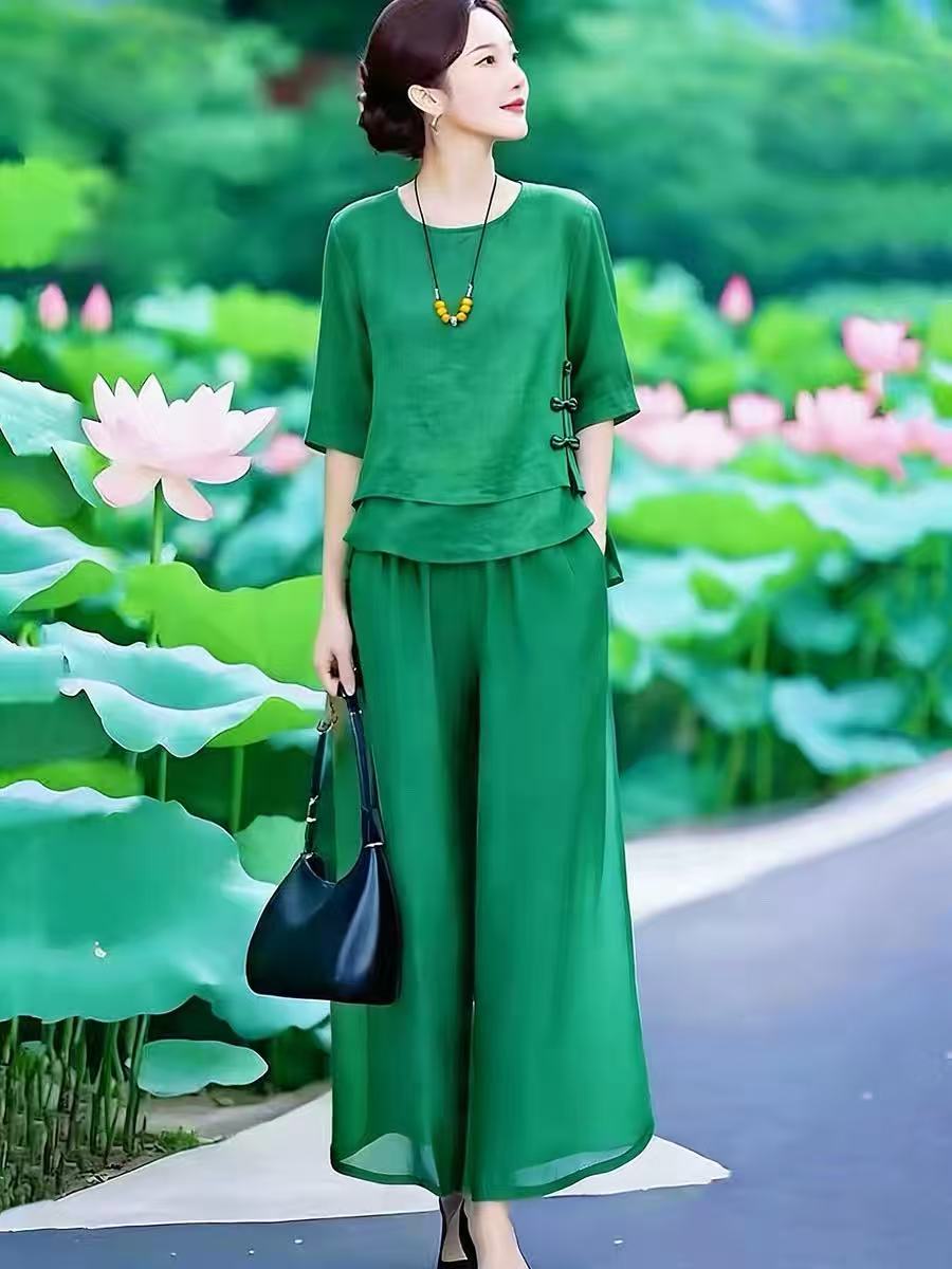 2026 문예 국풍 맨위 꽃무늬 반 스커트 품격 세트 여름 새로운