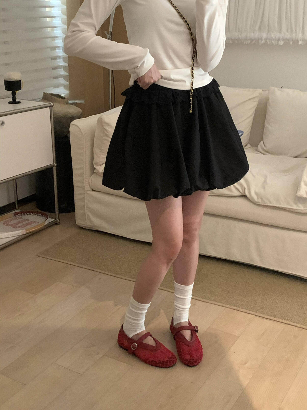 봄 여름 신제품 한 부서 미니멀리즘 프릴 슬림해 보이는 다용도 캐주얼 반바지 여성