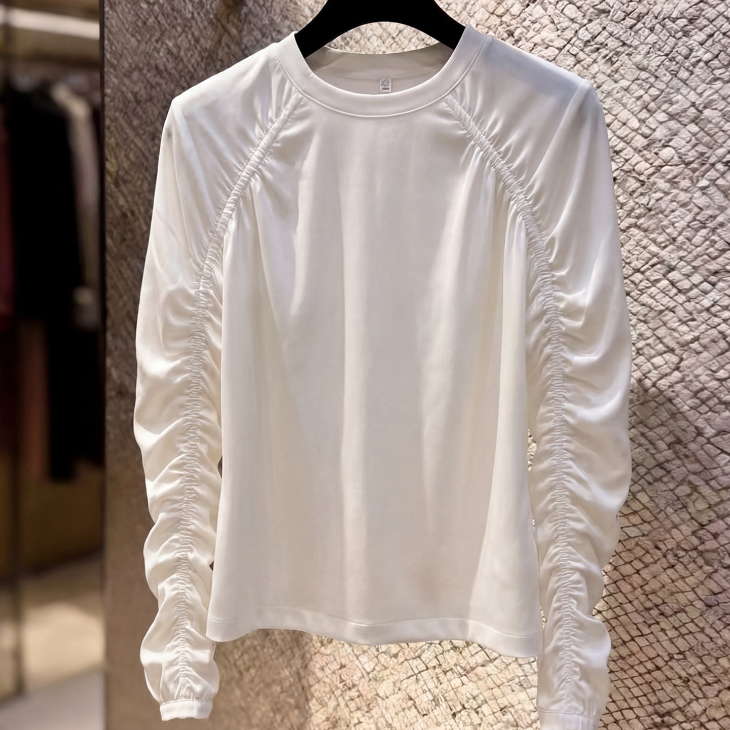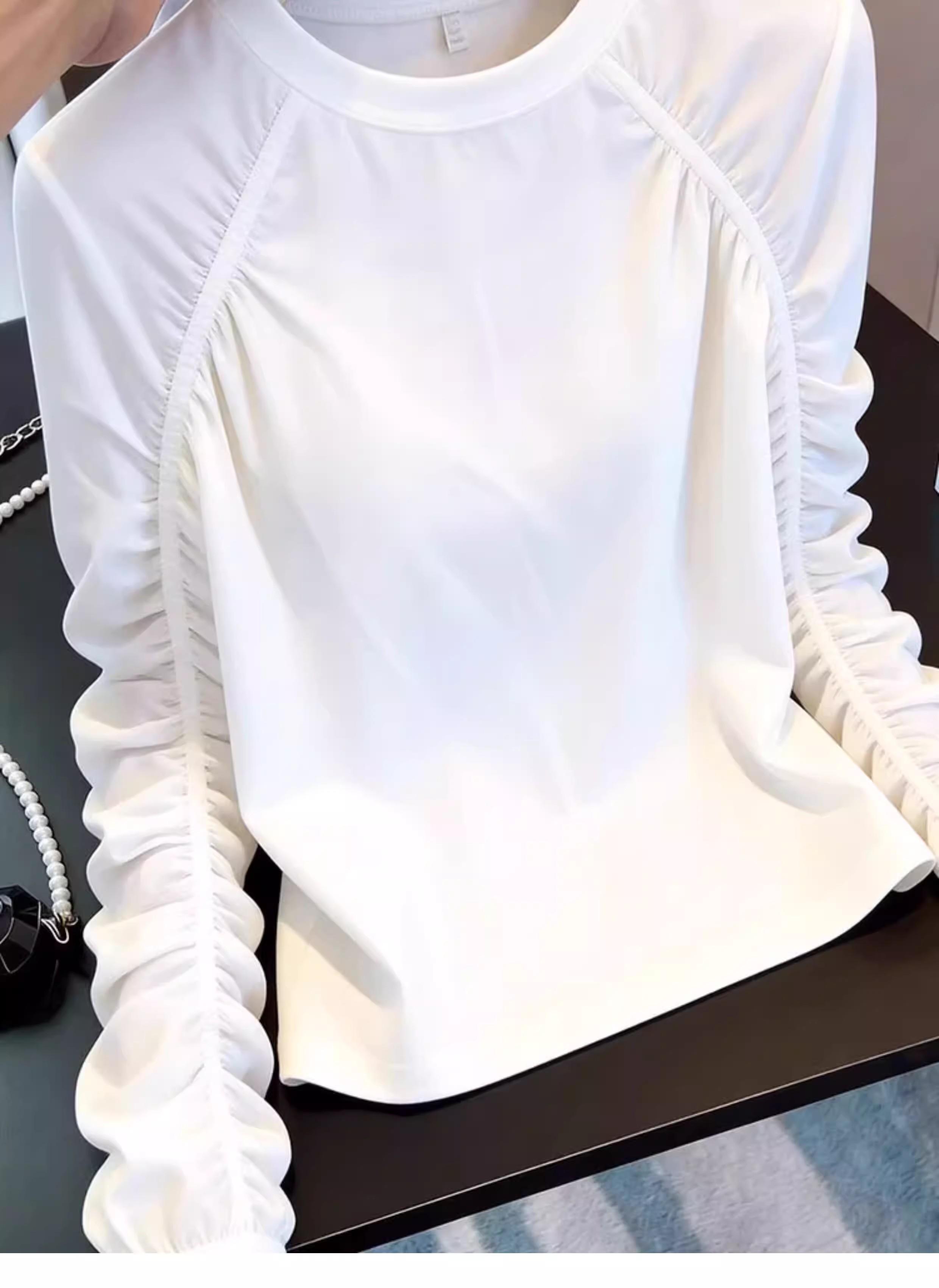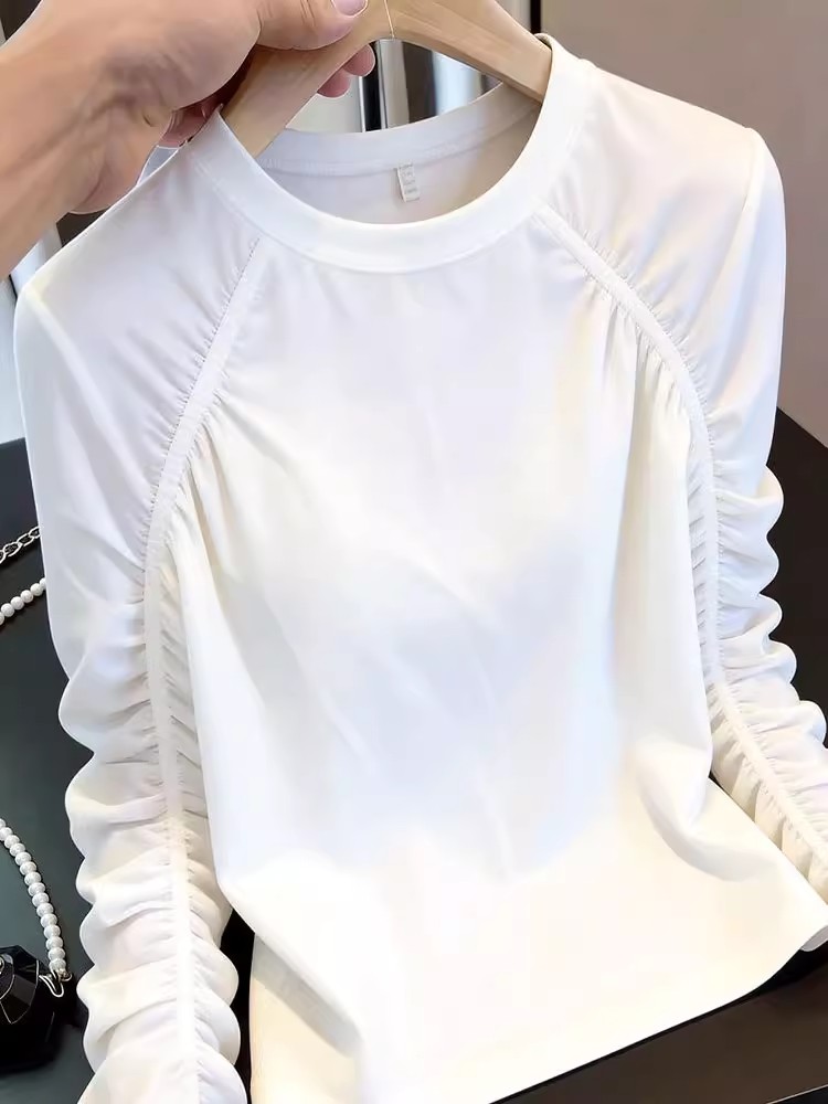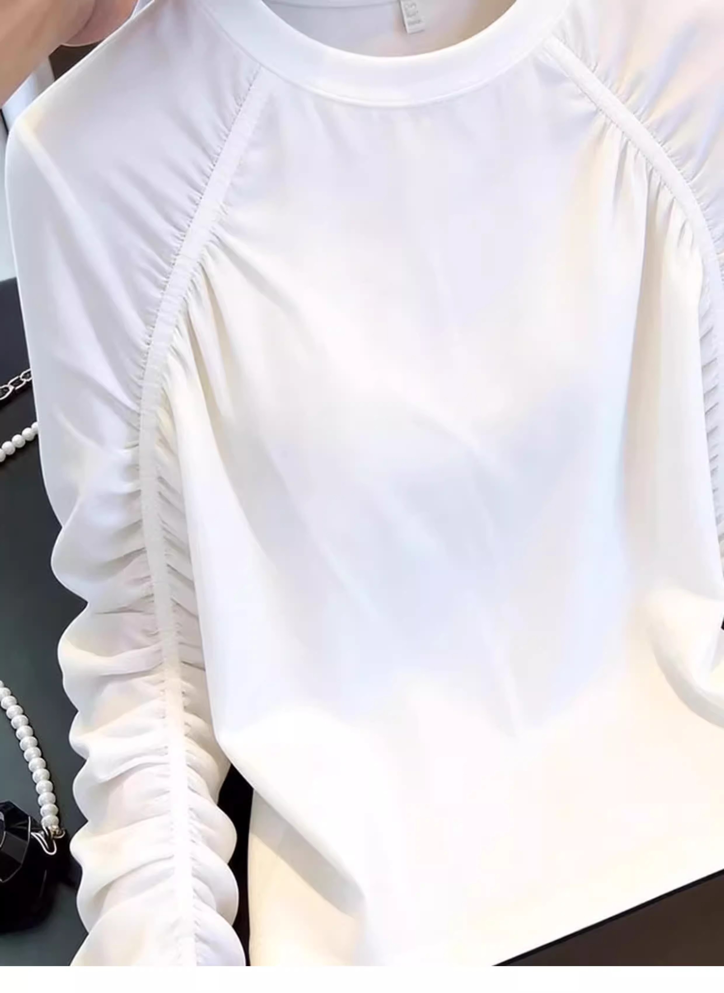 새로운 조수 브랜드 이리저리 떠다니다 번쩍였다 조각 작은 옷 여성 의류 조기 봄 파란색 쇼트 스타일 펌프 Pleat 인사이드 가져 가라. 긴팔 티셔츠 맨위