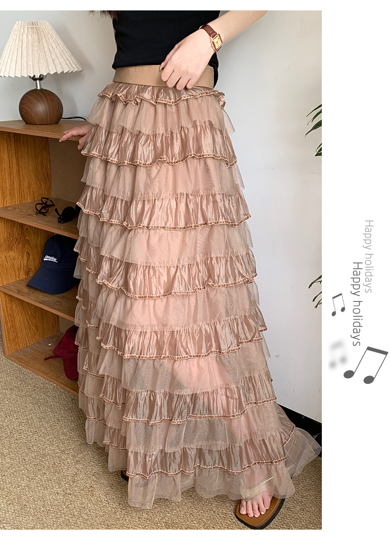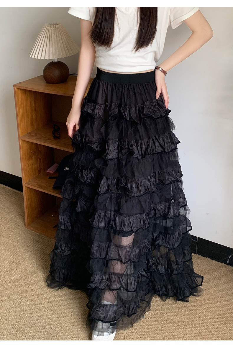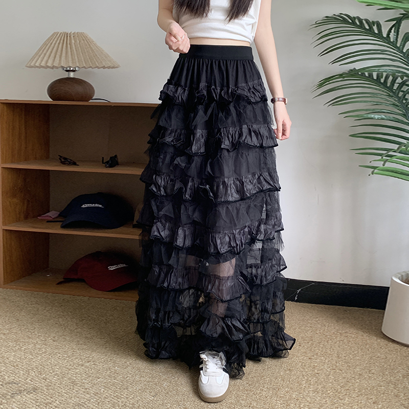 프릴 망사 플리츠 케이크 드레스 빅 사이즈 여성 의류 여름 하이웨이스트 도루 센스 반신 스커트 큰 진자 한 마디 롱 스커트 단어