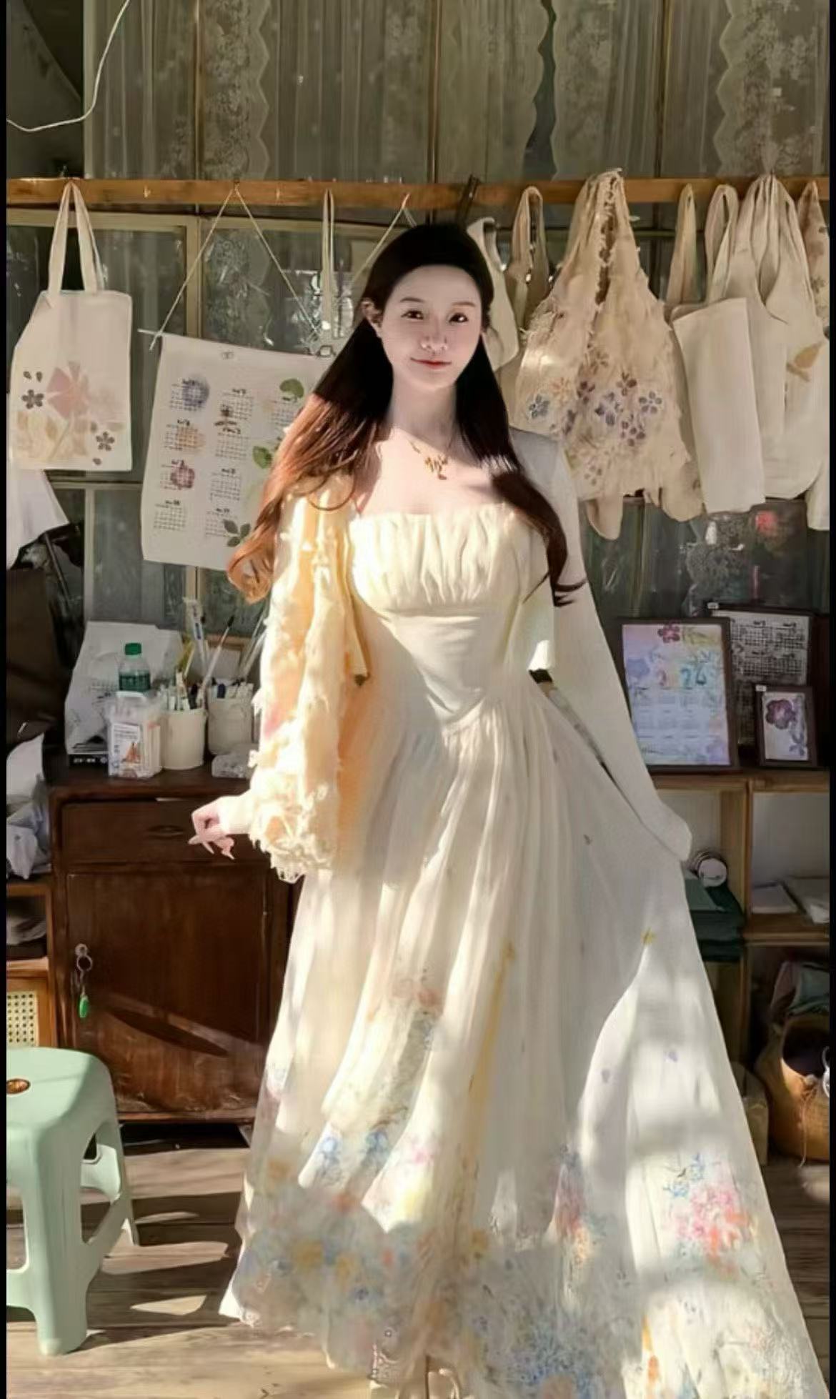 새로운 패션 부드러운 바람 자외선 차단 얇은 스타일 오픈 가디건 그라데이션 프린트 쉬폰 슬립 드레스 투피스 세트