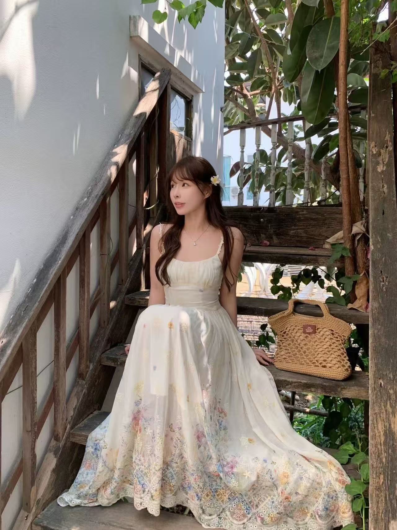 새로운 패션 프랑스식 3 차원 디스크 꽃 슬립 스카프 섹시함 해변가 불규칙 패치워크 롱 스커트