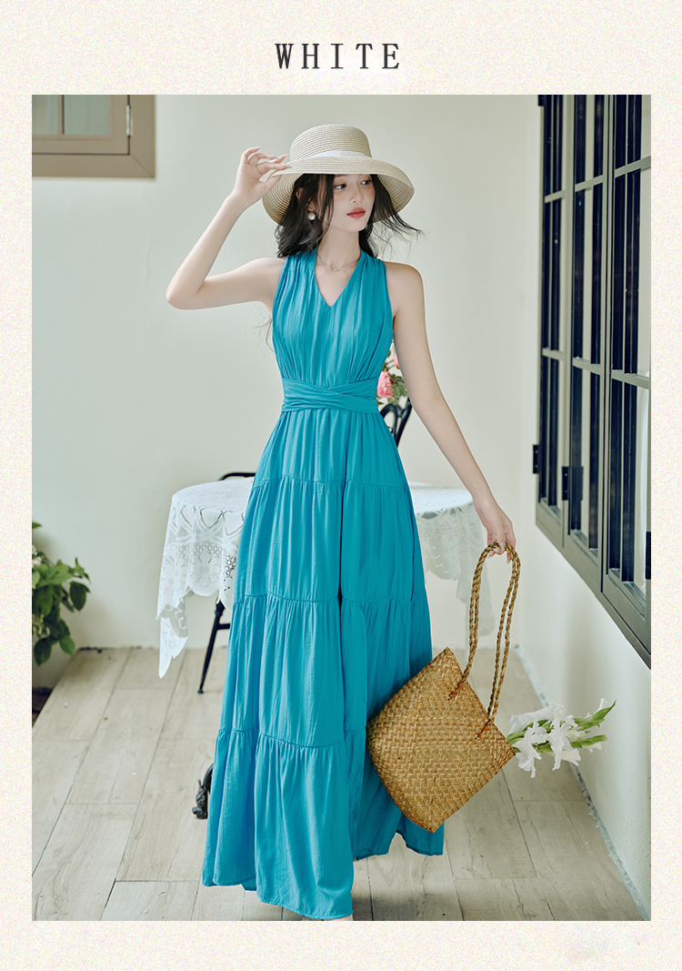 언어 그리스어 실사 휴가 바람 슬립 드레스 코디 재킷 투피스 세트 세트 드레스 일상 웨어러블 벨트 보내기