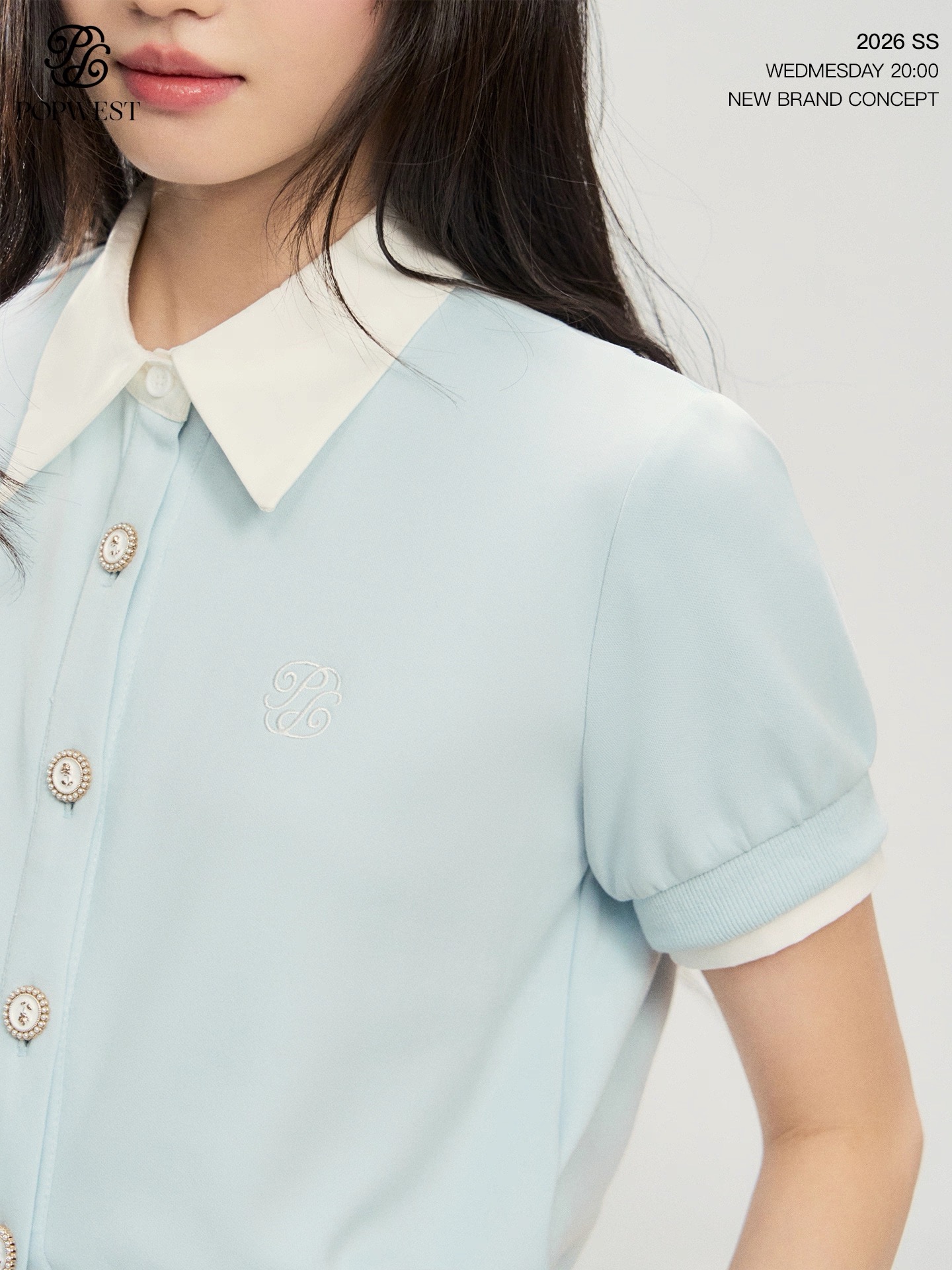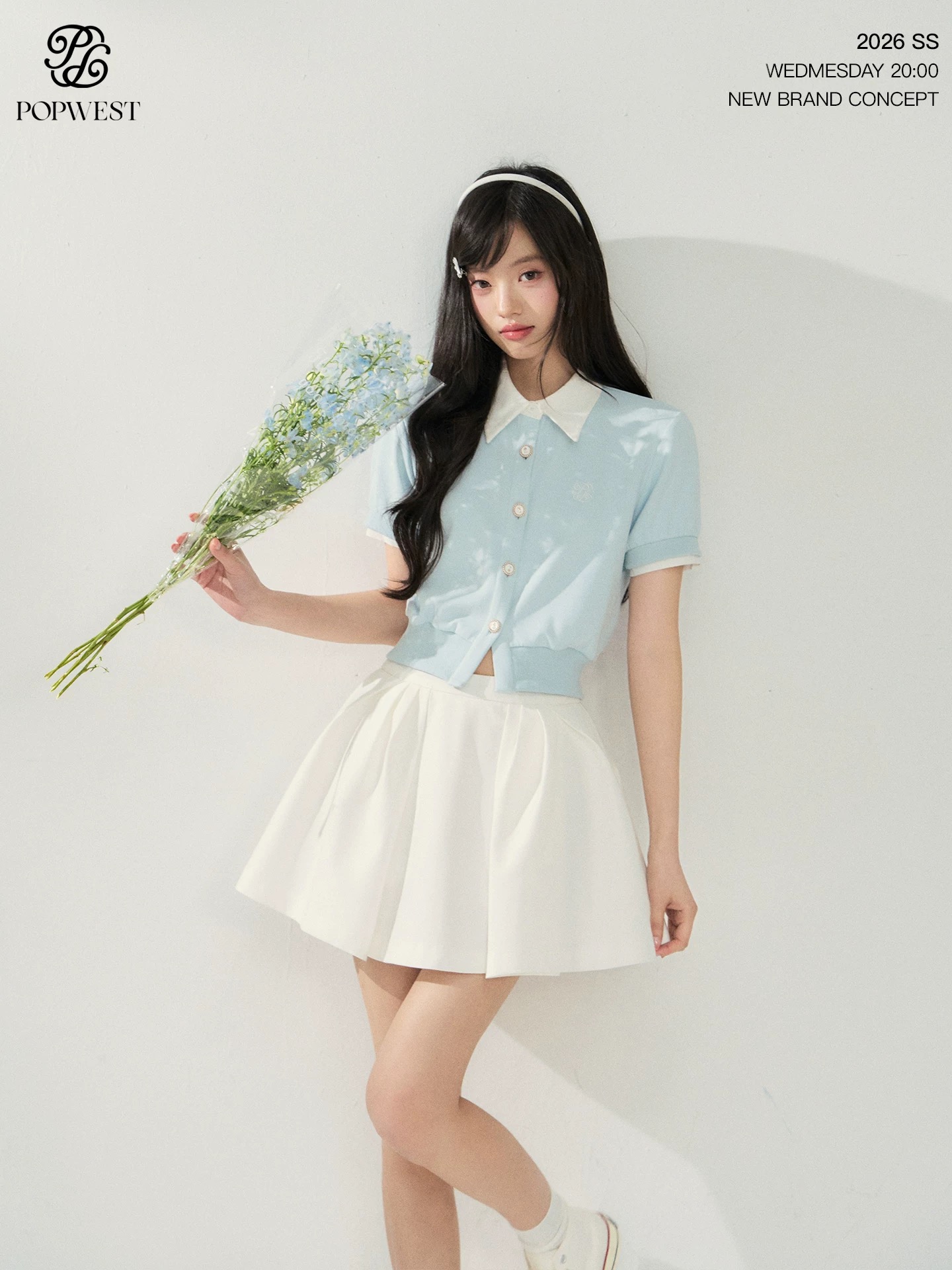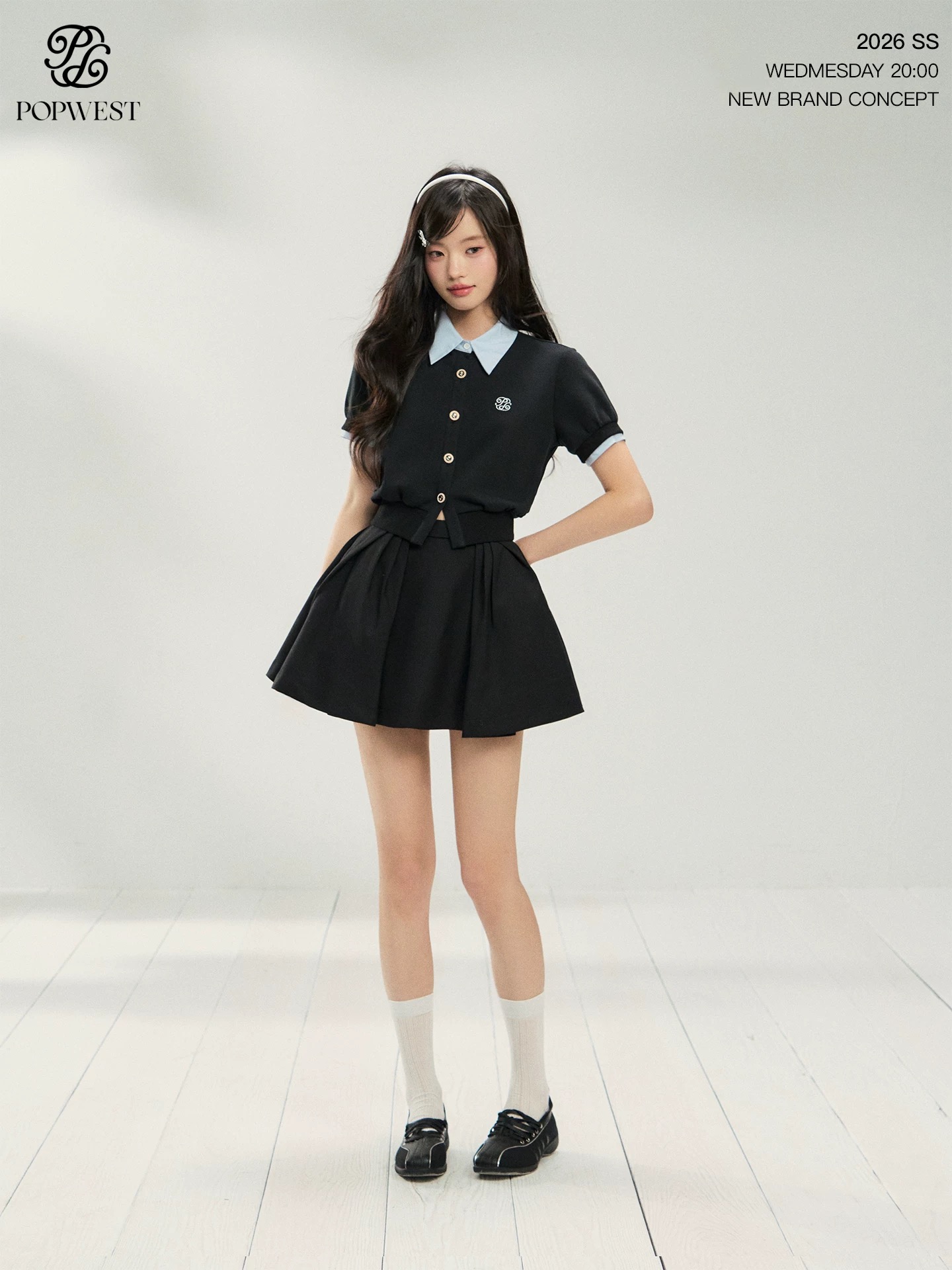 popwest 오리지널 학원 스타일 거품 소매 셔츠 드레스 허리 수축 다용도 핫걸 치마 A라인 스커트 미니 스커트