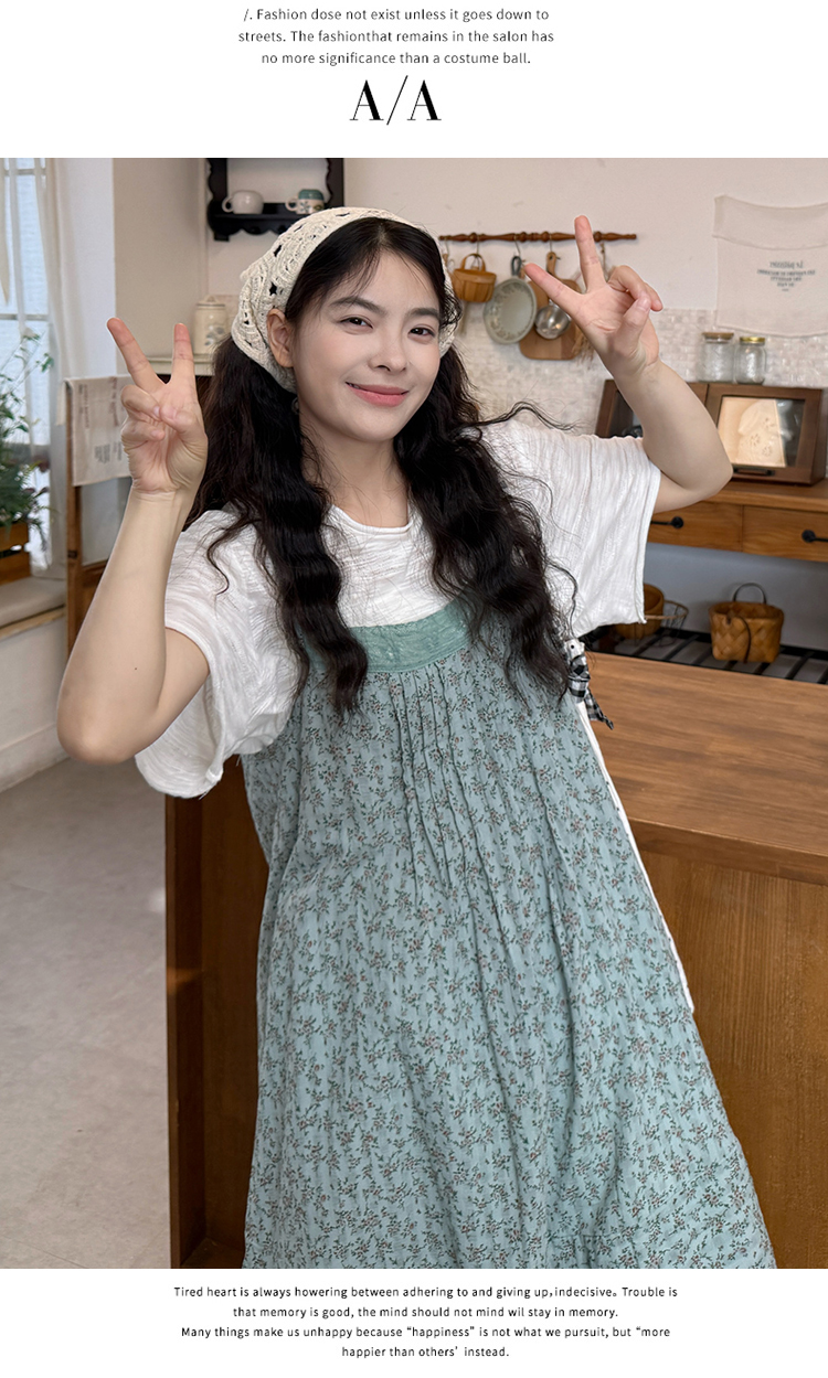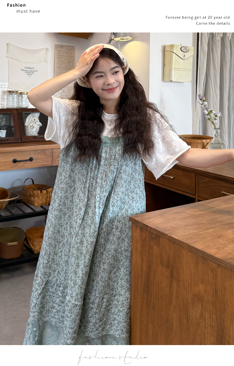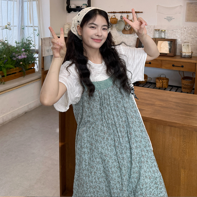 실사 2026 여름 섹션 임산부 반팔 티셔츠 꽃무늬 슬립 드레스 투피스 세트