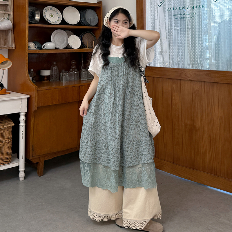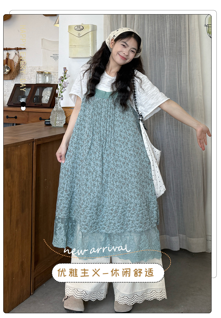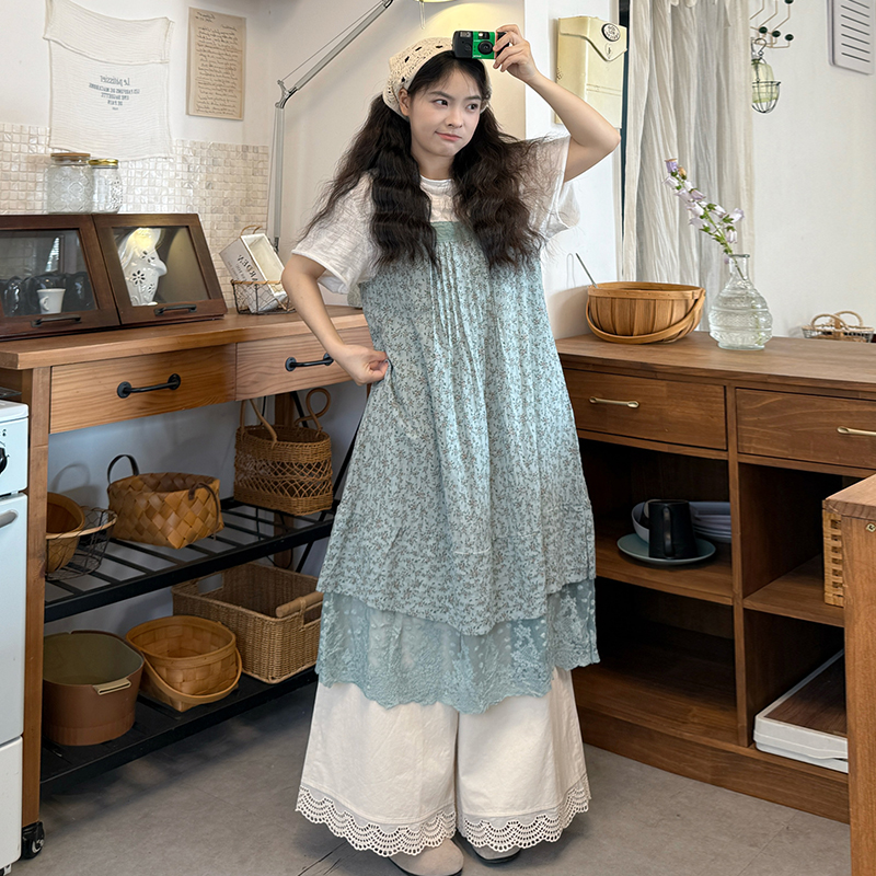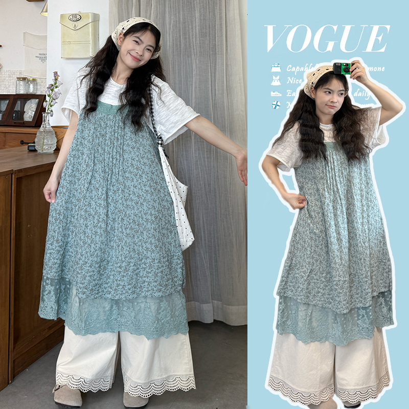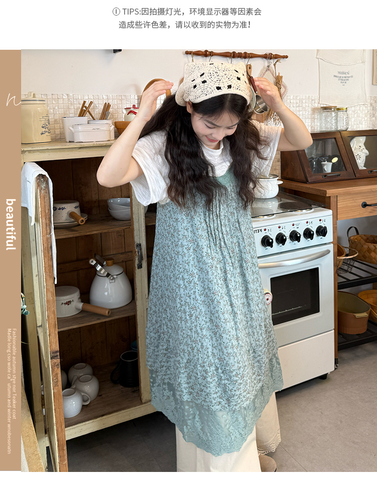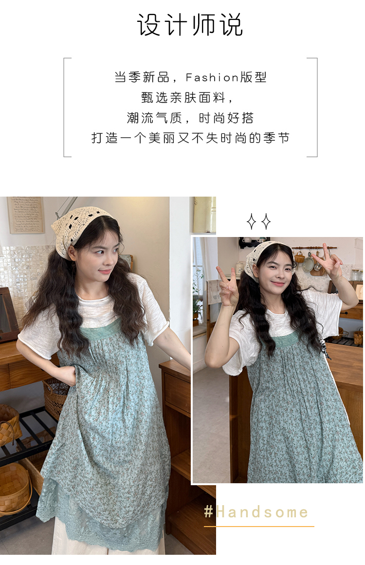실사 2026 여름 섹션 임산부 자수 레이스 슬립 드레스 스택 착용 화이트 티셔츠 레이스 반 스커트 세트